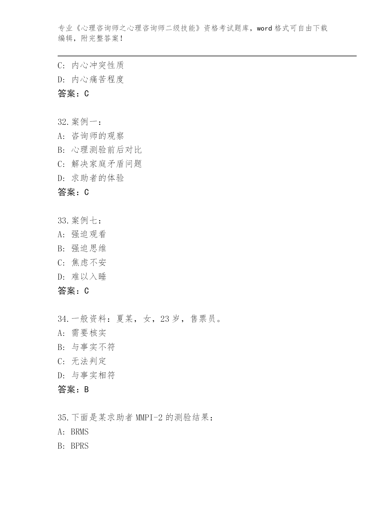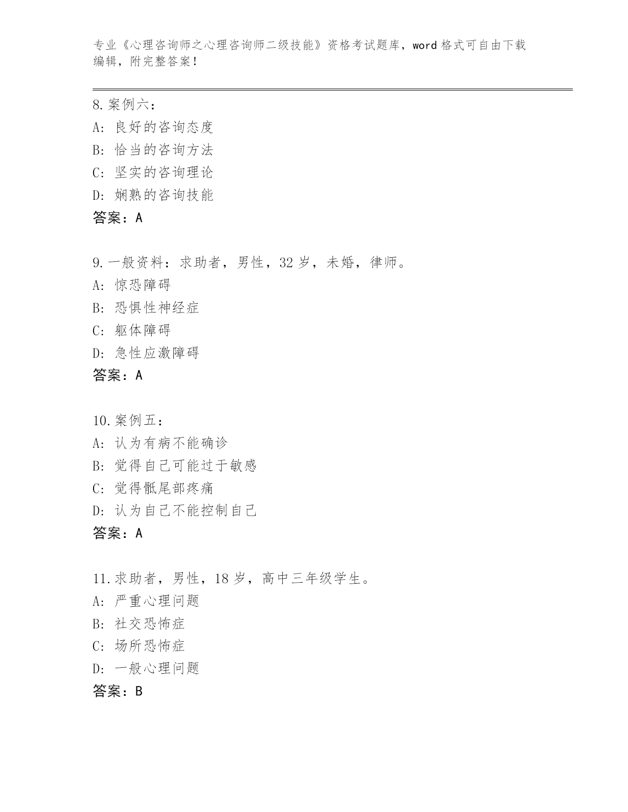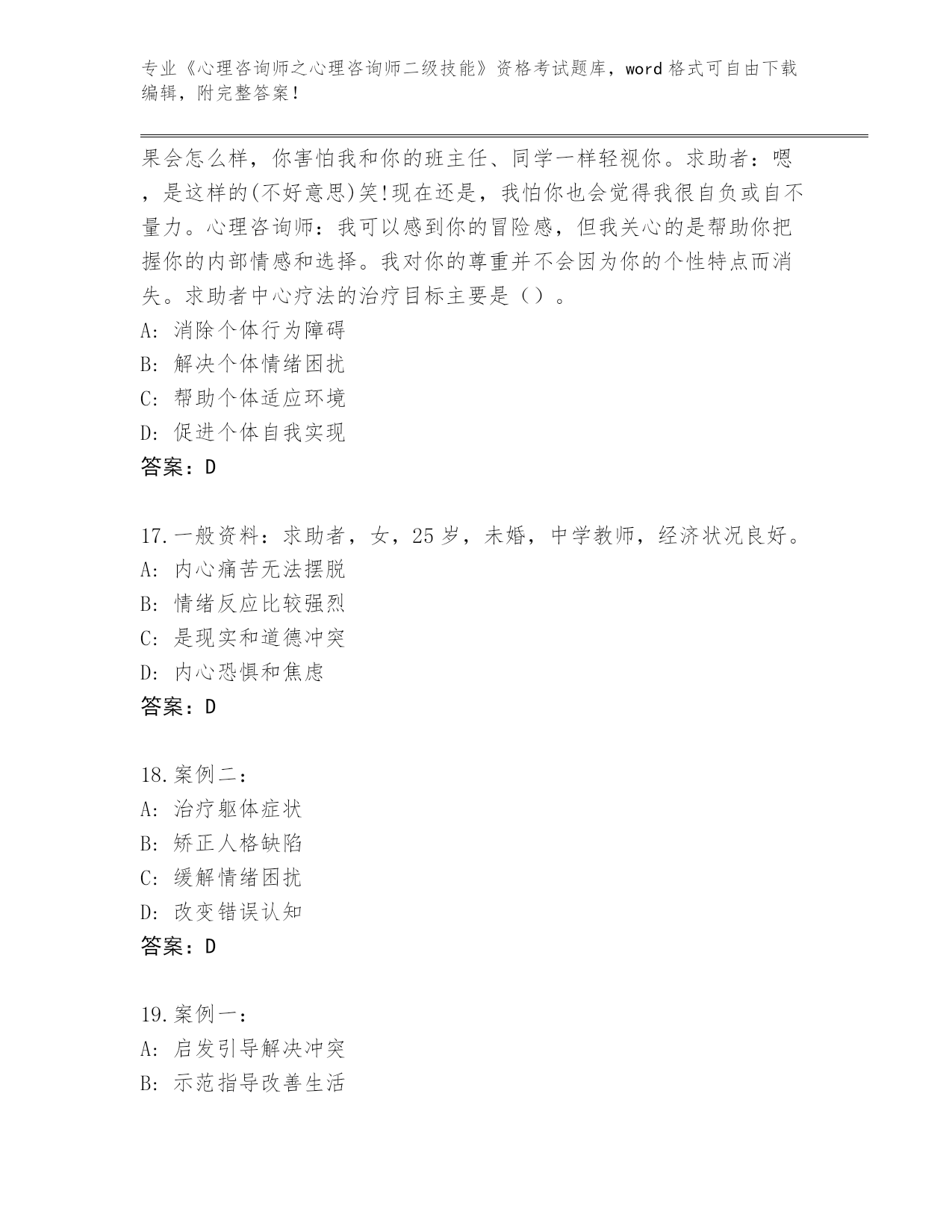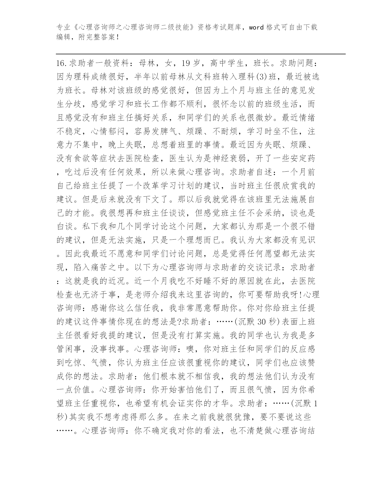 湖北省汉南区整理《心理咨询师之心理咨询师二级技能》资格考试真题题库【夺冠】