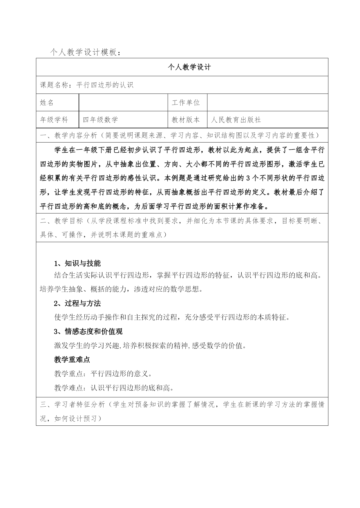 平行四边形认识教学设计-【经典教育教学资料】.doc