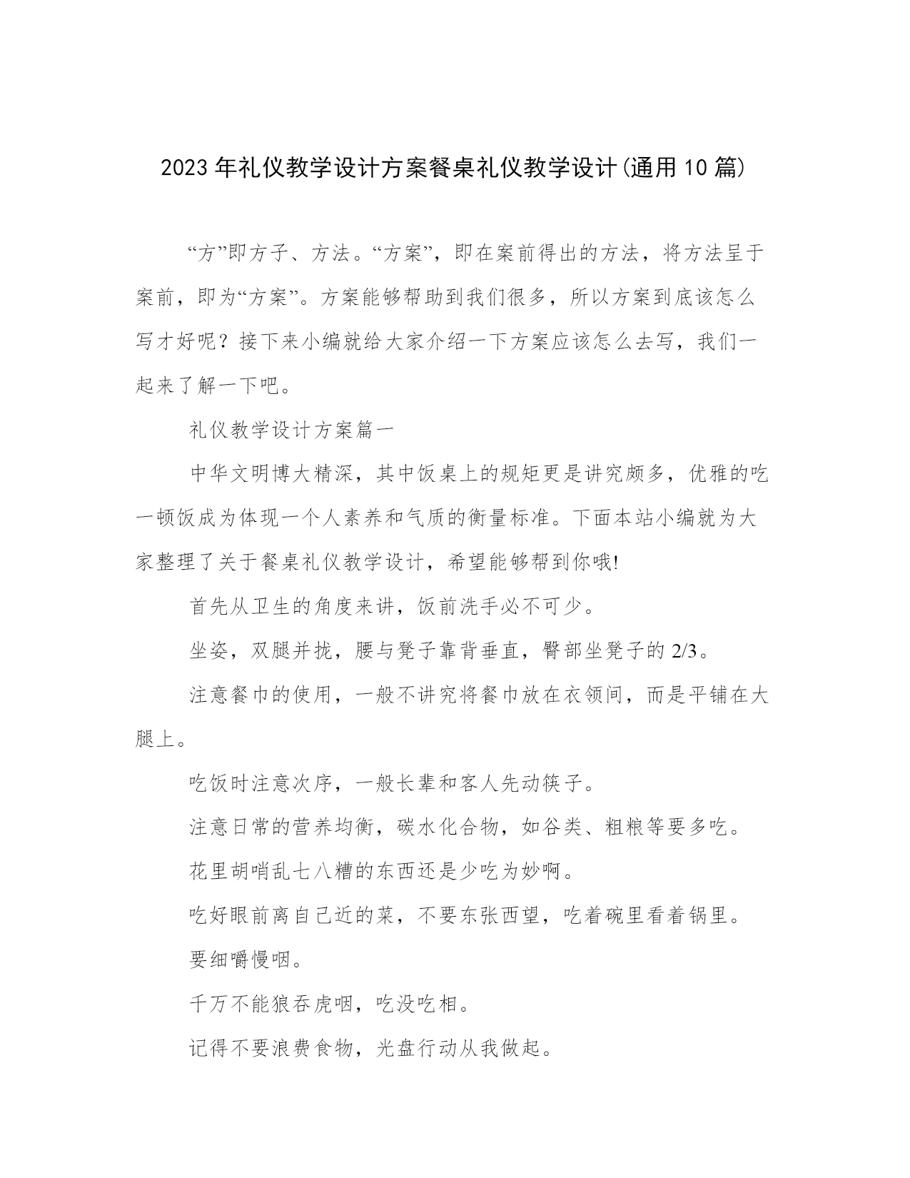 2023年礼仪教学设计方案餐桌礼仪教学设计(通用10篇).docx