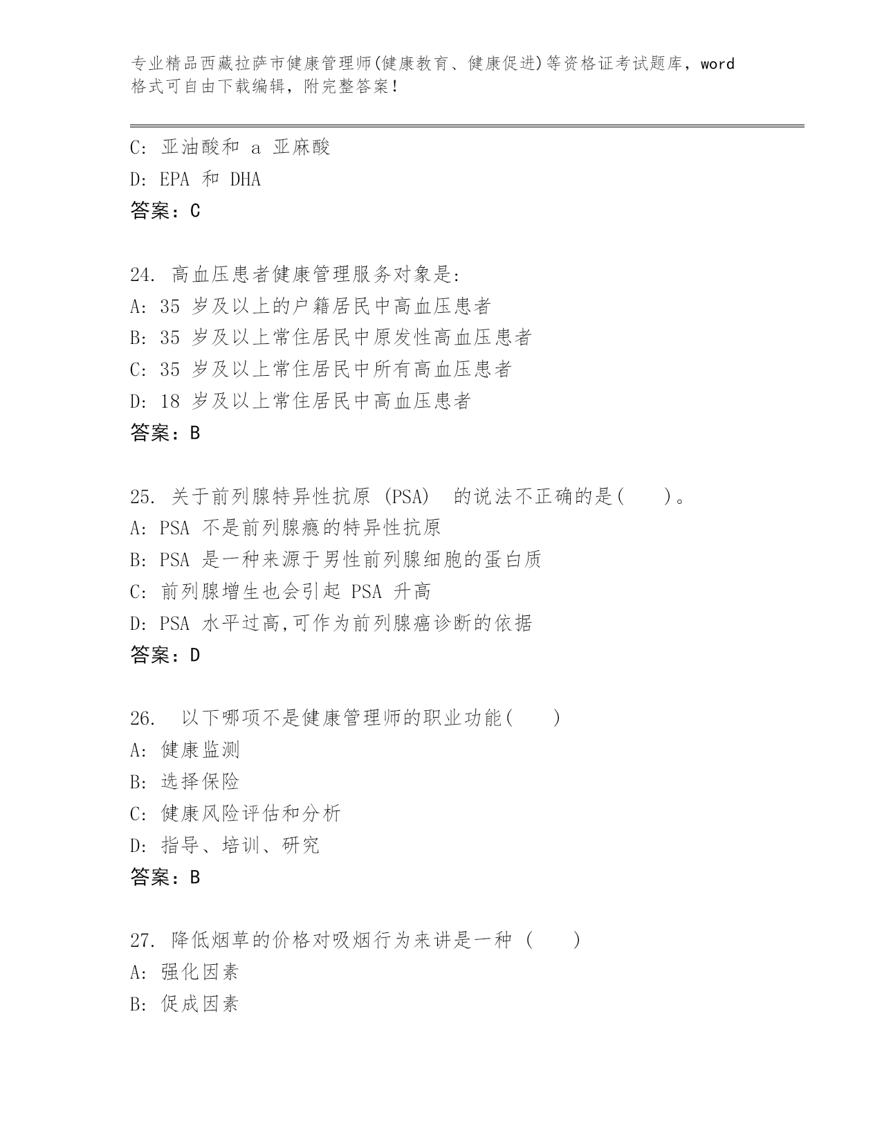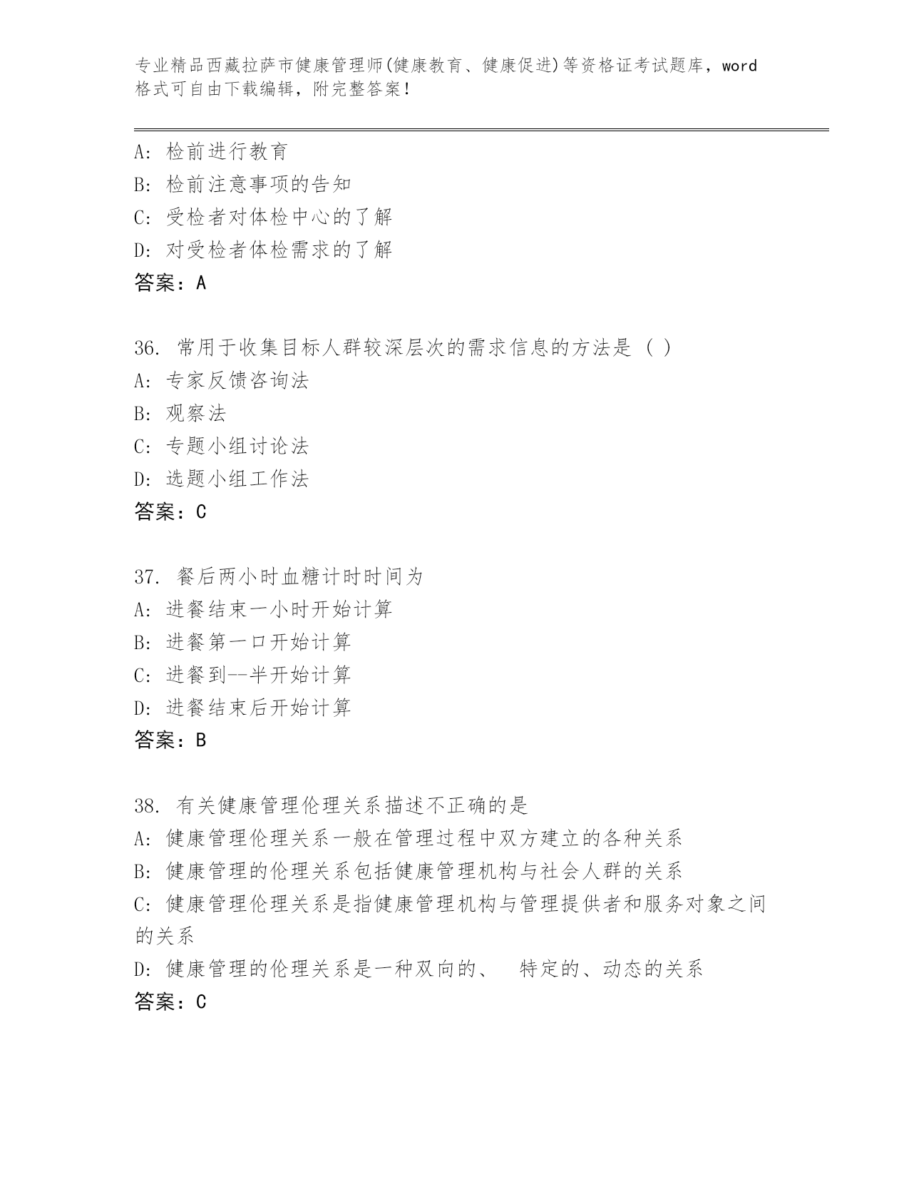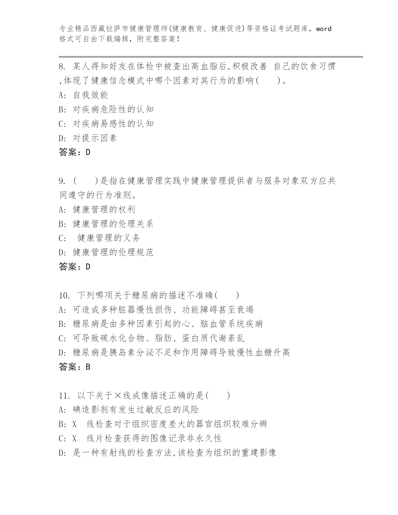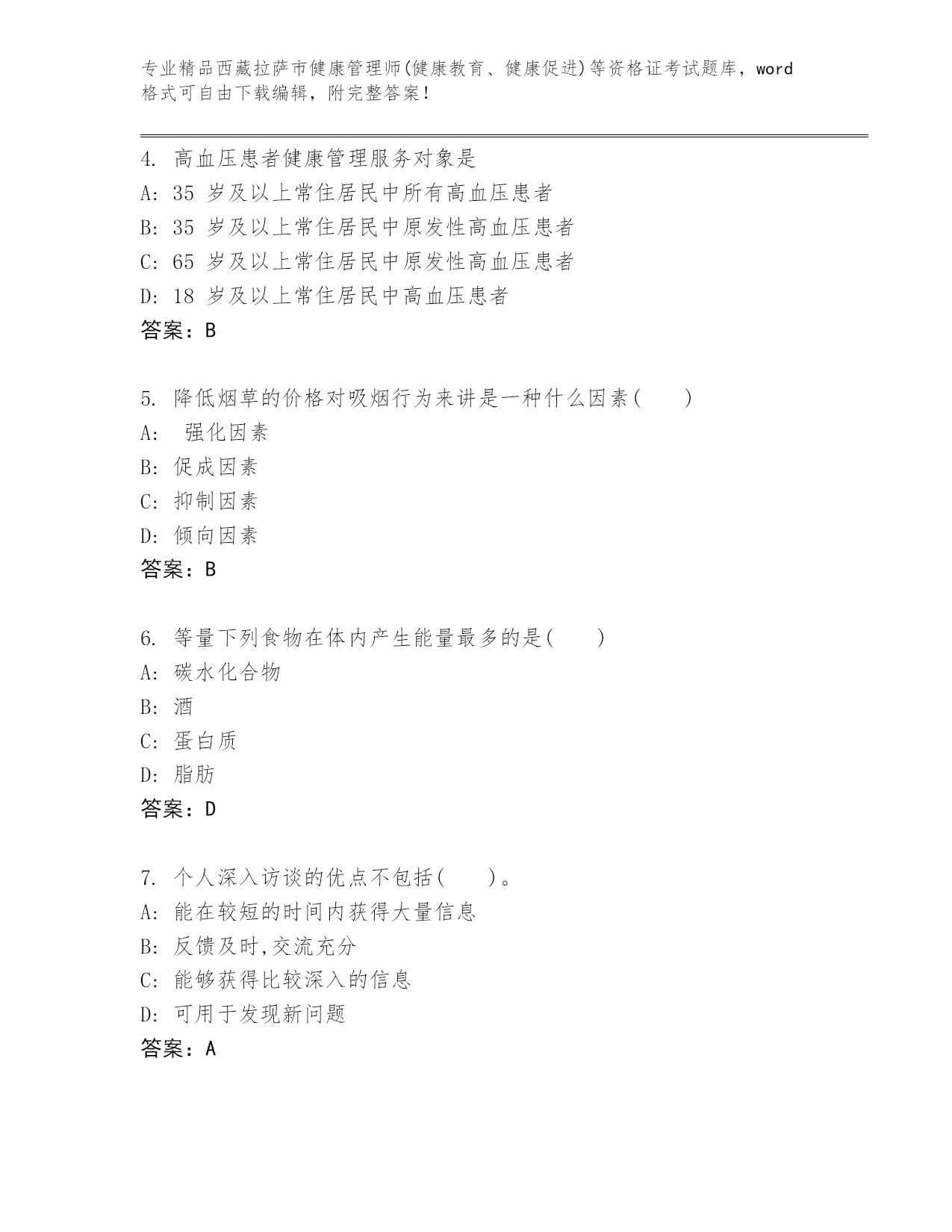 优选西藏拉萨市健康管理师(健康教育、健康促进)等资格证考试精品题库精品(全优).docx