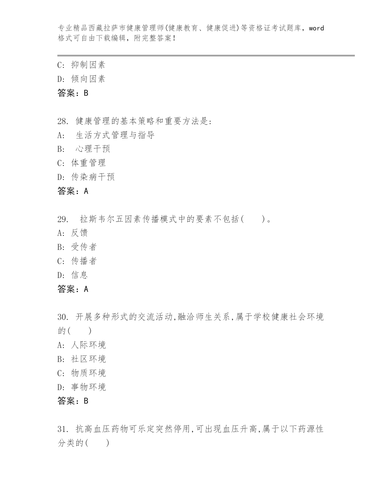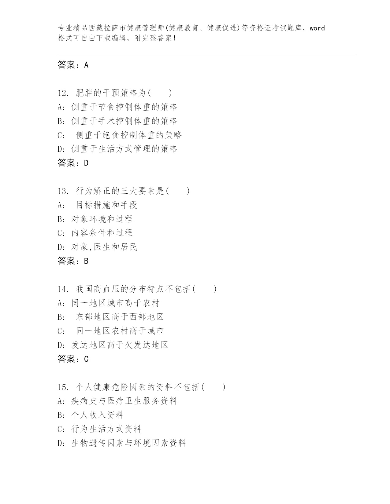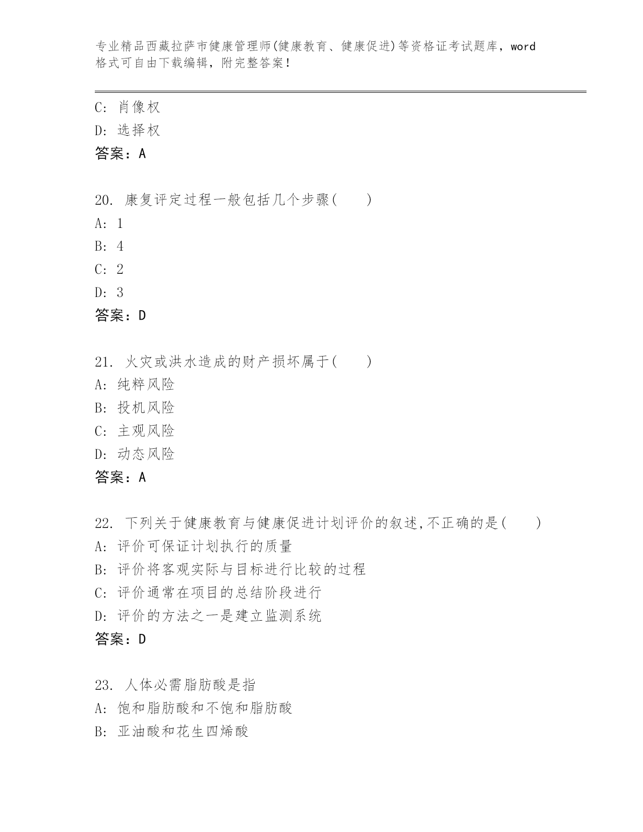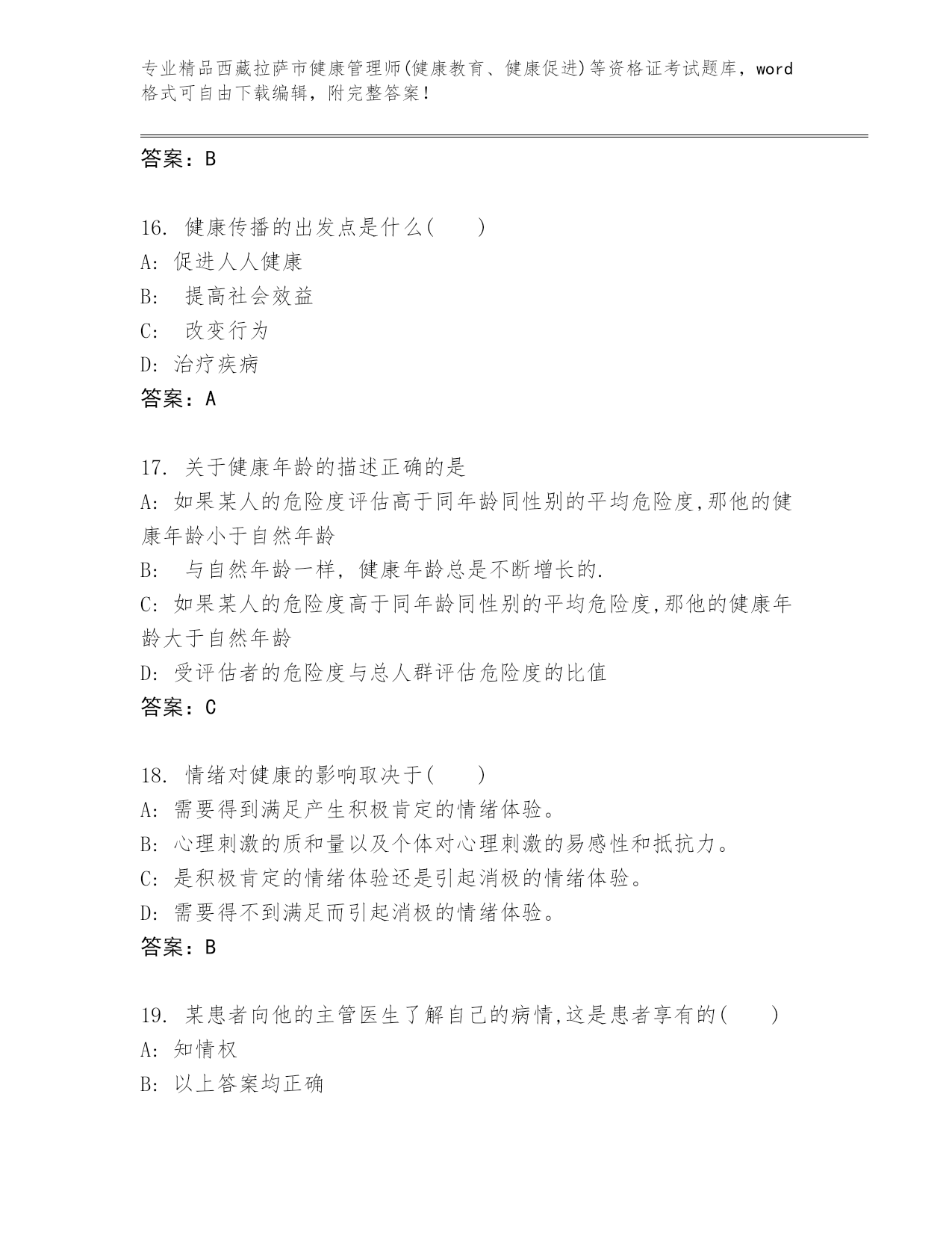 优选西藏拉萨市健康管理师(健康教育、健康促进)等资格证考试精品题库精品(全优).docx