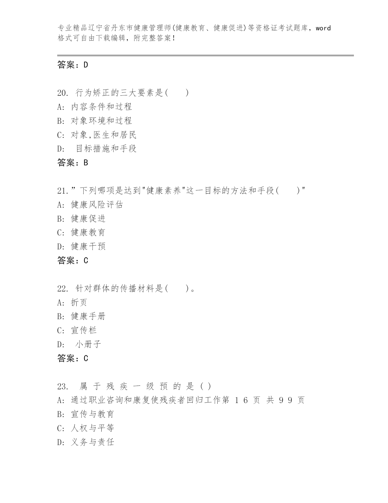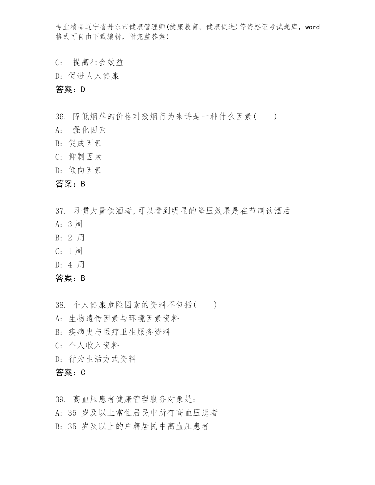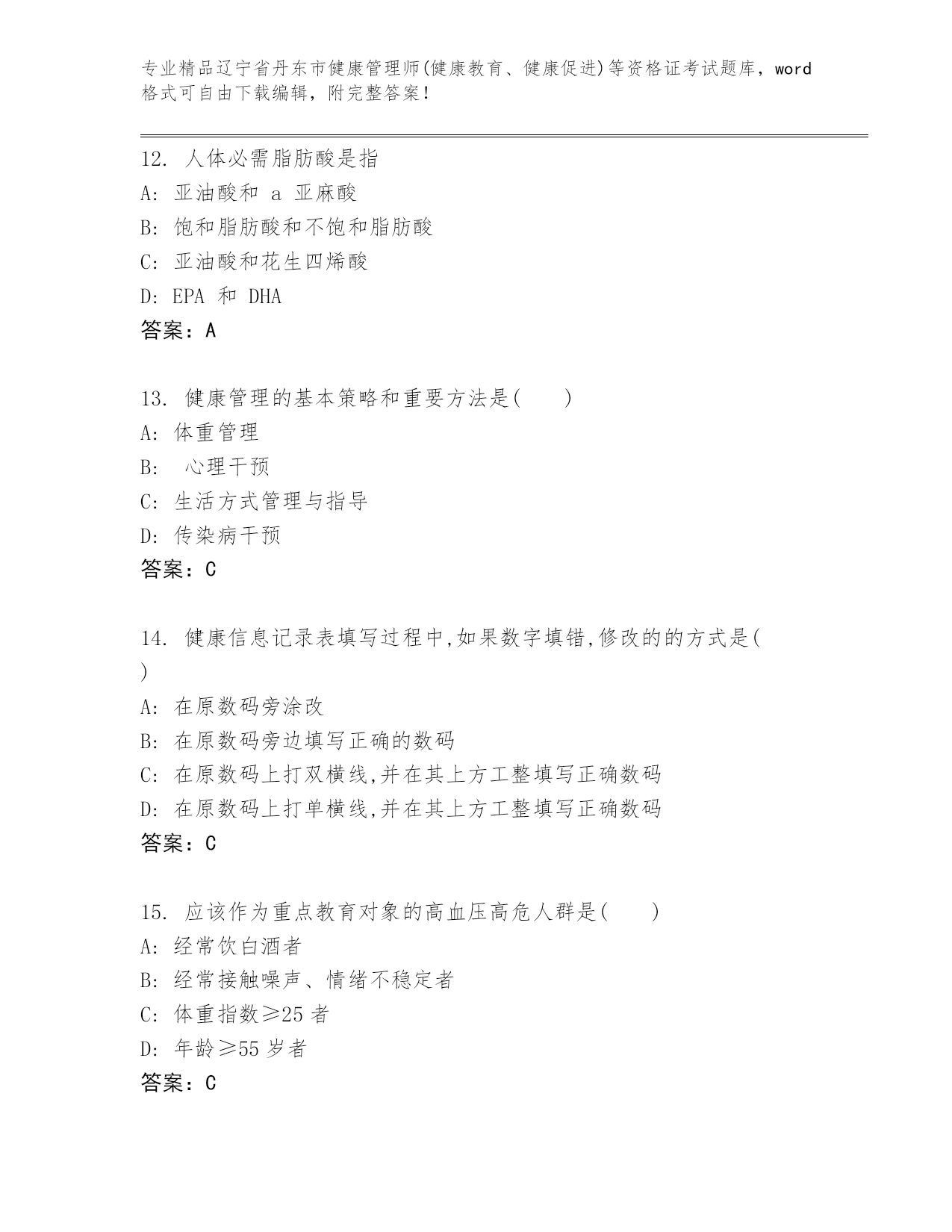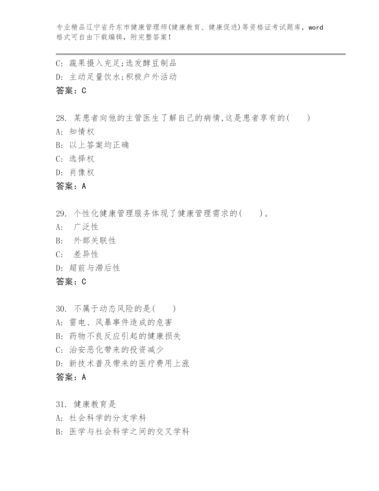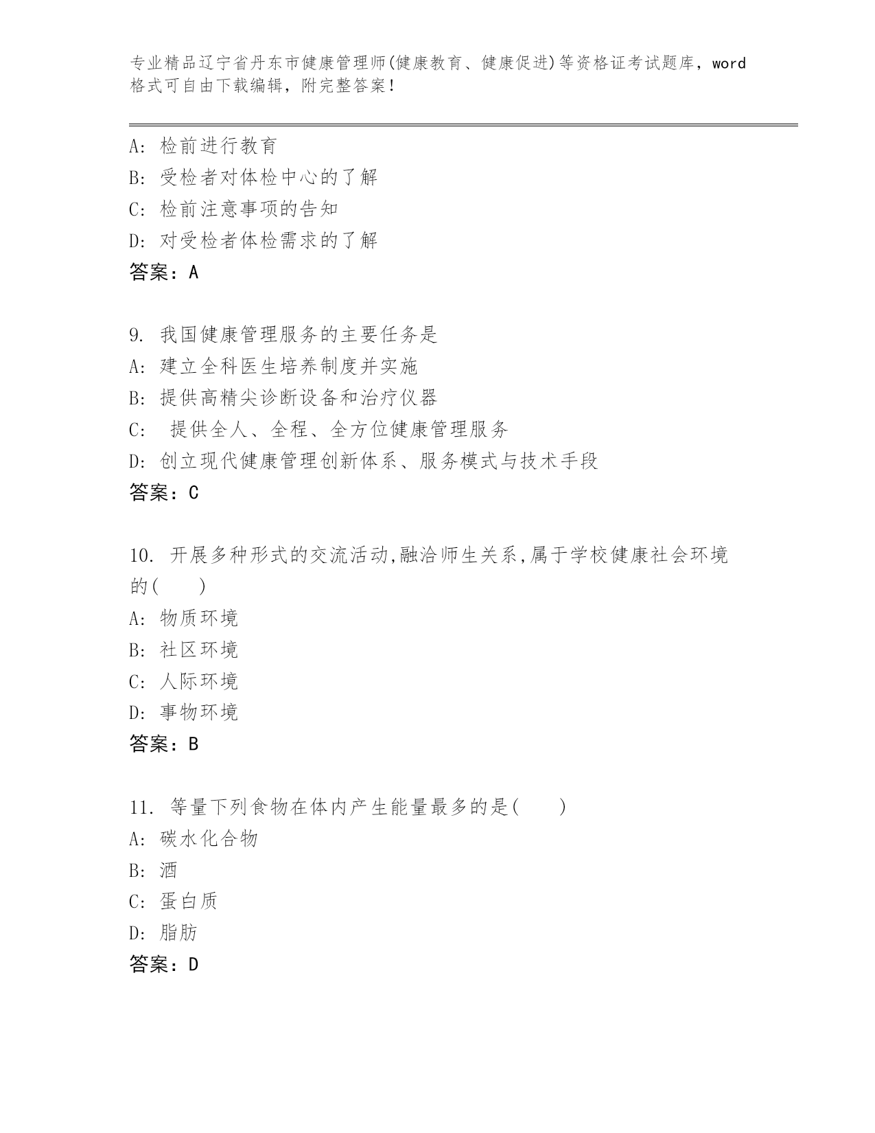 优选辽宁省丹东市健康管理师(健康教育、健康促进)等资格证考试带答案(预热题).docx