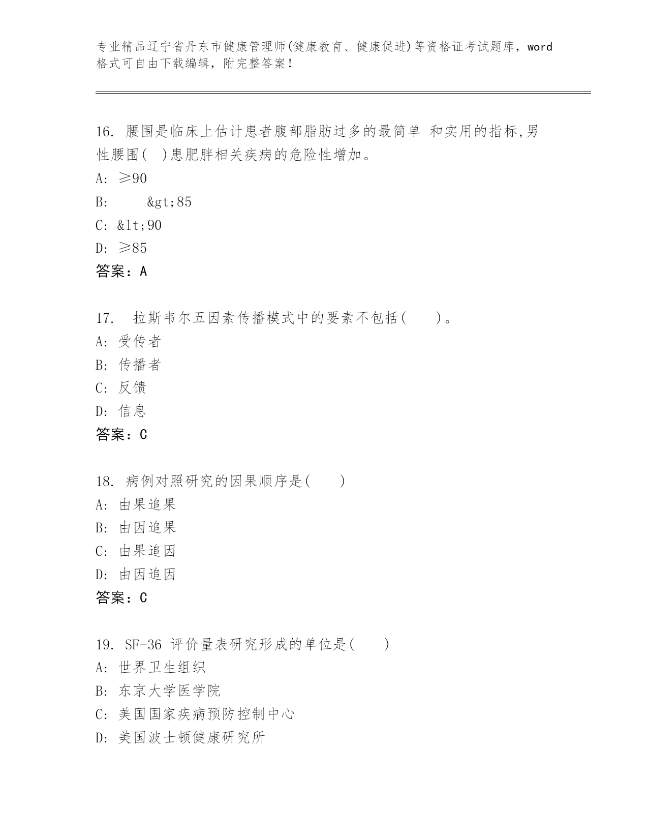 优选辽宁省丹东市健康管理师(健康教育、健康促进)等资格证考试带答案(预热题)
