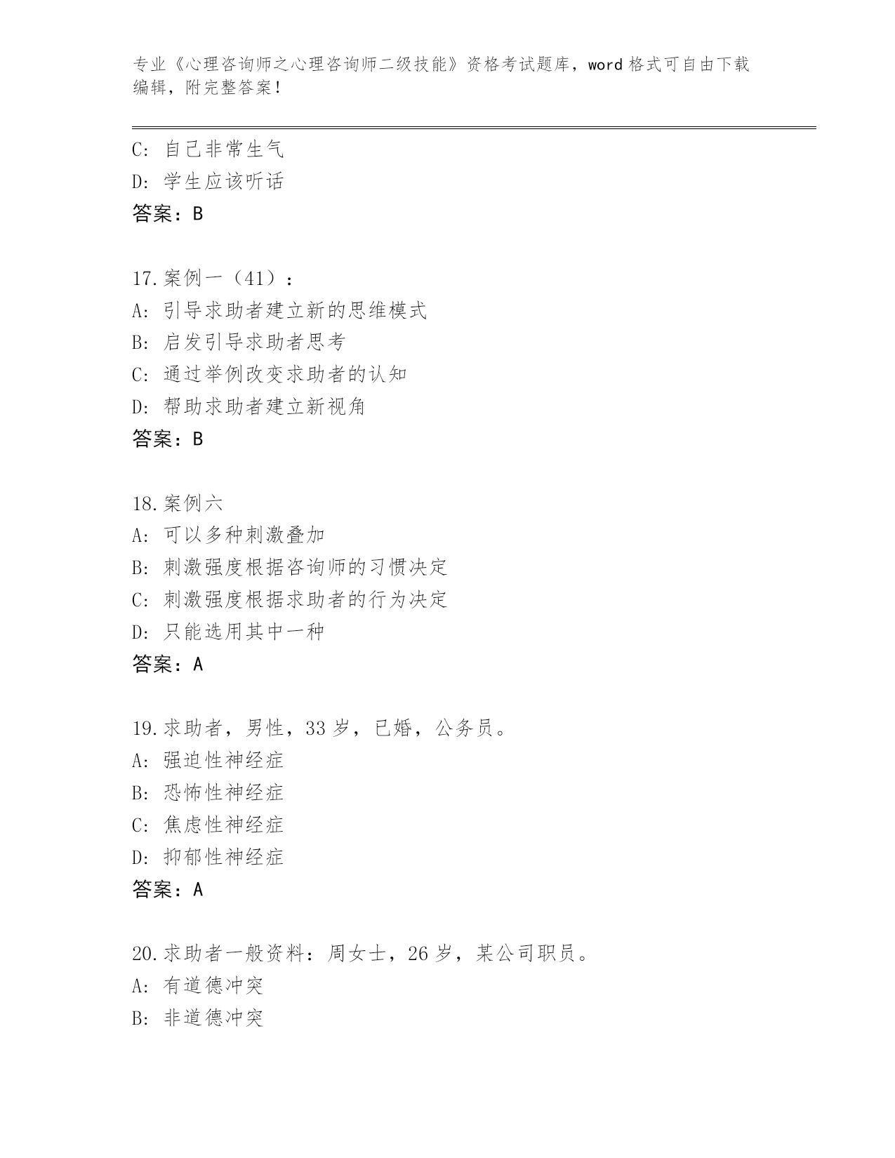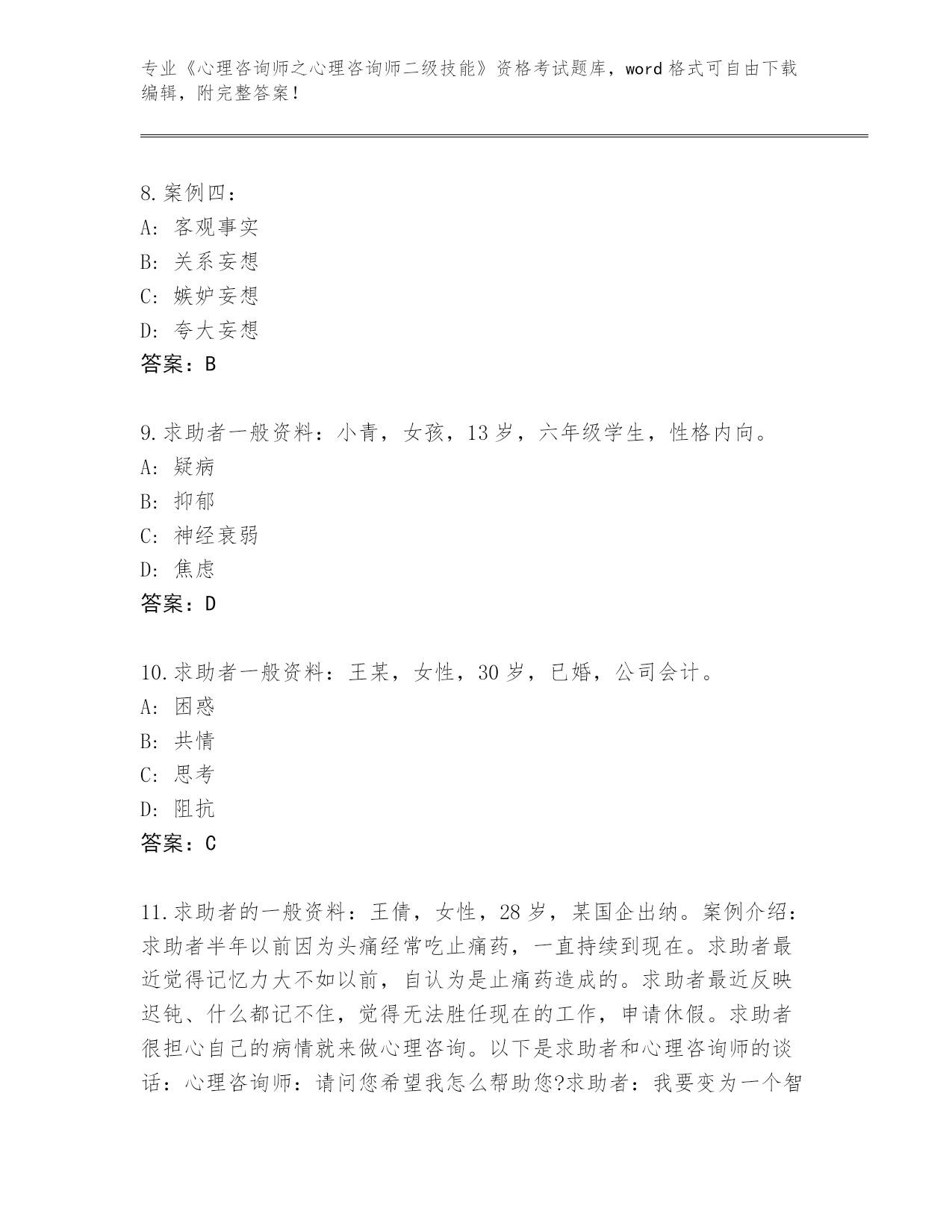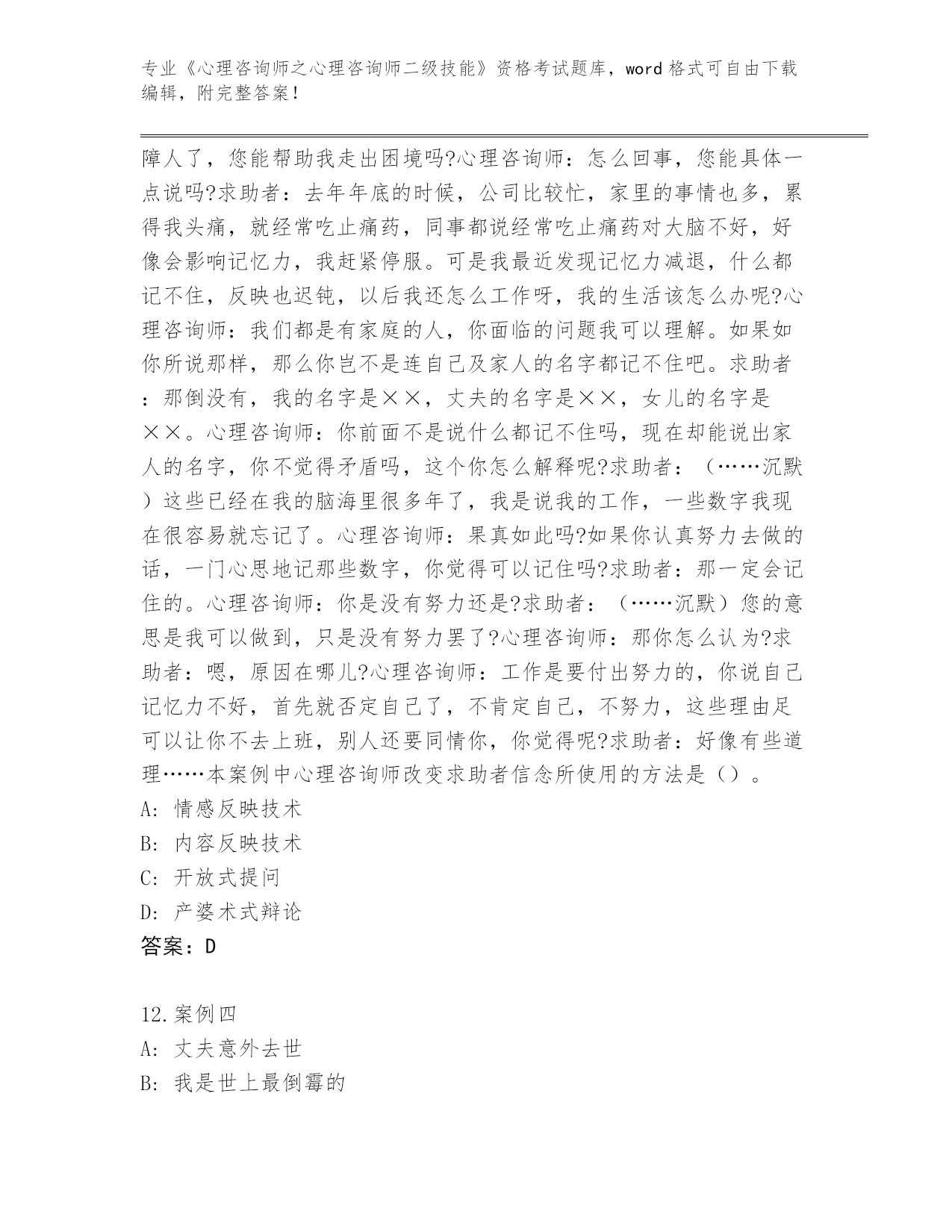河南省内部使用《心理咨询师之心理咨询师二级技能》资格考试完整版带答案(黄金题型)
