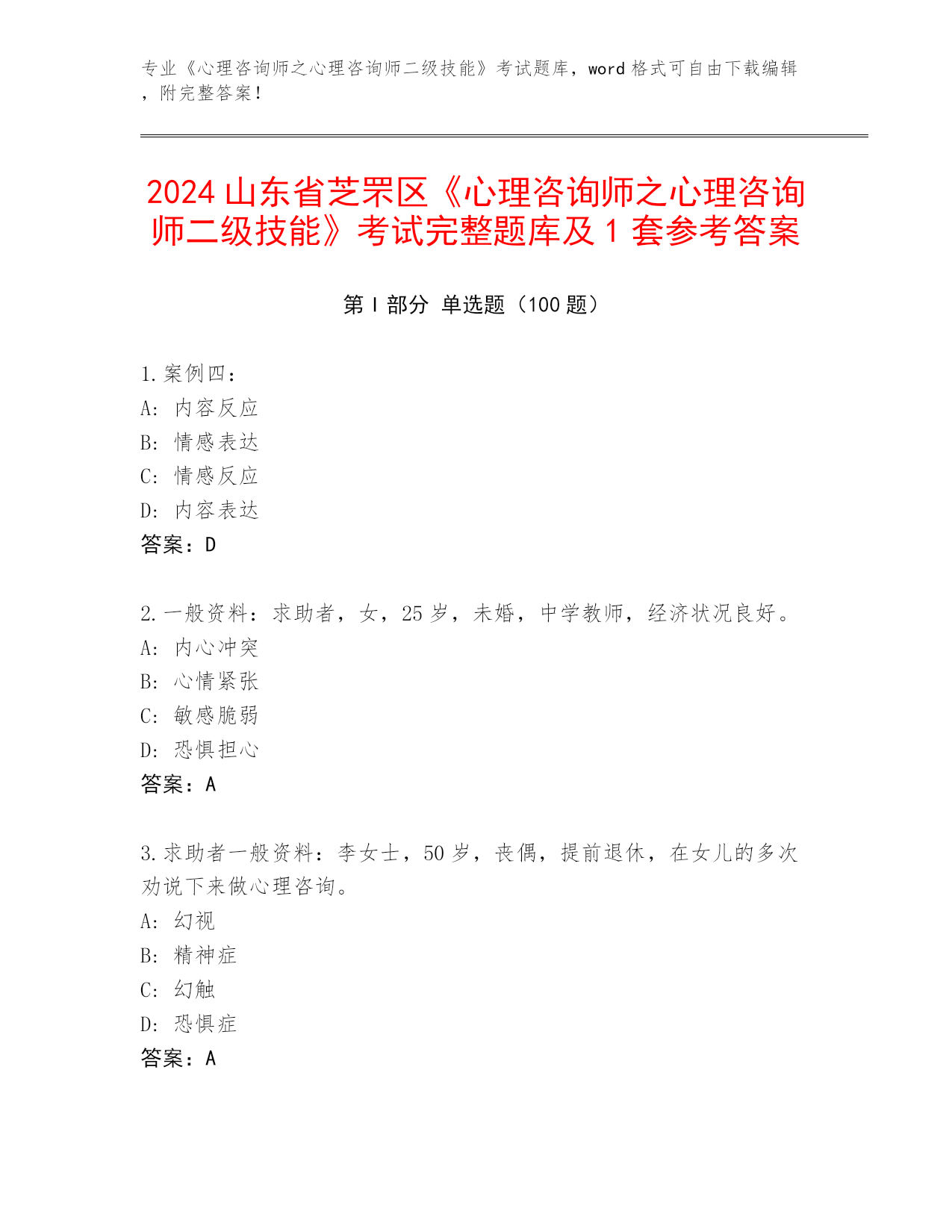 2024山东省芝罘区《心理咨询师之心理咨询师二级技能》考试完整题库及1套参考答案