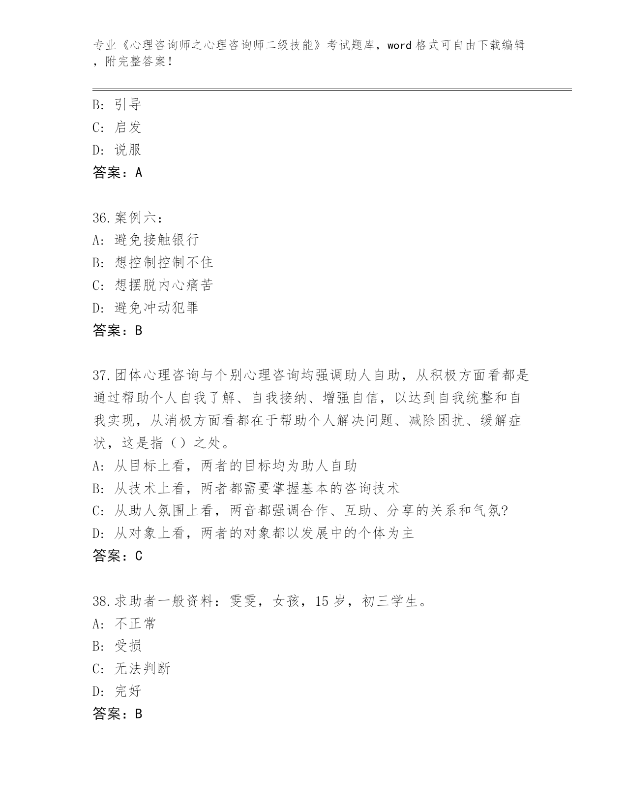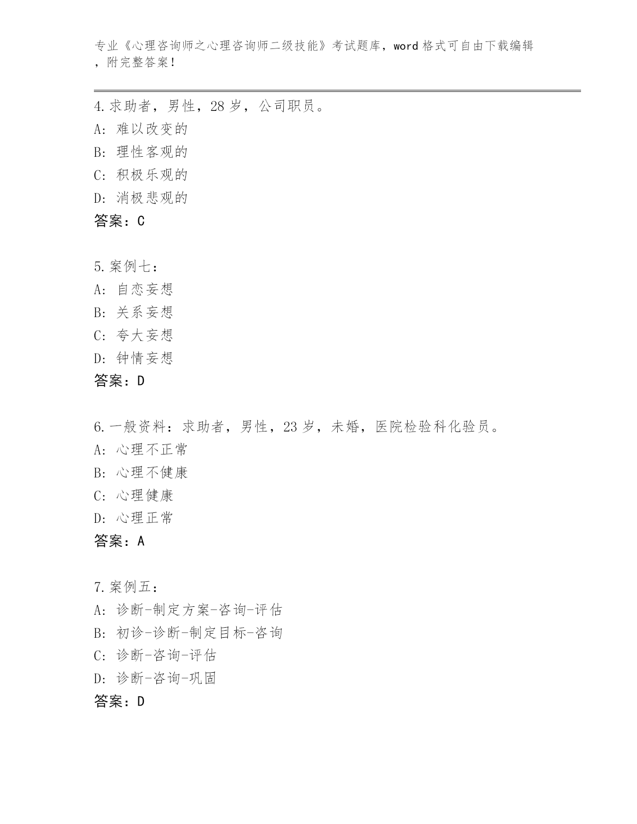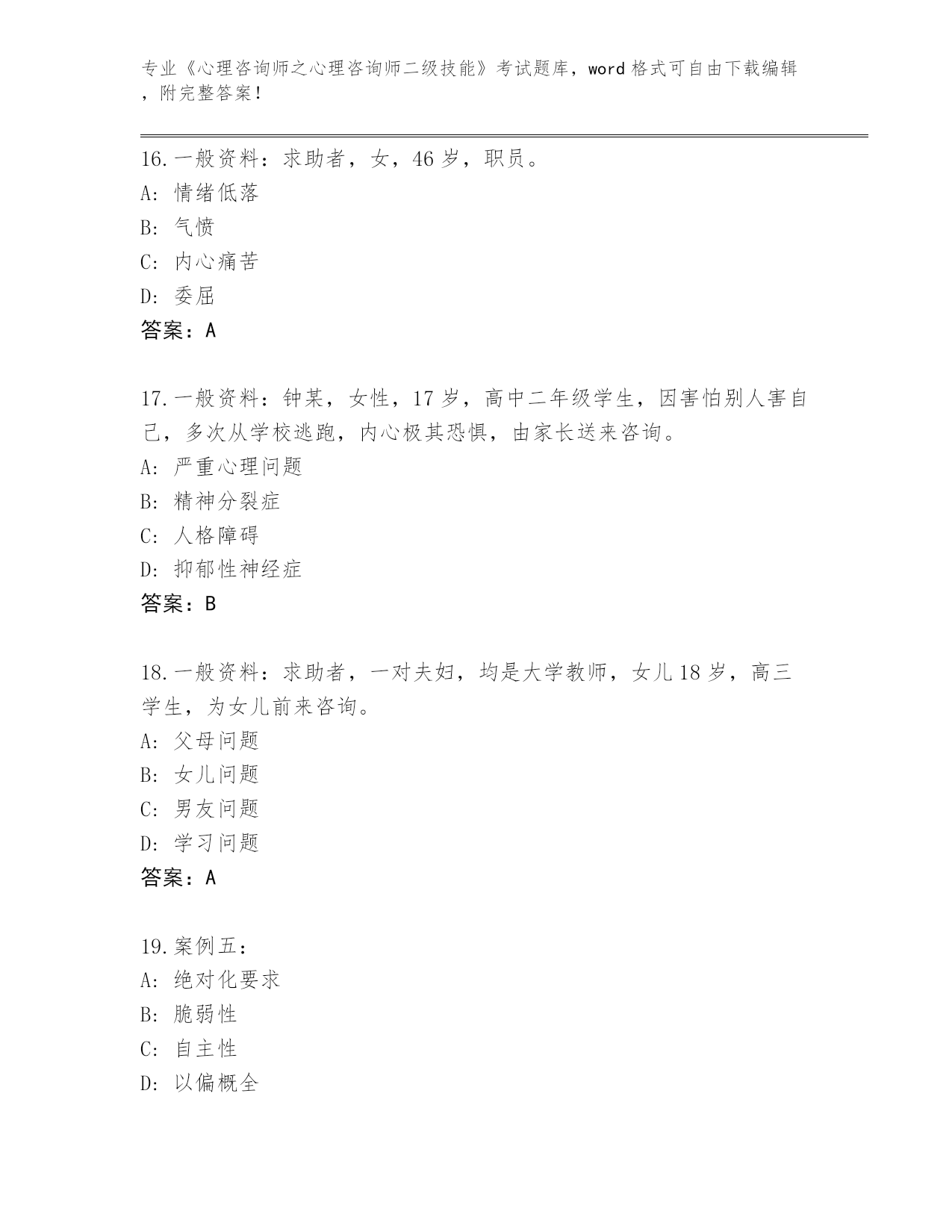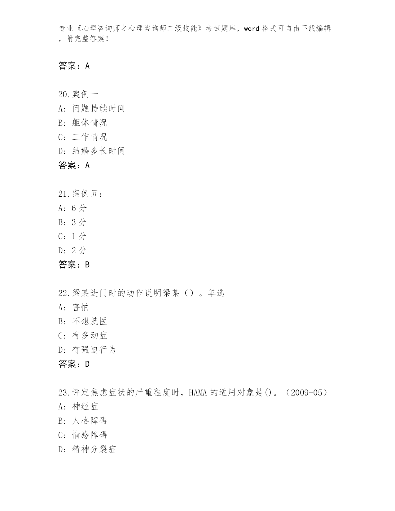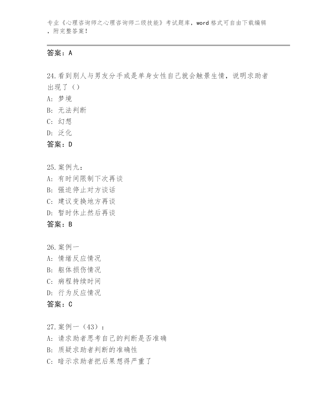山东省环翠区2024年《心理咨询师之心理咨询师二级技能》考试内部题库完整