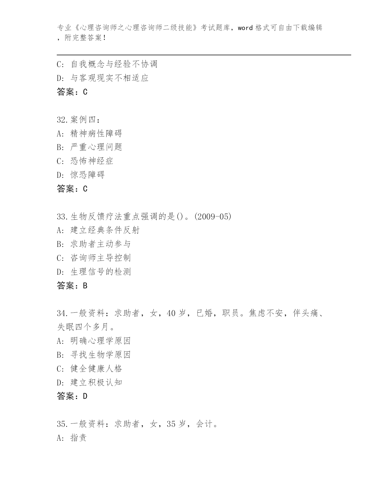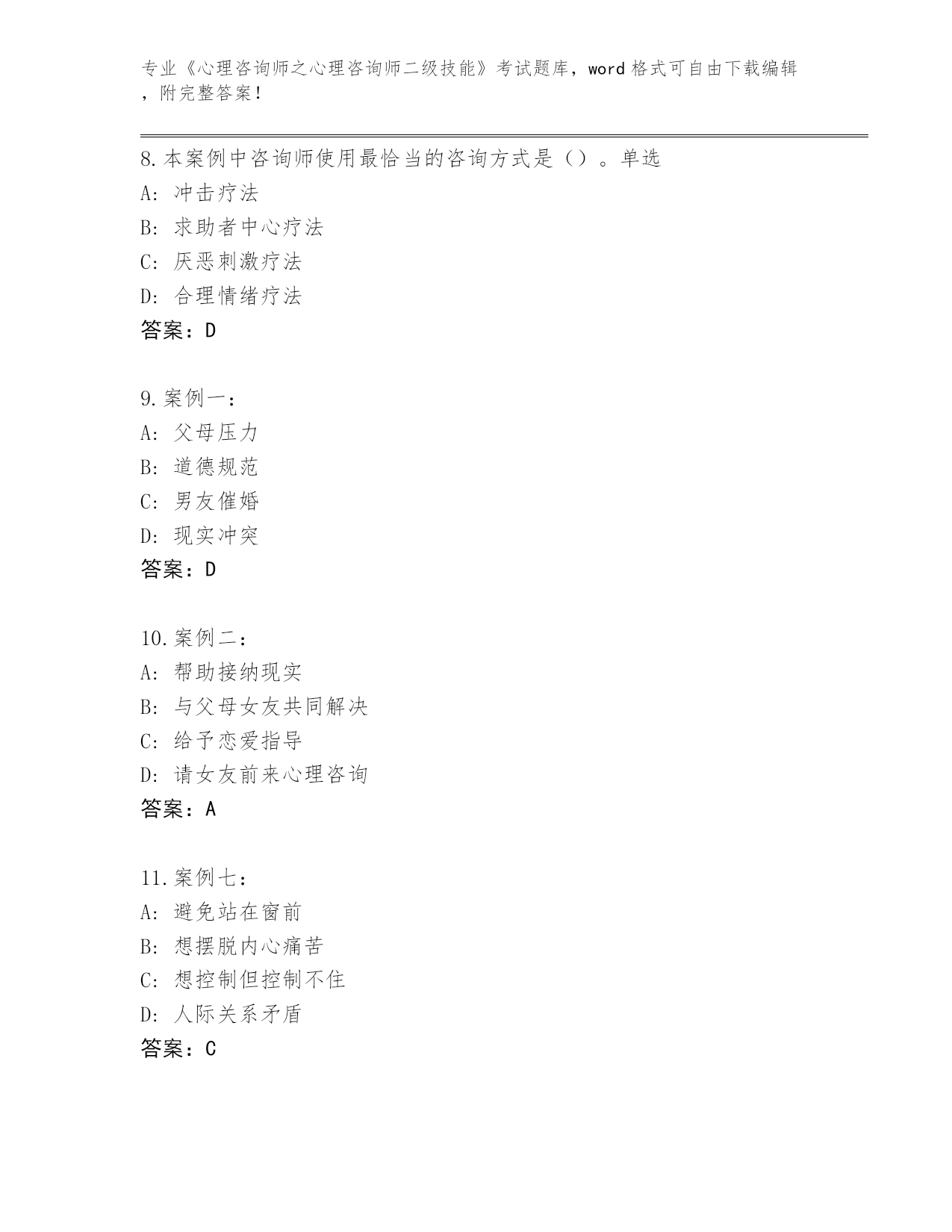 山东省芝罘区2024年《心理咨询师之心理咨询师二级技能》资格考试必背200题题库附答案【典型题】
