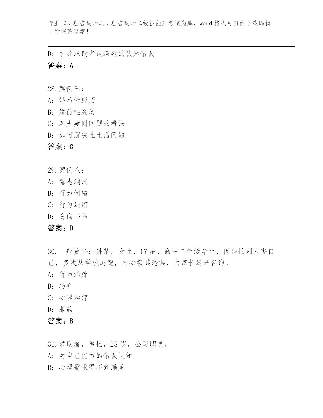 山东省芝罘区2024年《心理咨询师之心理咨询师二级技能》考试真题题库附答案解析
