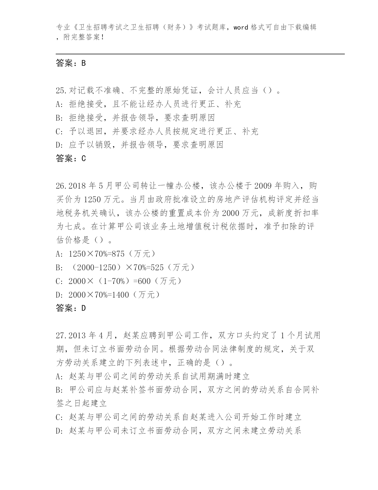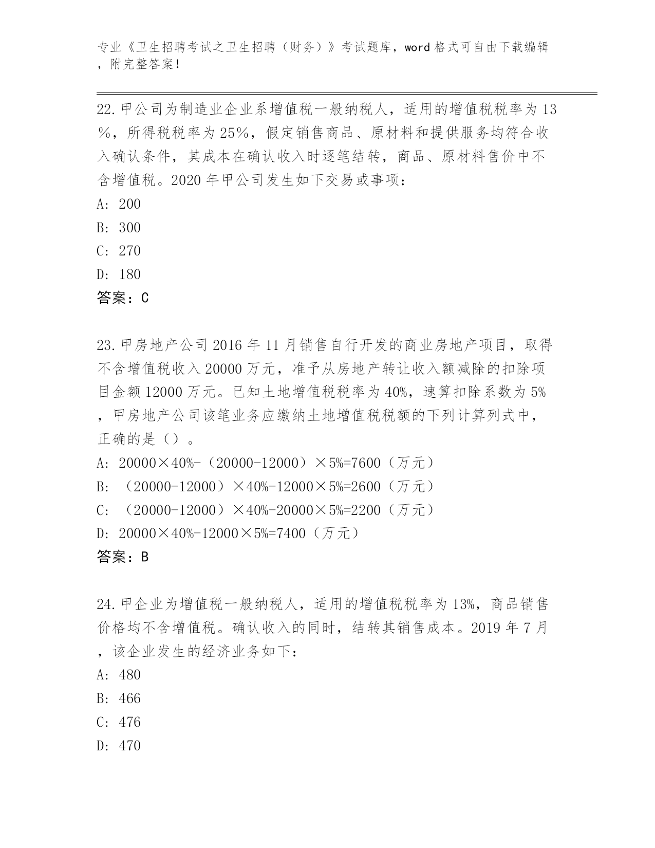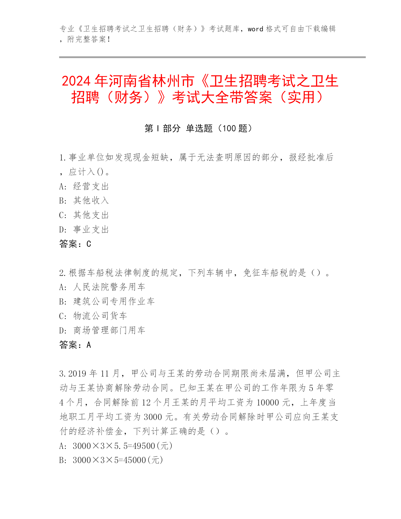2024年河南省林州市《卫生招聘考试之卫生招聘(财务)》资格考试大全含下载答案
