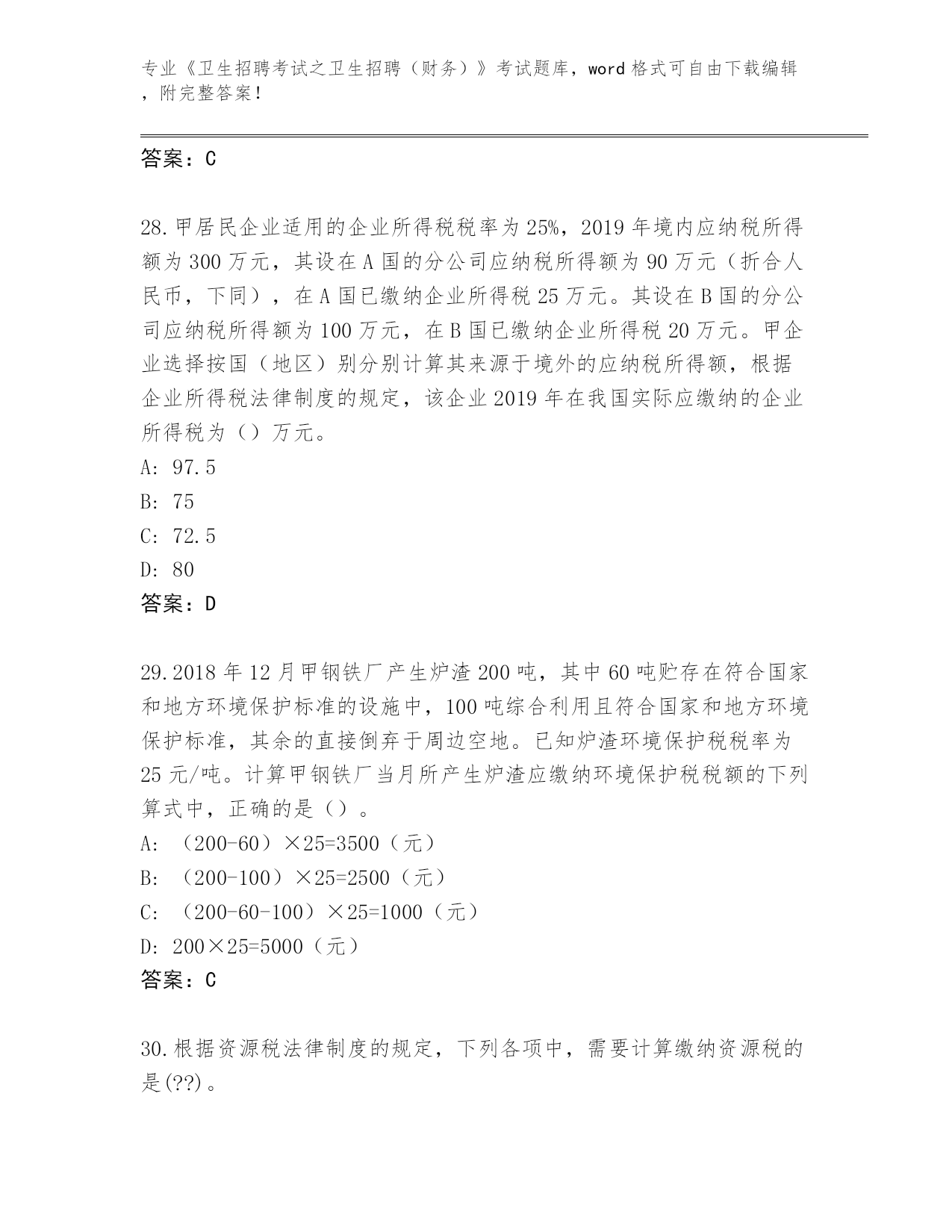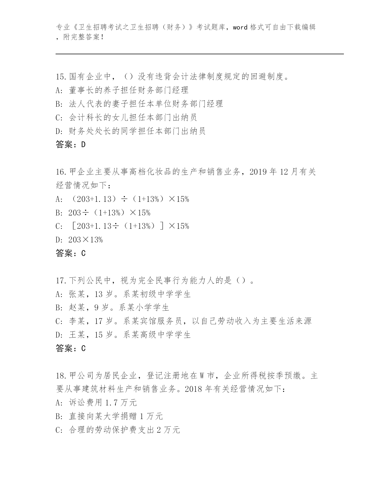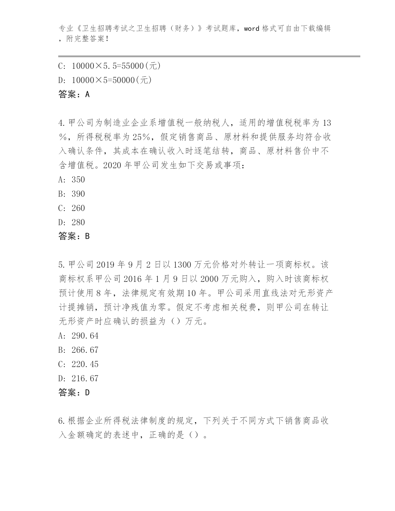 2024年河南省林州市《卫生招聘考试之卫生招聘(财务)》资格考试大全含下载答案