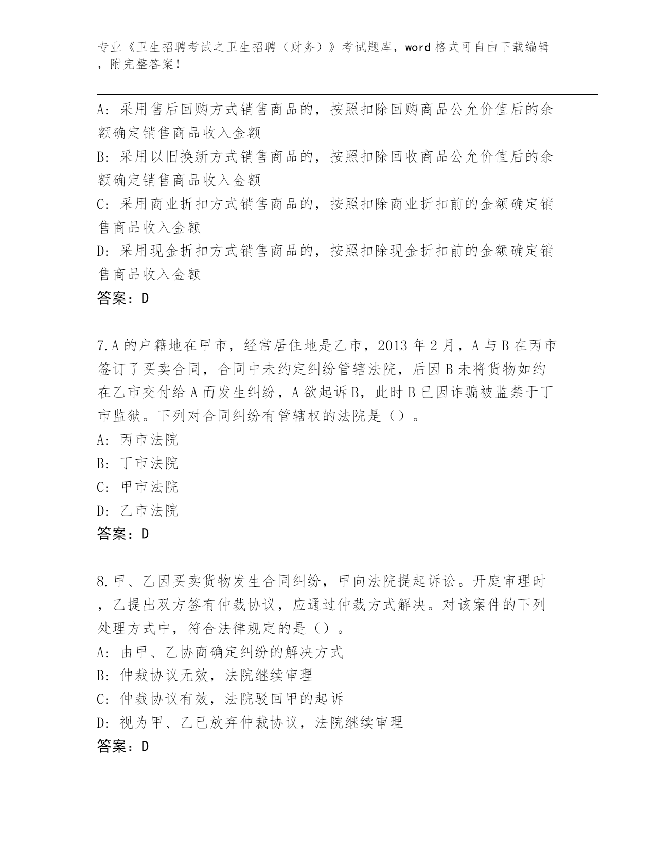 2024贵州省思南县《卫生招聘考试之卫生招聘(财务)》考试大全带答案(实用)