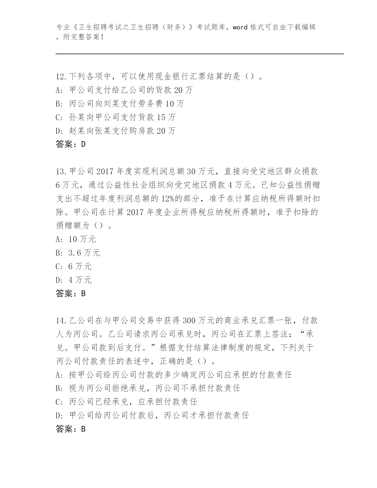 甘肃省历年《卫生招聘考试之卫生招聘(财务)》考试大全【实用】