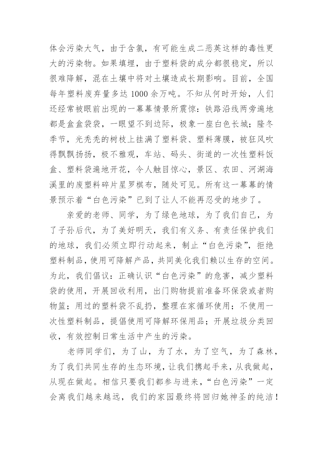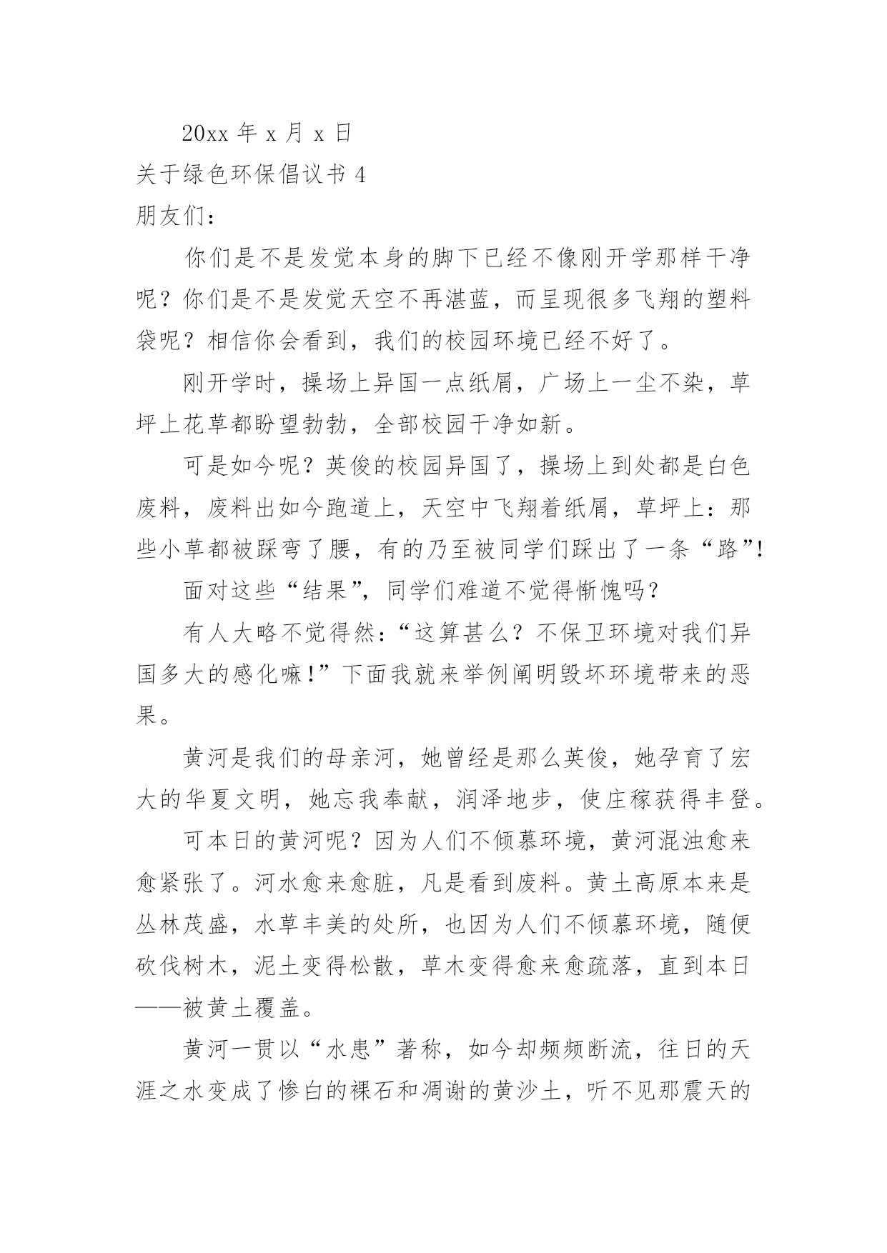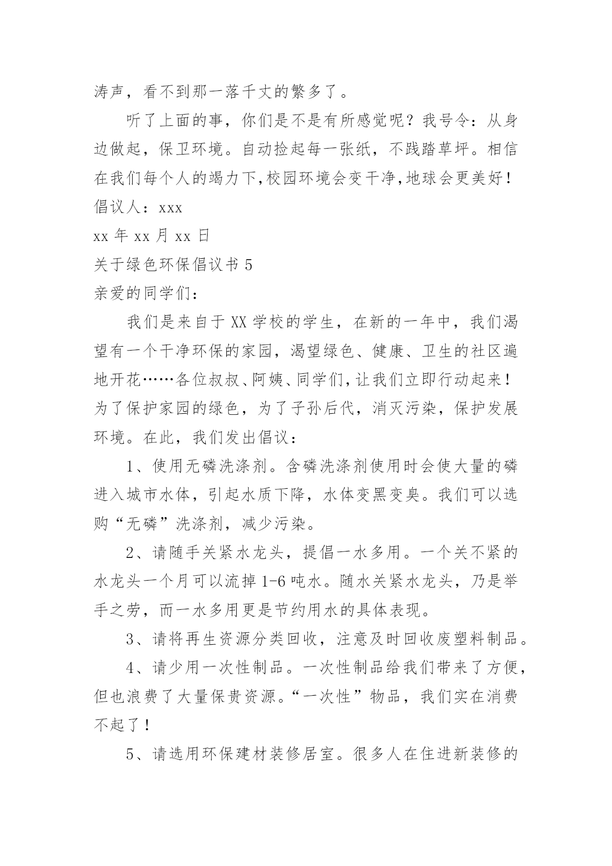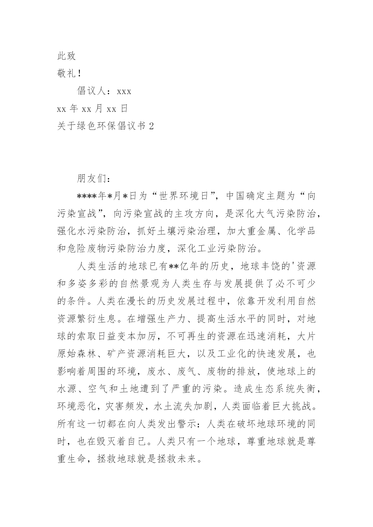 绿色环保倡议书关于绿色环保倡议书现如今,倡议书与我们的生活息息相关,倡议书有利于倡议者交代清楚倡议活动的原因,以及当时的各种背景事实。那要怎么写好倡议书呢?下面是小编为大家收集的关于绿色环保倡议书,欢迎大家借鉴与参考,希望对大家有所帮助。关于绿色环保倡议书1亲爱的老师、同学们:在全球环境问题日趋严重的今天,尤其是被称为环保头号大敌的“白色污染”,已成为影响城市乡村环境和人们生活的一道难题。环境保护正变得越来越紧迫,不加限制的环境污染,将会导致环境污染不断蔓延扩散。为了更清新的空气,更清澈的水源,更洁净的蓝天白云,任何一个谋求长远发展的国家,任何一个有责任心的市民,都不能再忍受由不文明的生活方式造成对环境的污染。为了我们的地球能够重返绿色、为了我们日日夜夜生活的城市,让我们立即行动起来吧!保护环境,消灭污染,从点滴做起,从拒绝使用塑料袋做起。所谓“白色污染”,是指主要包括塑料袋、塑料快餐盒、餐具、杯盘、塑料包装等废弃的不易降解的塑料对环境的污染。许多塑料袋成分是聚氯乙烯,如果焚烧,焚烧产生的气体会污染大气,由于含氯,有可能生成二恶英这样的毒性更大的污染物。如果填埋,由于塑料袋的成分都很稳定,所以很难降解,混在土壤中将对土壤造成长期影响。目前,全国每年塑料废弃量多达1000余万吨。不知从何时开始,人们还经常被眼前出现的一幕幕情景所震惊:铁路沿线两旁遍地都是盒盒袋袋,一眼望不到边际,极象一座白色长城;隆冬季节,光秃秃的树枝上挂满了塑料袋、塑料薄膜,被狂风吹得飘飘扬扬,极不雅观,车站、码头、街道的一次性塑料饭盒、塑料袋遍地开花,令人触目惊心,景区、农田、河湖海溪里的废塑料碎片星罗棋布,随处可见。所有这一幕幕的情景预示着“白色污染”已到了让人不能再忍受的地步了。亲爱的老师、同学,为了绿色地球,为了我们自己,为了子孙后代,为了美好明天,我们有义务、有责任保护我们的地球,我们必须立即行动起来,制止“白色污染”,拒绝塑料制品,使用可降解产品,共同美化我们赖以生存的空间。为此,我们倡议:正确认识“白色污染”的危害,减少塑料袋的使用,开展回收利用,出门购物提前准备环保袋或者购物篮;用过的塑料袋不乱扔,整理在家循环使用;不使用一次性塑料制品,提倡使用可降解环保用品;开展垃圾分类回收,有效控制日常生活中产生的污染。老师同学们,为了山,为了水,为了空气,为了森林,为了我们共同生存的生态环境,让我们携起手来,从我做起,从现在做起。相信只要我们都参与进来,“白色污染”一定会离我们越来越远,我们的家园最终将回归她神圣的纯洁!此致敬礼!倡议人:xxxxx年xx月xx日关于绿色环保倡议书2朋友们:****年*月*日为“世界环境日”,中国确定主题为“向污染宣战”,向污染宣战的主攻方向,是深化大气污染防治,强化水污染防治,抓好土壤污染治理,加大重金属、化学品和危险废物污染防治力度,深化工业污染防治。人类生活的地球已有**亿年的历史,地球丰饶的'资源和多姿多彩的自然景观为人类生存与发展提供了必不可少的条件。人类在漫长的历史发展过程中,依靠开发利用自然资源繁衍生息。在增强生产力、提高生活水平的同时,对地球的索取日益变本加厉,不可再生的资源在迅速消耗,大片原始森林、矿产资源消耗巨大,以及工业化的快速发展,也影响着周围的环境,废水、废气、废物的排放,使地球上的水源、空气和土地遭到了严重的污染。造成生态系统失衡,环境恶化,灾害频发,水土流失加剧,人类面临着巨大挑战。所有这一切都在向人类发出警示:人类在破坏地球环境的同时,也在毁灭着自己。人类只有一个地球,尊重地球就是尊重生命,拯救地球就是拯救未来。地球只有一个,保护地球,就是保护我们自己。地球的安宁,世界的美好,需要全社会的共同努力。为了人类,为了自己,为了我们的子孙后代,永远有一个美好的生存环境,中一监测发起倡议:*、自觉保护生活环境,积极参与社会绿化美化活动,保护绿地花木。*、大力节约能源。不使用一次性餐盒、一次性筷子等消费品,不浪费纸张、水电,随手关灯、随时关紧水龙头。*、使用环保电池,防止汞、铬污染,慎用洗涤剂,减少水污染。*、倡导文明行为,从我做起,不随地吐痰,不乱扔废弃物。*、提倡垃圾分类。清理“白色”污染,把废塑料袋打个结再扔进垃圾箱。*、提倡绿色出行,多骑单车,出行多乘公交车,健康环保两不误。*、提倡科技创新,科学文明生产和工作,更新工艺、创造环保设备、改变传统生存习惯,美化环境、再造环境。*、要向朋友、同事、儿童和周围的人广泛宣传节约环保知识,创造良好的家庭和社会环境,形成全民参与节约资源和保护环境的良好社会风尚。青岛中一监测有限公司与您一起保护我们共同的家园,从“我”做起,向污染宣战,为生命护航!关于绿色环保倡议书3全市各级团组织、广大青少年朋友们:春暖花开,绿意盎然,值3月12日植树节来临之际,团市委