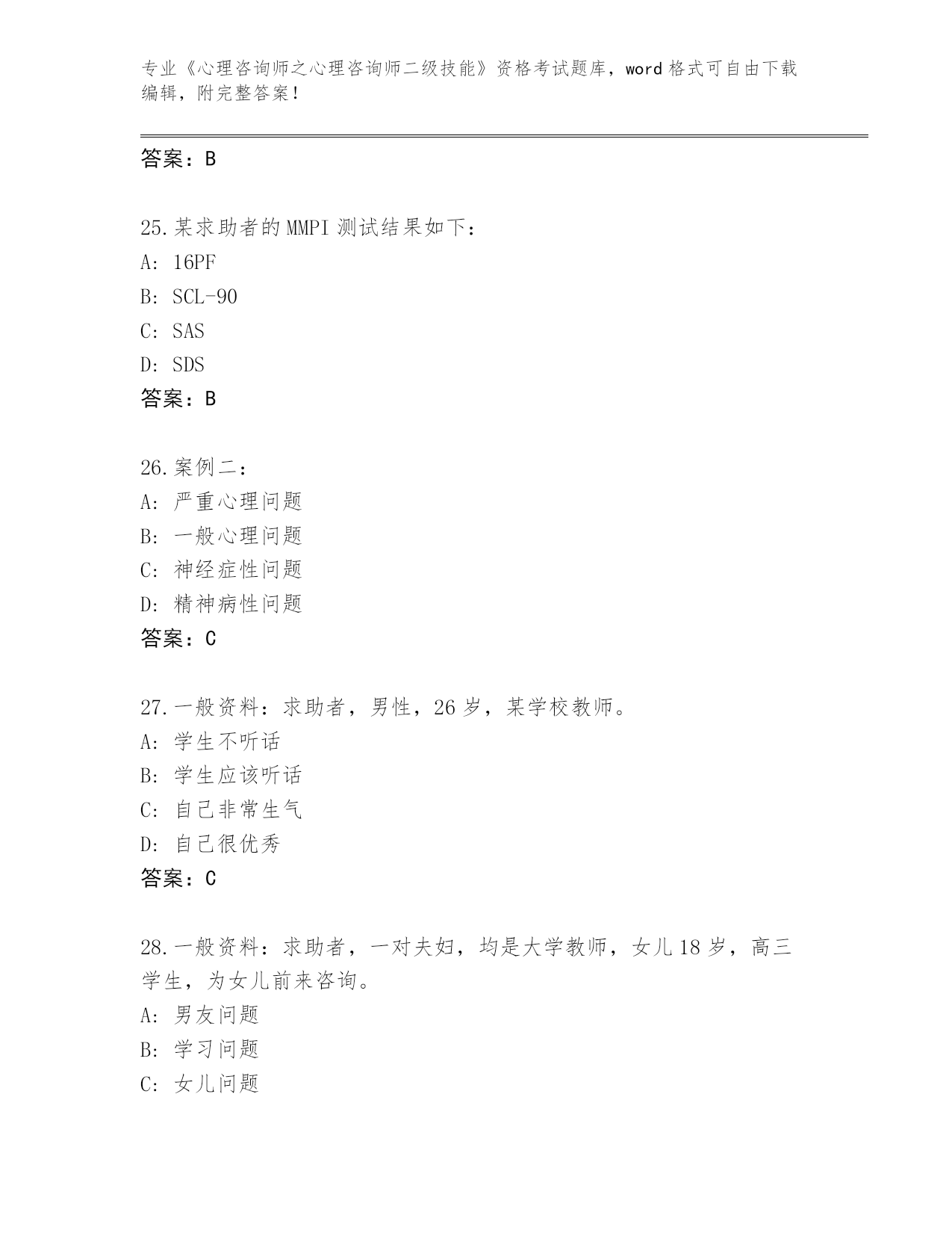 陕西省富县整理《心理咨询师之心理咨询师二级技能》资格考试题库【培优】