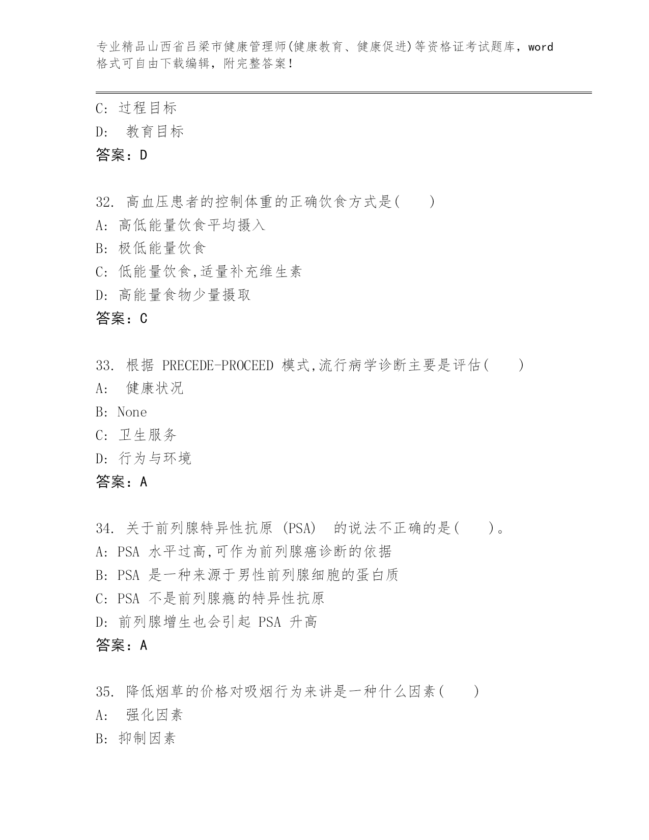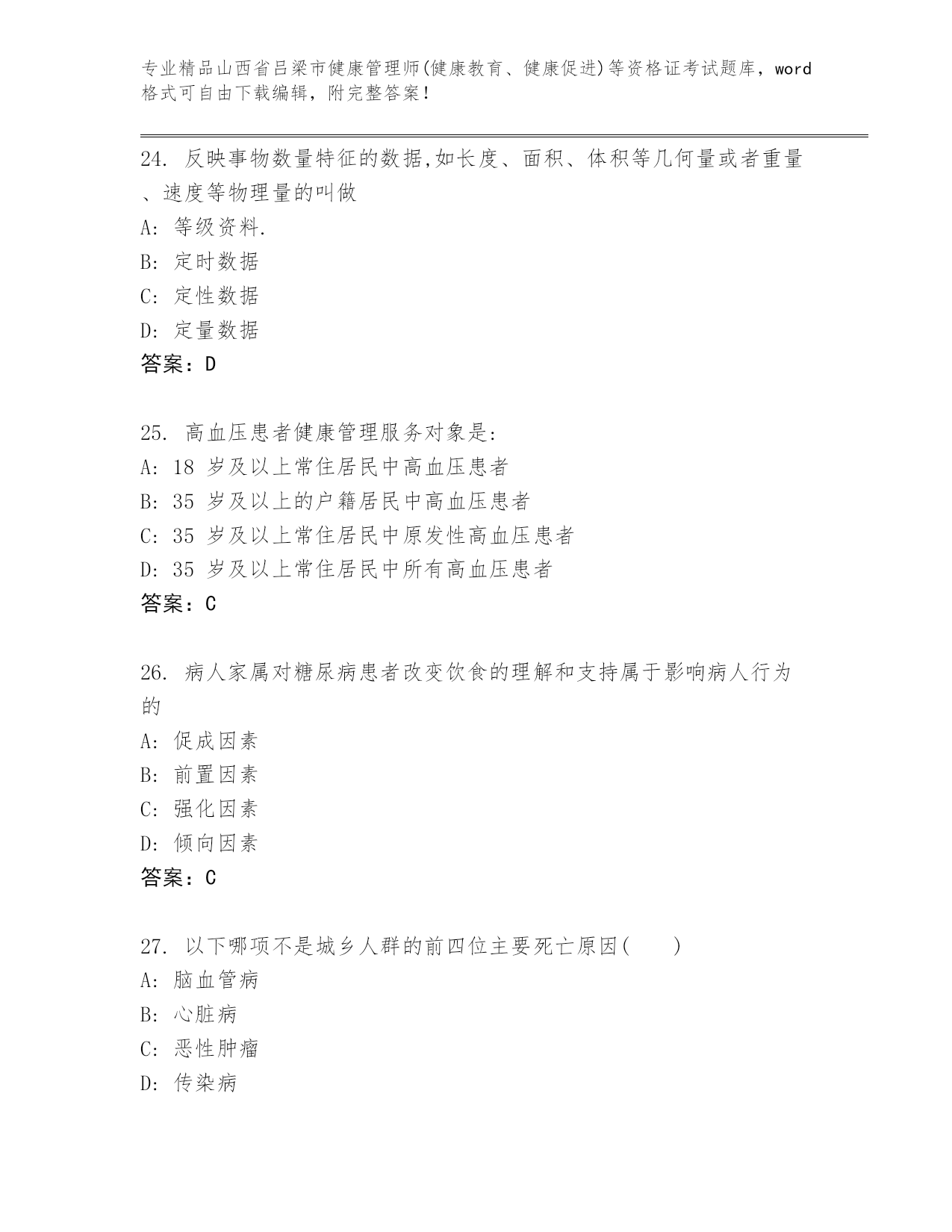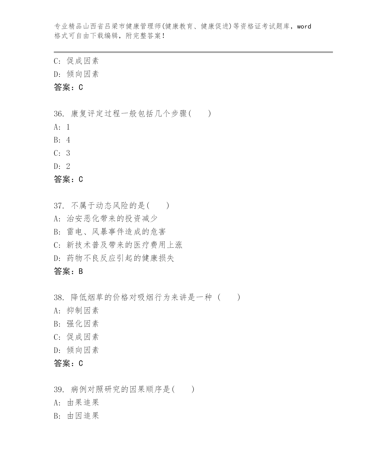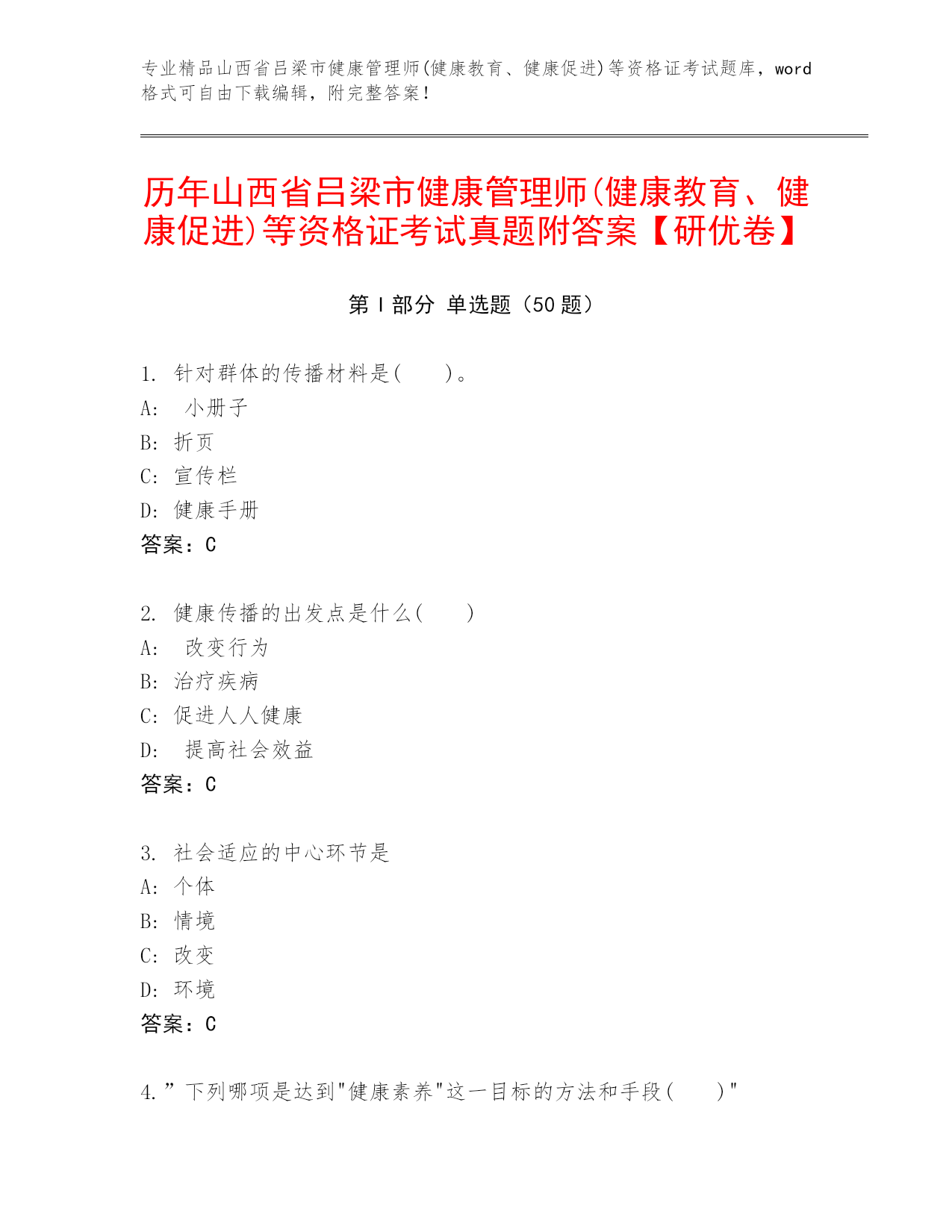 历年山西省吕梁市健康管理师(健康教育、健康促进)等资格证考试真题附答案【研优卷】.docx