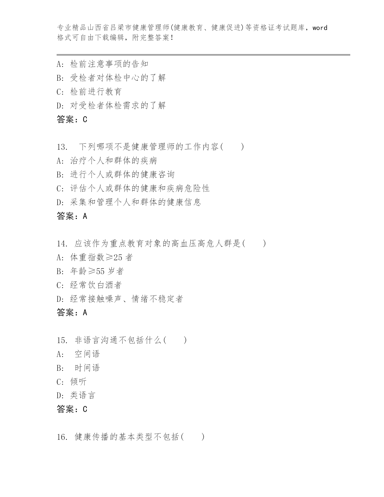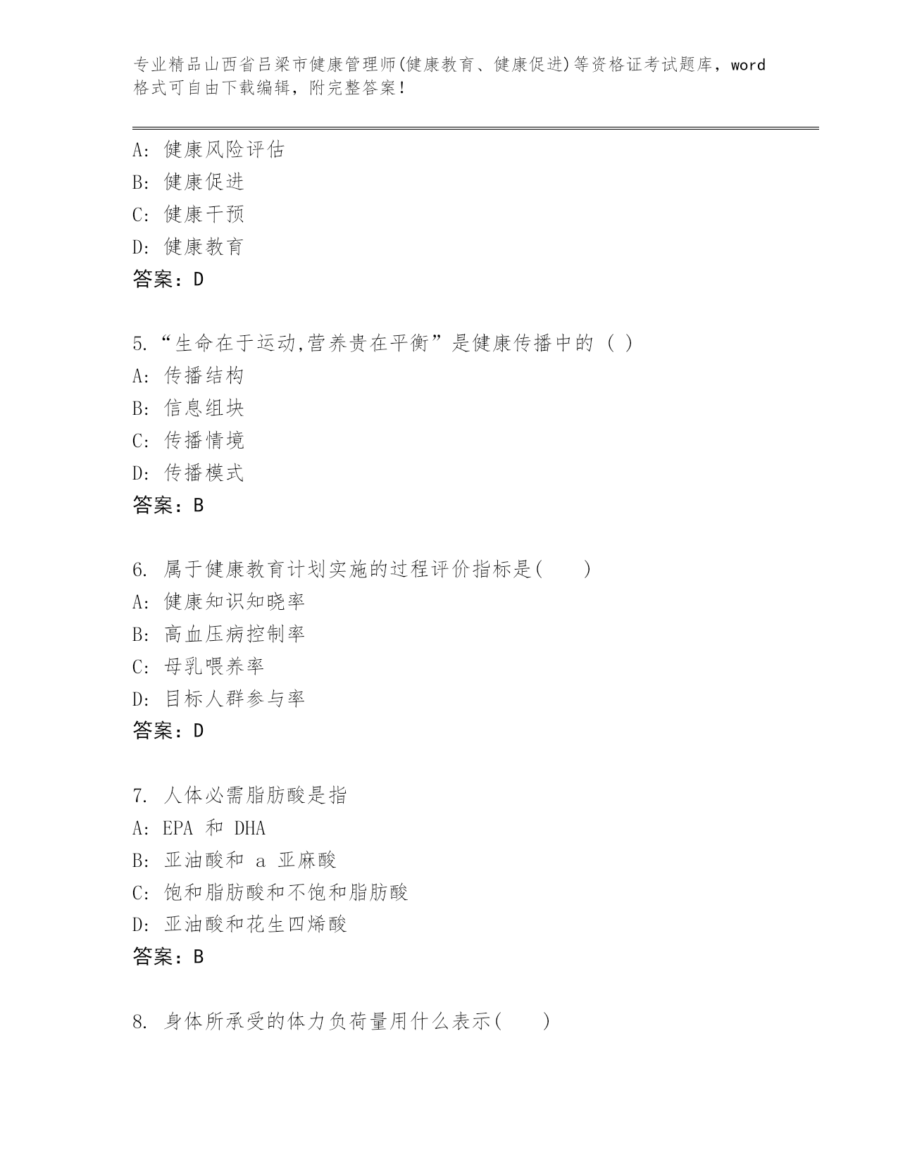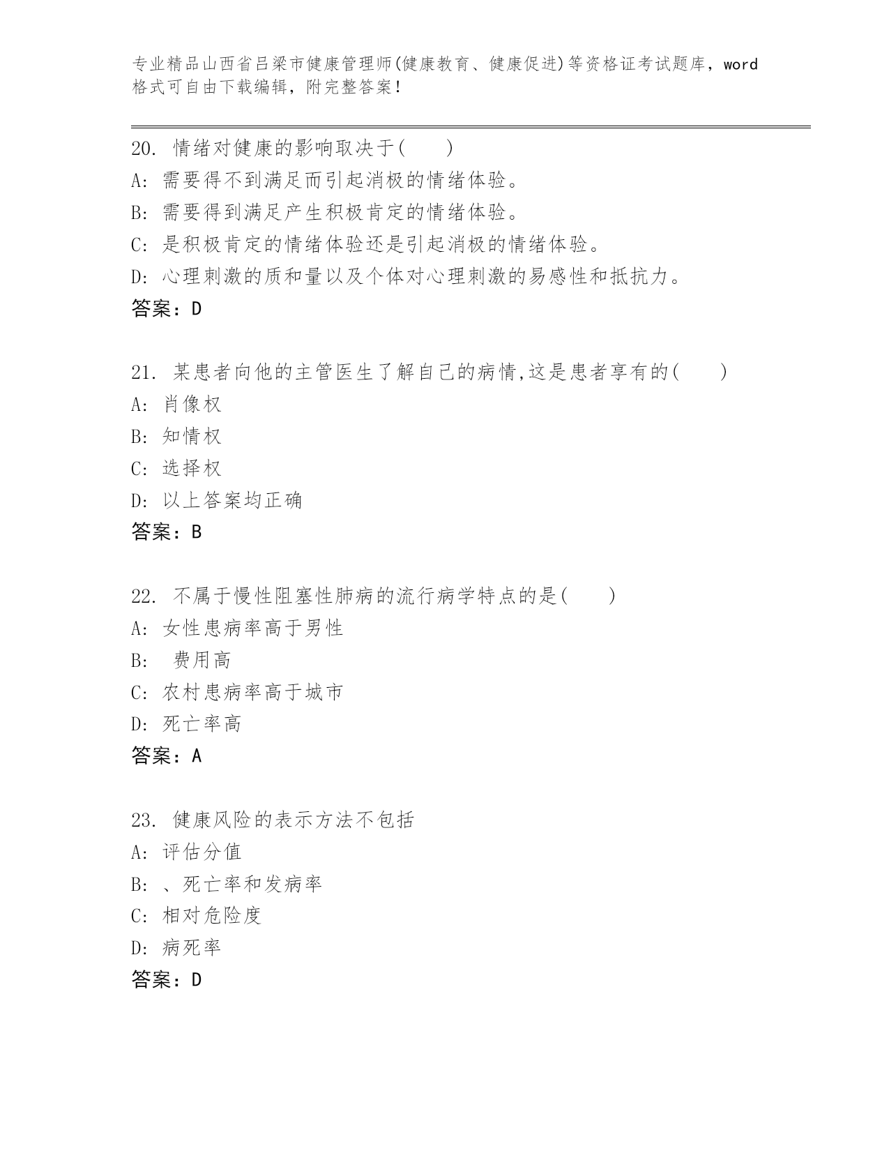 历年山西省吕梁市健康管理师(健康教育、健康促进)等资格证考试真题附答案【研优卷】