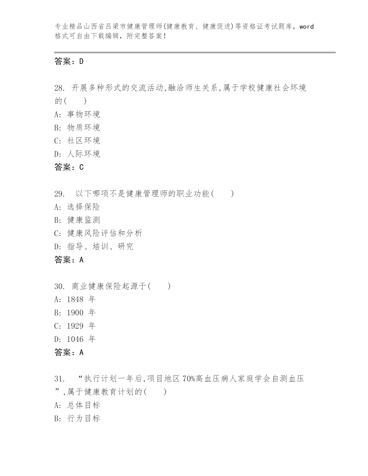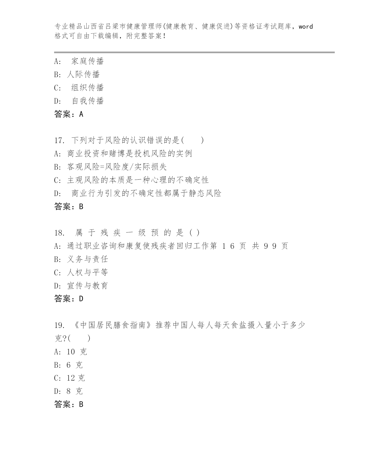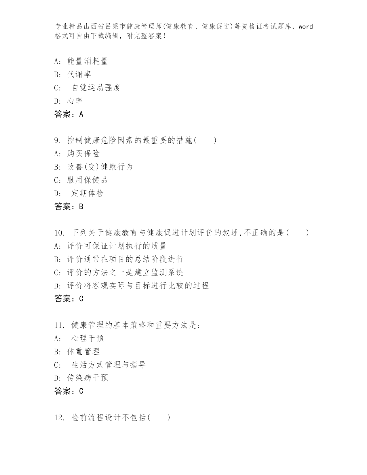 历年山西省吕梁市健康管理师(健康教育、健康促进)等资格证考试真题附答案【研优卷】