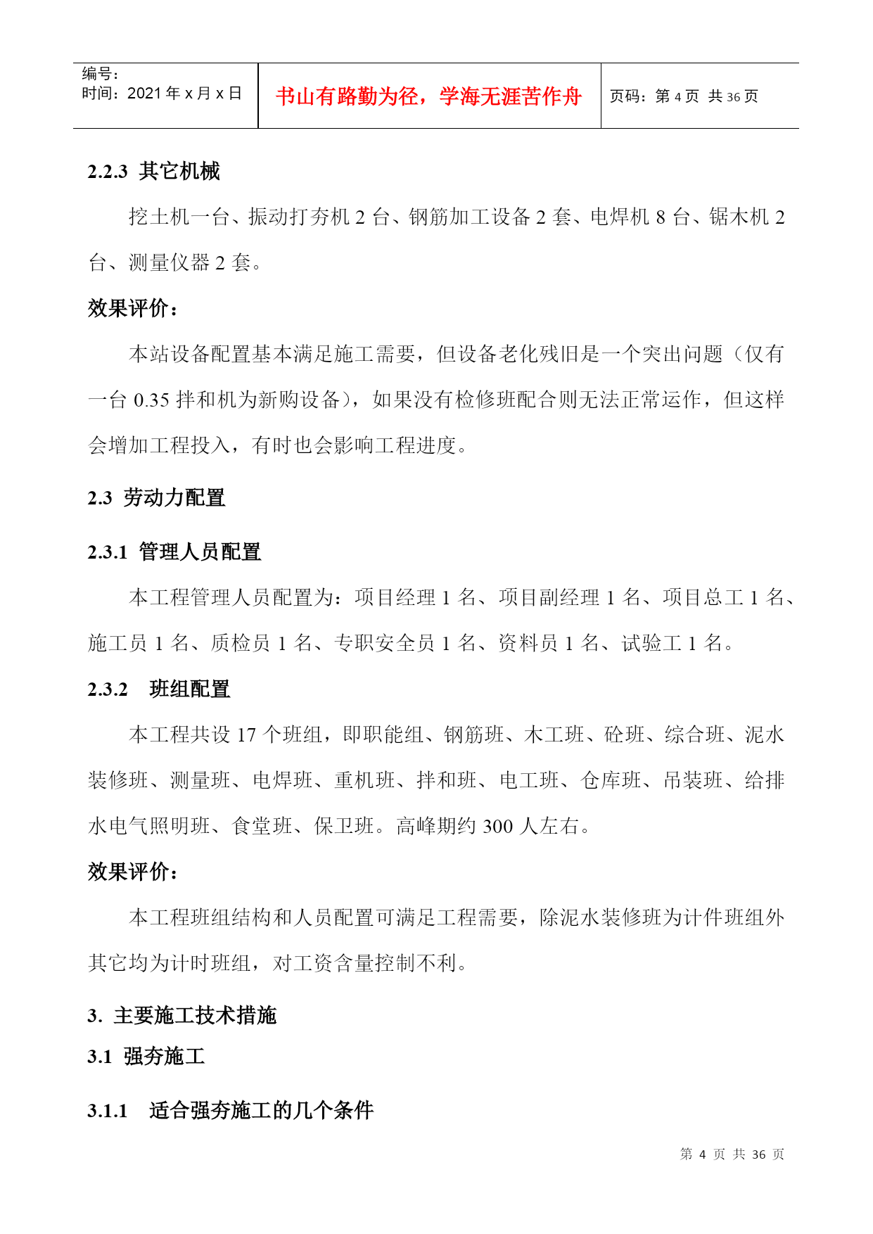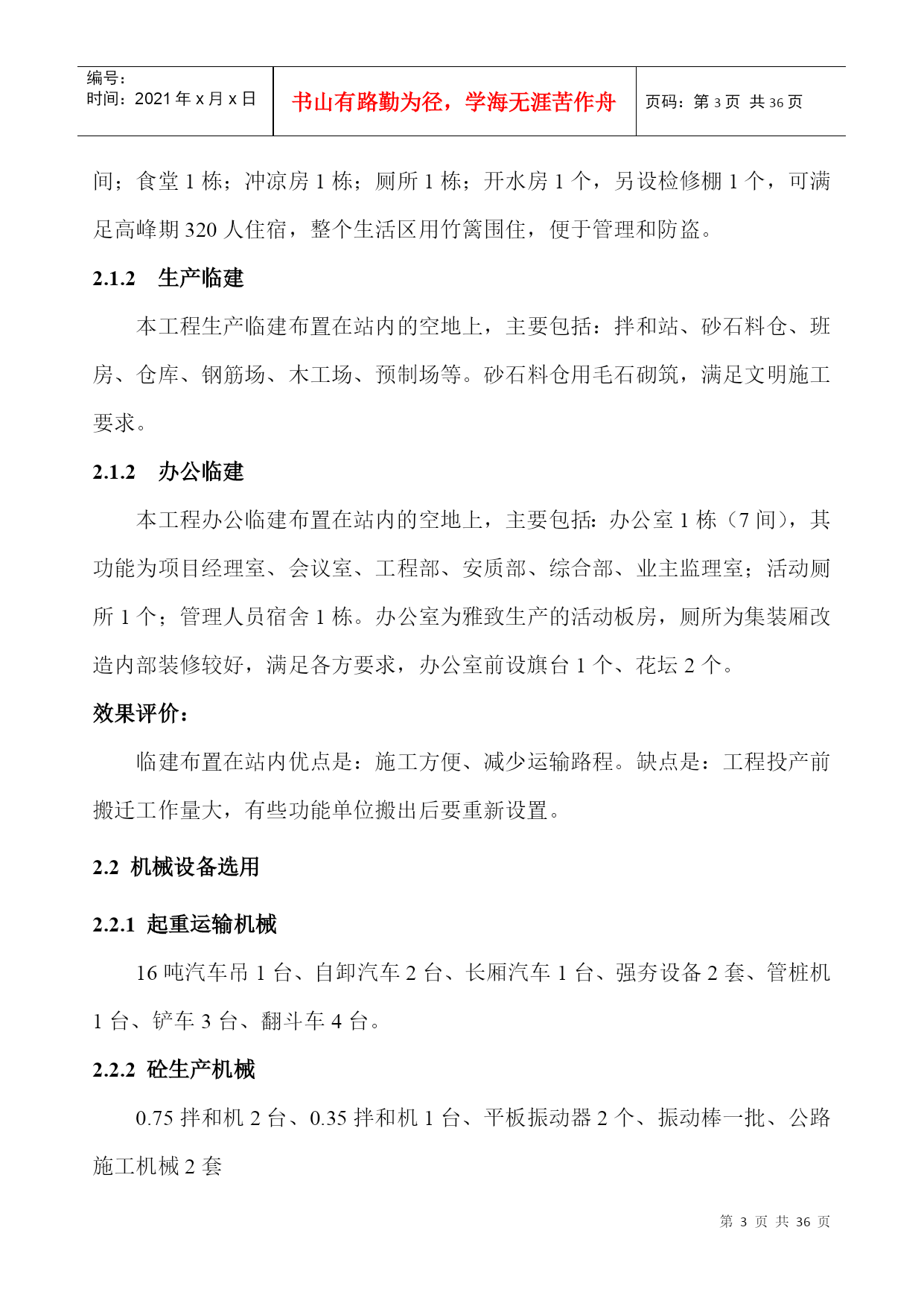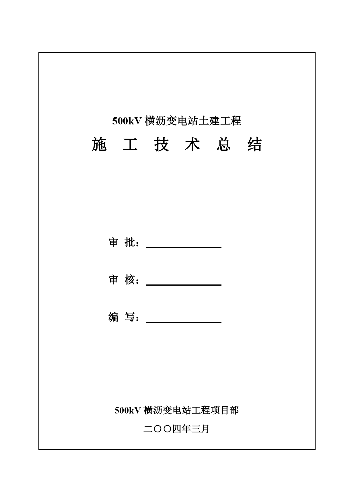 GEFB500kV横沥变电站工程施工组织设计PAGE-PAGE2-500kV东莞横沥变电站工程项目部二○○四年三月500kV横沥变电站土建工程施工技术总结审批:审核:编写:500kV横沥变电站工程项目部二○○四年三月目录TOC\*MERGEFORMAT1.工程简介及特点PAGEREF_Toc67906373\h11.1工程简介PAGEREF_Toc67906374\h11.2工程特点PAGEREF_Toc67906375\h12.施工总平面布置实施情况PAGEREF_Toc67906376\h22.1施工临建布置PAGEREF_Toc67906377\h22.2机械设备选用PAGEREF_Toc67906378\h32.3劳动力配置PAGEREF_Toc67906379\h43.主要施工技术措施PAGEREF_Toc67906380\h43.1强夯施工PAGEREF_Toc67906381\h43.2主变防火墙清水砼施工PAGEREF_Toc67906382\h53.3主控楼施工PAGEREF_Toc67906383\h103.4构支架吊装PAGEREF_Toc67906384\h143.5电缆沟施工PAGEREF_Toc67906385\h153.6公路及砼场地施工PAGEREF_Toc67906386\h173.7预埋件施工PAGEREF_Toc67906387\h193.8竣工资料PAGEREF_Toc67906388\h204.工程管理情况PAGEREF_Toc67906389\h214.1质量目标实施情况PAGEREF_Toc67906390\h214.2安全文明施工及环境管理目标实施情况PAGEREF_Toc67906391\h224.3施工进度计划目标实施情况PAGEREF_Toc67906392\h235.质量管理情况PAGEREF_Toc67906393\h245.1质量预控PAGEREF_Toc67906394\h245.2质量监控PAGEREF_Toc67906395\h255.3质量验收评定PAGEREF_Toc67906396\h286.经济管理情况PAGEREF_Toc67906397\h296.1资金情况PAGEREF_Toc67906398\h296.2成本控制管理PAGEREF_Toc67906399\h297.物资管理情况PAGEREF_Toc67906400\h308.工程创优PAGEREF_Toc67906401\h309.工程施工总体评价PAGEREF_Toc67906402\h30编号:时间:2021年x月x日书山有路勤为径,学海无涯苦作舟页码:第PAGE32页共NUMPAGES36页第PAGE\*MERGEFORMAT32页共NUMPAGES\*MERGEFORMAT36页1.工程简介及特点1.1工程简介500kV横沥变电站位于东莞市横沥镇田饶步村,占地面积4.48万㎡(征地面积5.72㎡)。该站是广东省2003年主干网建设的重点工程之一,工期紧、质量要求高,主变设计容量为4×1000MVA,本期容量为2×1000MVA。500kV设计6回,本期建设6回,其中横沥站至东莞站、增城站、博罗换流站各2回。220kV出线设计12回,本期建设8回,其中下沙、元江、横沥、茶山各2回。500kV屋外配电装置采用进口日本复合电气HGIS设备,是全国首例。220kV屋外配电装置采用合资厂产品GIS设备。本工程项目法人单位是广东省广电集团公司,建设单位是广电集团东莞供电分公司,设计单位是广东省电力设计研究院,监理单位是广东创成电力工程监理有限公司,施工单位由广东省输变电工程公司总承包(土建由广东省电力一局分包)本工程开工日期为2002年11月7日,竣工日期为2003年11月6日,总日历工期为364天。1.2工程特点本工程是三峡水电站的配套工程之一,工期紧、任务重;本工程争创优良样板工程,安全文明施工水平和质量水平要求高;主变设计容量大即4×1000MVA(本期容量2×1000MVA),是目前国内设计容量最大的500kV等级变电站。④220kV采用GIS设备,500kV国内首次采用HGIS设备,由于设备先进,所以站区占地面积较小,仅为4.48万㎡;⑤主控