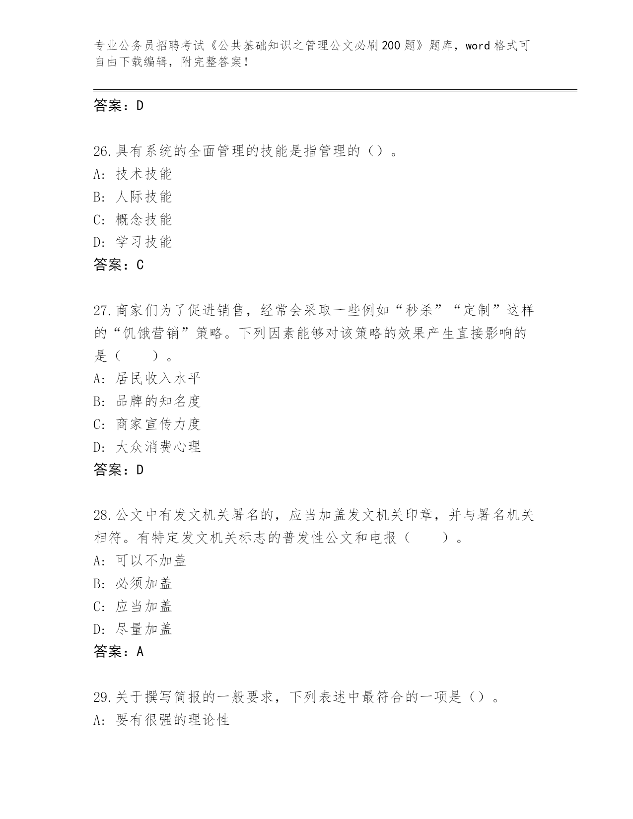 浙江省2024年公务员招聘考试《公共基础知识之管理公文必刷200题》王牌题库(夺分金卷)