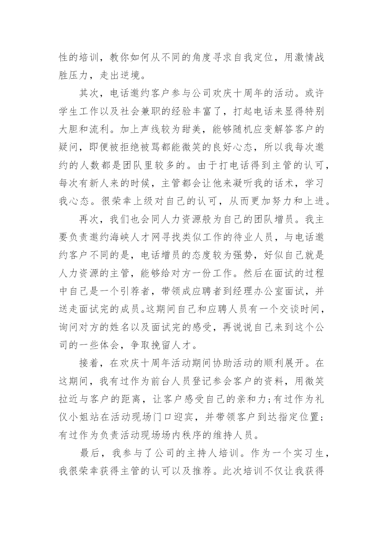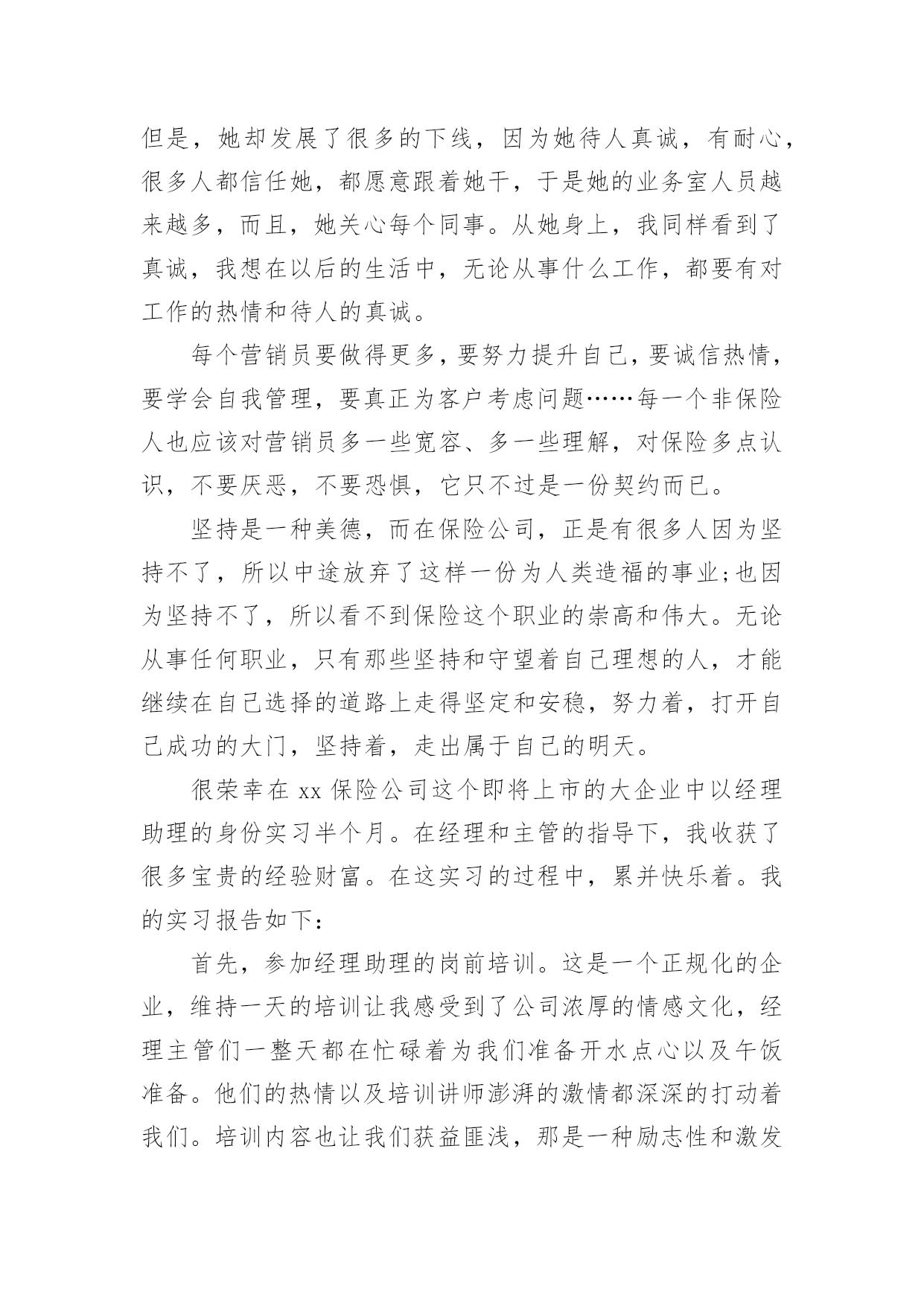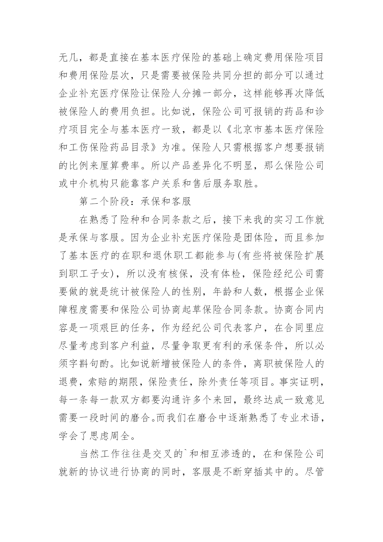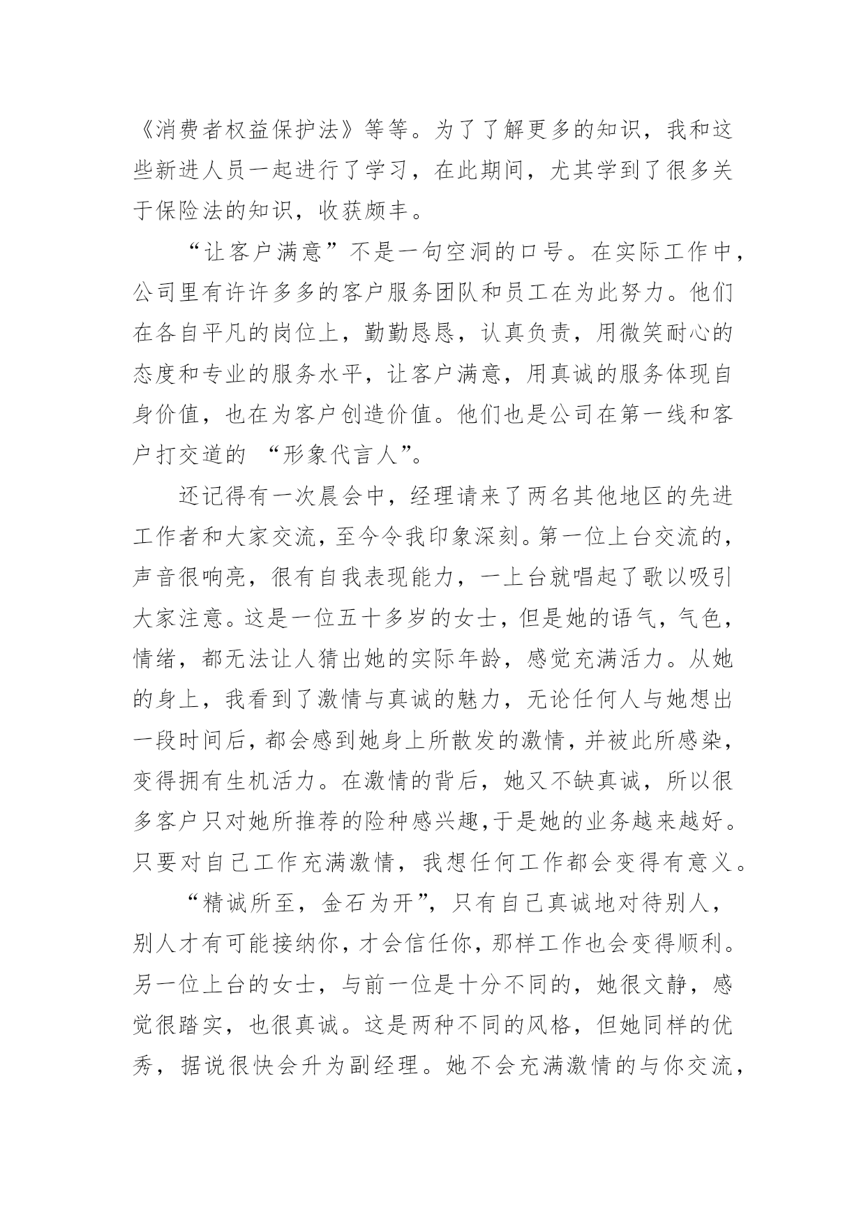 保险公司毕业实习报告关于保险公司毕业实习报告四篇在经济发展迅速的今天,报告十分的重要,不同的报告内容同样也是不同的。那么什么样的报告才是有效的呢?以下是小编收集整理的保险公司毕业实习报告4篇,希望能够帮助到大家。保险公司毕业实习报告篇1第一个阶段:熟悉公司运作,管理流程和合同条款天和是于20xx年成立的保险经纪机构,公司董事长和产寿险部总经理都是保险营销精英出身,目前在上海有一家分公司。产险方面以与中石化合作为基础不断拓展新业务,寿险以企业补充医疗保险为主逐步推广企业年金,客户有北京市卷烟厂等一些大型企业。公司规模不大,人事结构简单,内勤人员每个人既负责承保也负责客服,各自按客户划分工作范围和职责。秘书,出纳,人事由助理一肩挑。外勤人员负责业务联系,底薪加提成,激励机制简单易行。我选择天和实习,因为它小而员工分工不细,我可以在两个半月的时间里接触参与到每一个工作环节而不会因为是实习生受到排斥。承保,客服也好,外勤业务洽谈也好,都需要了解险种和合同条款。所以我首先是学习企业补充医疗保险的合同条款。通过一段时间的学习,我感觉各个公司的合同条款相差无几,都是直接在基本医疗保险的基础上确定费用保险项目和费用保险层次,只是需要被保险共同分担的部分可以通过企业补充医疗保险让保险人分摊一部分,这样能够再次降低被保险人的费用负担。比如说,保险公司可报销的药品和诊疗项目完全与基本医疗一致,都是以《北京市基本医疗保险和工伤保险药品目录》为准。保险人只需根据客户想要报销的比例来厘算费率。所以产品差异化不明显,那么保险公司或中介机构只能靠客户关系和售后服务取胜。第二个阶段:承保和客服在熟悉了险种和合同条款之后,接下来我的实习工作就是承保与客服。因为企业补充医疗保险是团体险,而且参加了基本医疗的在职和退休职工都能参与(有些将被保险扩展到职工子女),所以没有核保,没有体检,保险经纪公司需要做的就是统计被保险人的性别,年龄和人数,根据企业保障程度需要和保险公司协商起草保险合同条款。协商合同内容是一项艰巨的任务,作为经纪公司代表客户,在合同里应尽量考虑到客户利益,尽量争取更有利的承保条件,所以必须字斟句酌。比如说新增被保险人的条件,离职被保险人的退费,索赔的期限,保险责任,除外责任等项目。事实证明,每一条每一款双方都要沟通许多个来回,最终达成一致意见需要一段时间的磨合。而我们在磨合中逐渐熟悉了专业术语,学会了思虑周全。当然工作往往是交叉的`和相互渗透的,在和保险公司就新的协议进行协商的同时,客服是不断穿插其中的。尽管企业补充医疗保险费用报销即理赔是定期进行的,但由于理赔过程中会碰到许多争议和被保险人困惑的地方,所以经常需要中介机构与双方进行沟通。我的实习周记里就提到过一个典型的案例,被保险人和保险人双方就某一种药品是否属于报销范围意见不一致,而且双方都收集了相关资料来证明自己的意见是有理有据的。结果我们通过多方咨询和查找政策规定,最后才给了客户满意的答复。企业补充医疗保险的保险期限是一年(类同于财产保险),客户稍有不满意转而投向其他公司的这种现象是很正常的。这些事例让我明白,实际工作要求我们不仅熟悉合同条款这些看得见的东西,还必须随时了解与产品相关的政策与规定,比如说随时把握可报销药品目录的变动情况,基本医疗保险的相关政策调整情况以及医疗改革试点的相关规定等等。第三个阶段:电话约见,客户拜访逐渐熟悉了承保,客服的工作职责和范畴之后,我就开始企盼做一些更具有挑战性的工作——电话约见与客户拜访。表达了个人意向之后,齐总非常赞赏我的勇气和自我挑战精神,他鼓励我并且给了我一些建议。平素给学生上课一直停留在讲理论的层面上,真正自己去身体力行还是新媳妇坐轿——头一回。刚开始问题多多:打电话之前把许多情形都想到了,可是电话一拨通,忘词了,比头一次上讲台还紧张;电话通了,人家一听保险经纪公司,啪,挂掉了;找到人力资源处的人,也了解到客户正在办理企业补充医疗保险,别人说竞争企业太多,筛选都选不过来,等明年吧,不知道如何应对了。事后发现自己有几个方面做得不到位:一是对合同条款还是不熟悉,所以有点心虚,才会忘词;二是不懂得迂回曲折,保险两个字人家忌讳,咱可以尽量不提,只提客户感兴趣的医疗费用报销的事;三是企业竞争太多,选都选不过来,我们何不直接告诉它,漏掉了这个可能就错过了最好的。通过不断自我反省和齐总建议,现在基本能够实现突破重重阻碍获得人力资源处管理人员的联系方式,企业基本情况,有没有办理企业补充医疗保险,是否有意向等等一些基本信息。电话联络之后,成功地约见了许多此客户。拜访客户是一门大学问,最初我只能通过一次约见大概地给客户介绍企业补充医疗是什么,介绍我公司,交流的时间很短,给我感觉效果不理想。但是齐总建议我别气馁,团险单不是一蹴而就的,因为关系到全体员工的福利的政策是