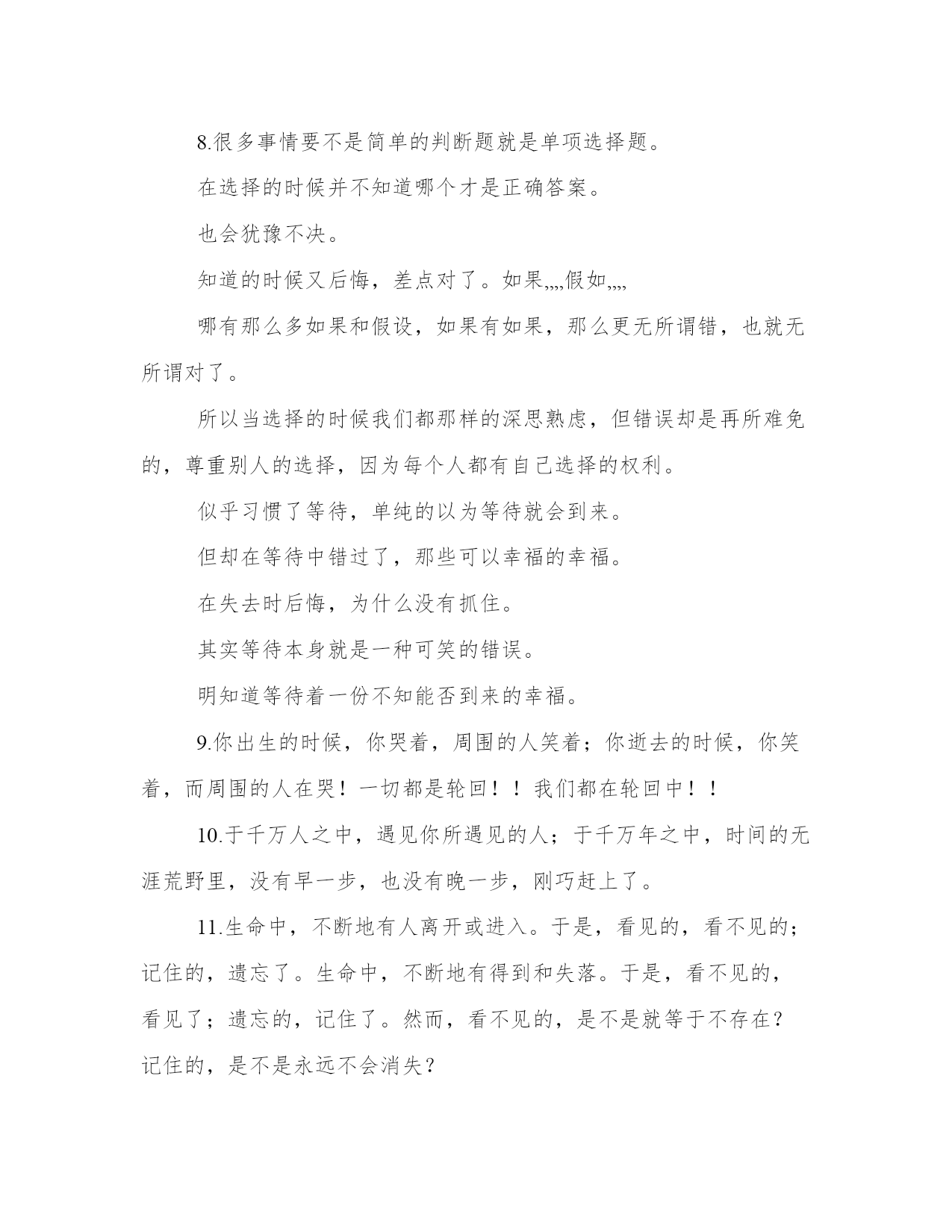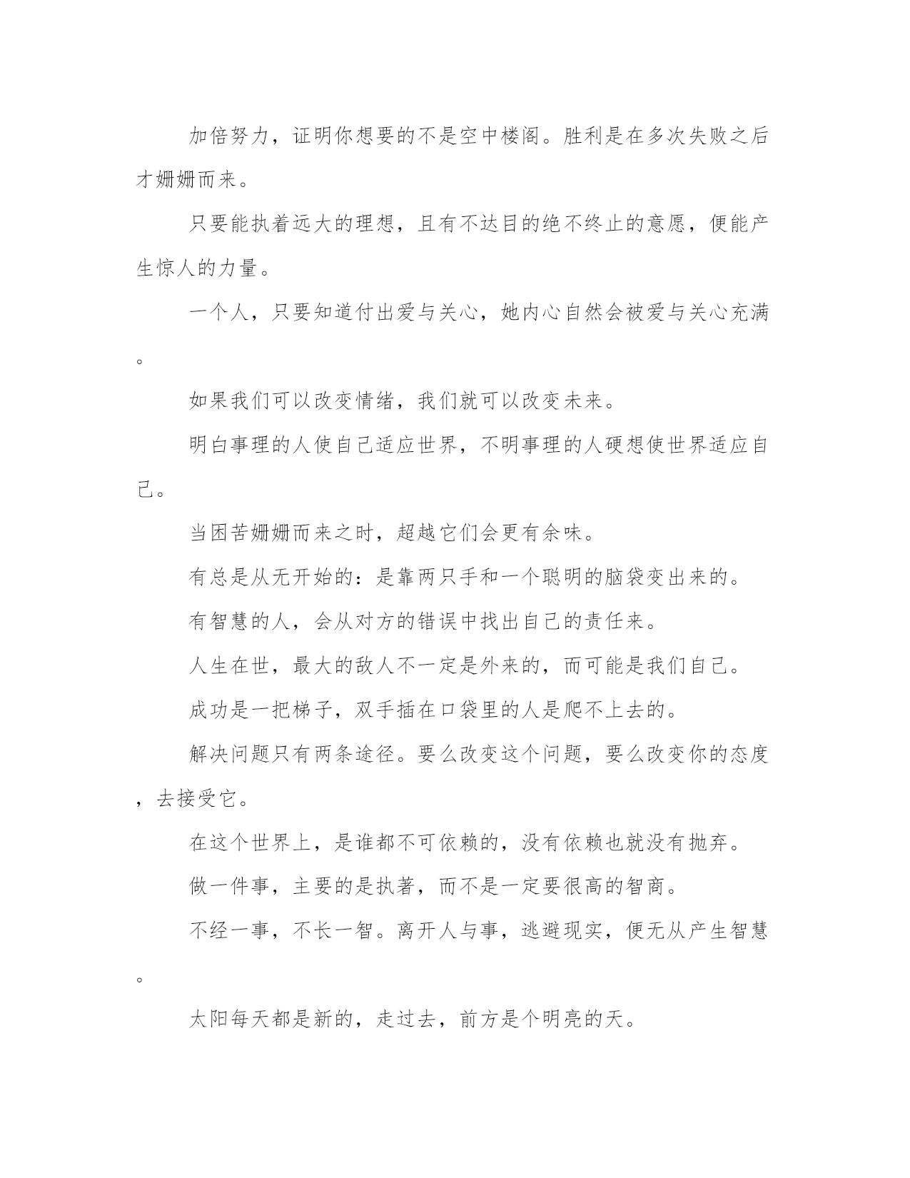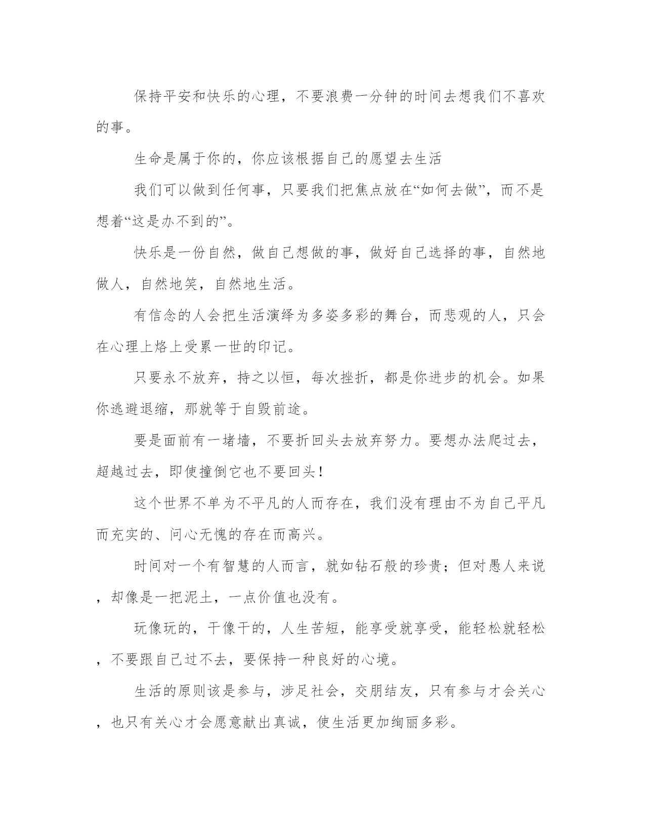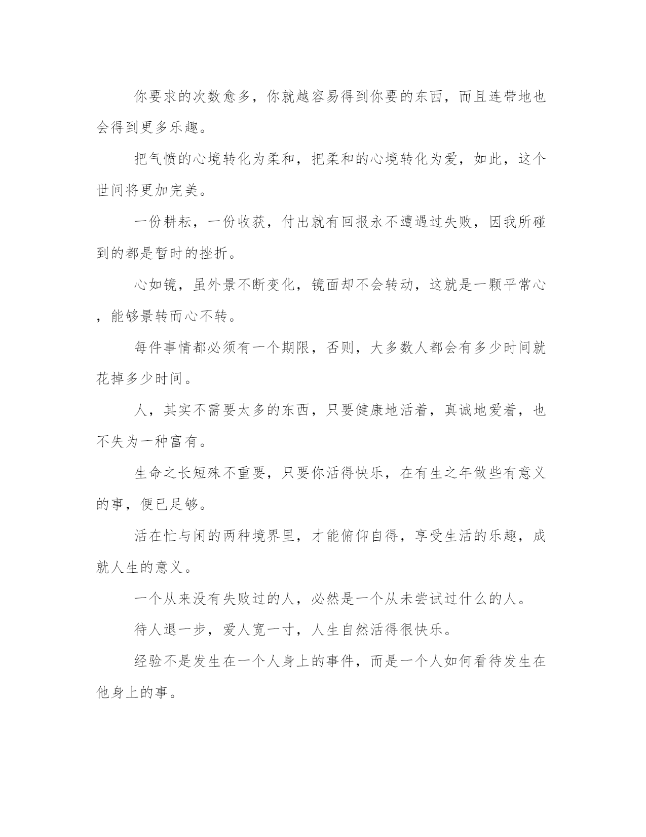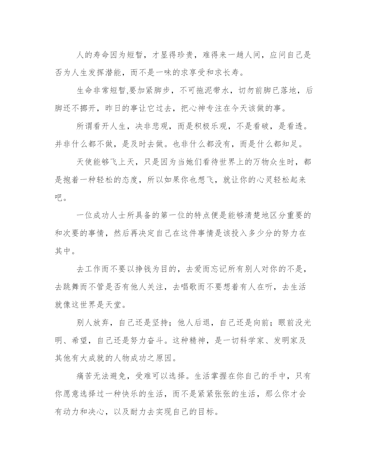 2024年用心做事的文案(三篇)在日常学习、工作或生活中,大家总少不了接触作文或者范文吧,通过文章可以把我们那些零零散散的思想,聚集在一块。那么我们该如何写一篇较为完美的范文呢?这里我整理了一些优秀的范文,希望对大家有所帮助,下面我们就来了解一下吧。用心做事的文案篇一所以!在面对生活和人生的时候,请不要忘记善待自己,善待生活。记得要用好的心态去面对自己身边的人和事,首先重要的依然是你对生活的态度,对人生的态度!改变人生命运除掉两个字“要是”,要想成功,不需要任何借口。当你感到孤独时,给你的父母、朋友、亲戚、同事、师长中任何一个人打个电话或者发条自己写的短信,告诉她你还记得并且很关心她。给别人一份温暖,自己得到的更多。智者一切求自己,愚者一切求他人。——卡莱友谊总需要用忠诚去播种,用热情去灌溉,用原则去培养,用谅解去护理。——马克思一个胜利者不会放弃,而一个放弃者永远不会胜利。信心、毅力、勇气三者具备,则天下没有做不成的事。如果你想得到,你就会得到,你所需要付出的只是行动。一个缺口的杯子,如果换一个角度看它,它仍然是圆的。对于每一个不利条件,都会存在与之相对应的有利条件。一个人的快乐,不是因为他拥有的多,而是他计较的少。世间成事,不求其绝对圆满,留一份不足,可得无限美好。记住:你是你生命的船长;走自己的路,何必在乎其它。你要做多大的事情,就该承受多大的压力。如果你相信自己,你可以做任何事。天空黑暗到一定程度,星辰就会熠熠生辉。时间顺流而下,生活逆水行舟。生活充满了选择,而生活的态度就是一切。人各有志,自己的路自己走。别人的话只能作为一种参考,是不能左右自己的。成功来自使我们成功的信念。相互了解是朋友,相互理解是知己。没有所谓失败,除非你不再尝试。有时可能别人不在乎你,但你不能不在乎自己。你必须成功,因为你不能失败。羡慕别人得到的,不如珍惜自己拥有的。喜欢一个人,就该让他(她)快乐。别把生活当作游戏,谁游戏人生,生活就惩罚谁,这不是劝诫,而是--规则!你要求的次数愈多,你就越容易得到你要的东西,而且连带地也会得到更多乐趣。把气愤的心境转化为柔和,把柔和的心境转化为爱,如此,这个世间将更加完美。一份耕耘,一份收获,付出就有回报永不遭遇过失败,因我所碰到的都是暂时的挫折。心如镜,虽外景不断变化,镜面却不会转动,这就是一颗平常心,能够景转而心不转。每件事情都必须有一个期限,否则,大多数人都会有多少时间就花掉多少时间。人,其实不需要太多的东西,只要健康地活着,真诚地爱着,也不失为一种富有。生命之长短殊不重要,只要你活得快乐,在有生之年做些有意义的事,便已足够。活在忙与闲的两种境界里,才能俯仰自得,享受生活的乐趣,成就人生的意义。一个从来没有失败过的人,必然是一个从未尝试过什么的人。待人退一步,爱人宽一寸,人生自然活得很快乐。经验不是发生在一个人身上的事件,而是一个人如何看待发生在他身上的事。加倍努力,证明你想要的不是空中楼阁。胜利是在多次失败之后才姗姗而来。只要能执着远大的理想,且有不达目的绝不终止的意愿,便能产生惊人的力量。一个人,只要知道付出爱与关心,她内心自然会被爱与关心充满。如果我们可以改变情绪,我们就可以改变未来。明白事理的人使自己适应世界,不明事理的人硬想使世界适应自己。当困苦姗姗而来之时,超越它们会更有余味。有总是从无开始的:是靠两只手和一个聪明的脑袋变出来的。有智慧的人,会从对方的错误中找出自己的责任来。人生在世,最大的敌人不一定是外来的,而可能是我们自己。成功是一把梯子,双手插在口袋里的人是爬不上去的。解决问题只有两条途径。要么改变这个问题,要么改变你的态度,去接受它。在这个世界上,是谁都不可依赖的,没有依赖也就没有抛弃。做一件事,主要的是执著,而不是一定要很高的智商。不经一事,不长一智。离开人与事,逃避现实,便无从产生智慧。太阳每天都是新的,走过去,前方是个明亮的天。面对灾难和不幸,如果你仍然活在世上,除了勇敢地挺过去,别无选择。弱者让情绪左右行为,强者让行为控制情绪。人生因有责任而踏实,若逃避责任,则这样的人生就是虚度。生活的10%在于你怎样看待它,而90%在于你怎样创造它。真正的圣人既强又柔,柔中带刚,刚中带柔;柔能调服众生,刚能坚强毅志。只要决心成功,失败就永远不会把你击垮。上帝馈赠予你的是“你是谁”,而你应回馈给上帝的是“我将是谁”。幸福不是毛毛雨,不会从天而降,自己努力吧!追随梦想,不论做什么事,相信你自己,别让别人的一句话将你击倒。成功的秘诀之一就是不让暂时的挫折击垮我们。实现梦想并非遥不可及的事,只要跨出第一步,就会离目标越来越近。生命的意义不在于马到成功,而在于不断求
