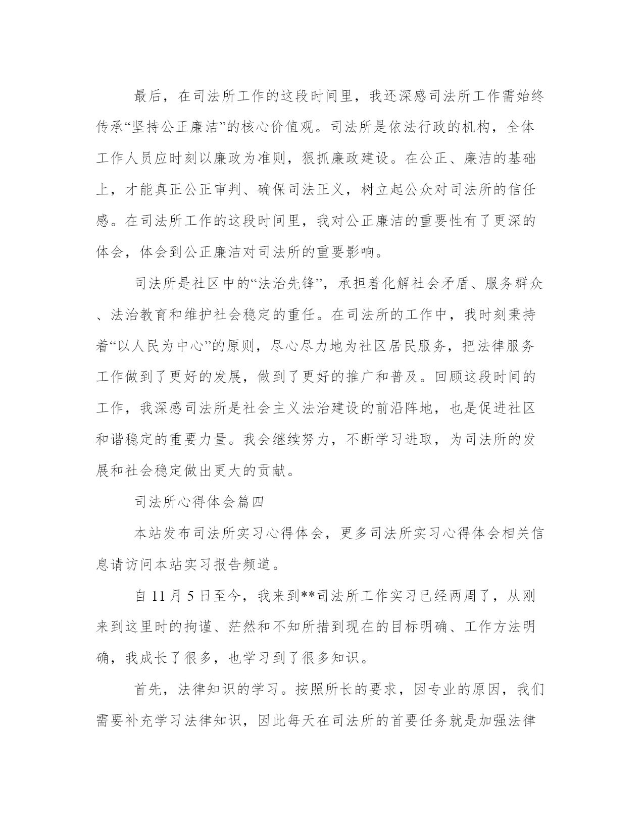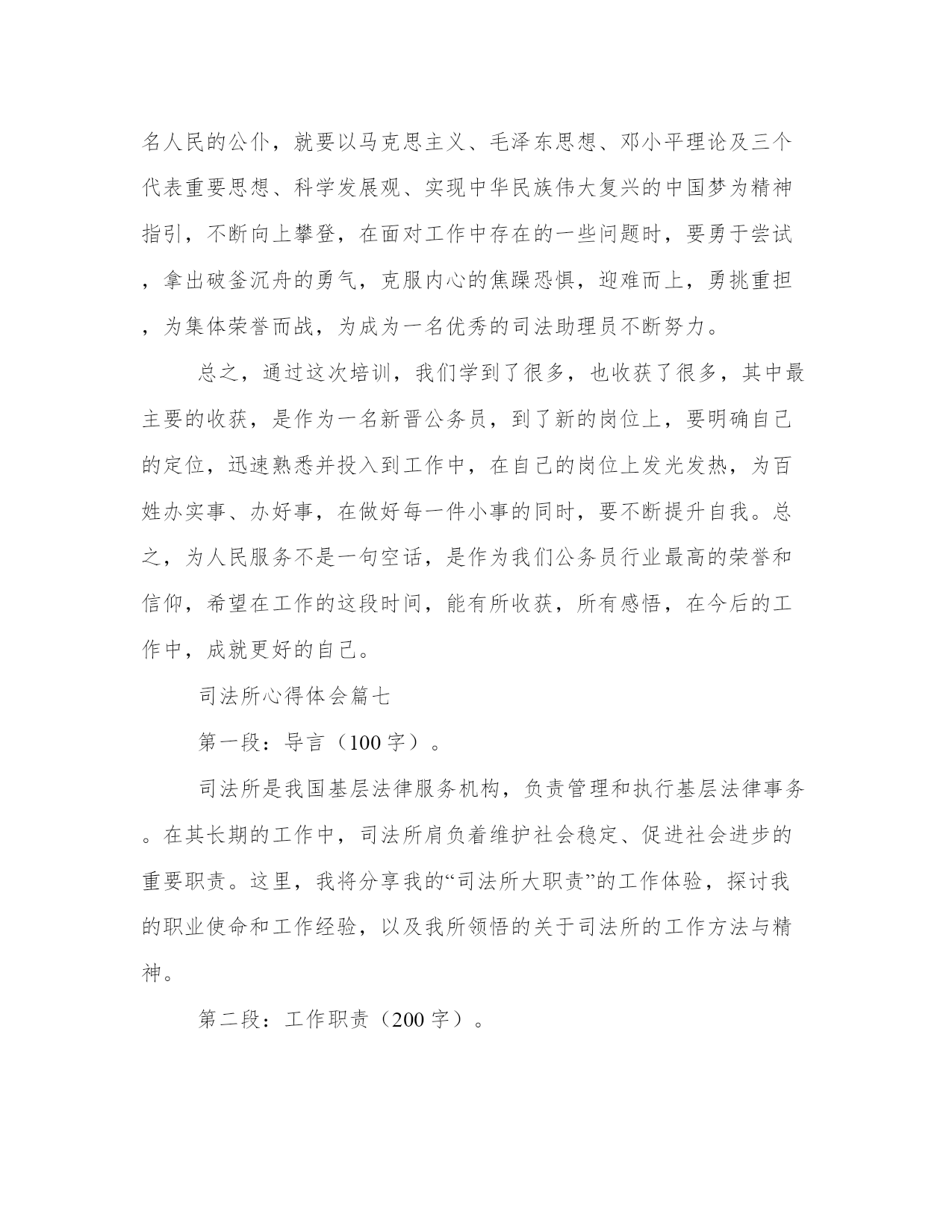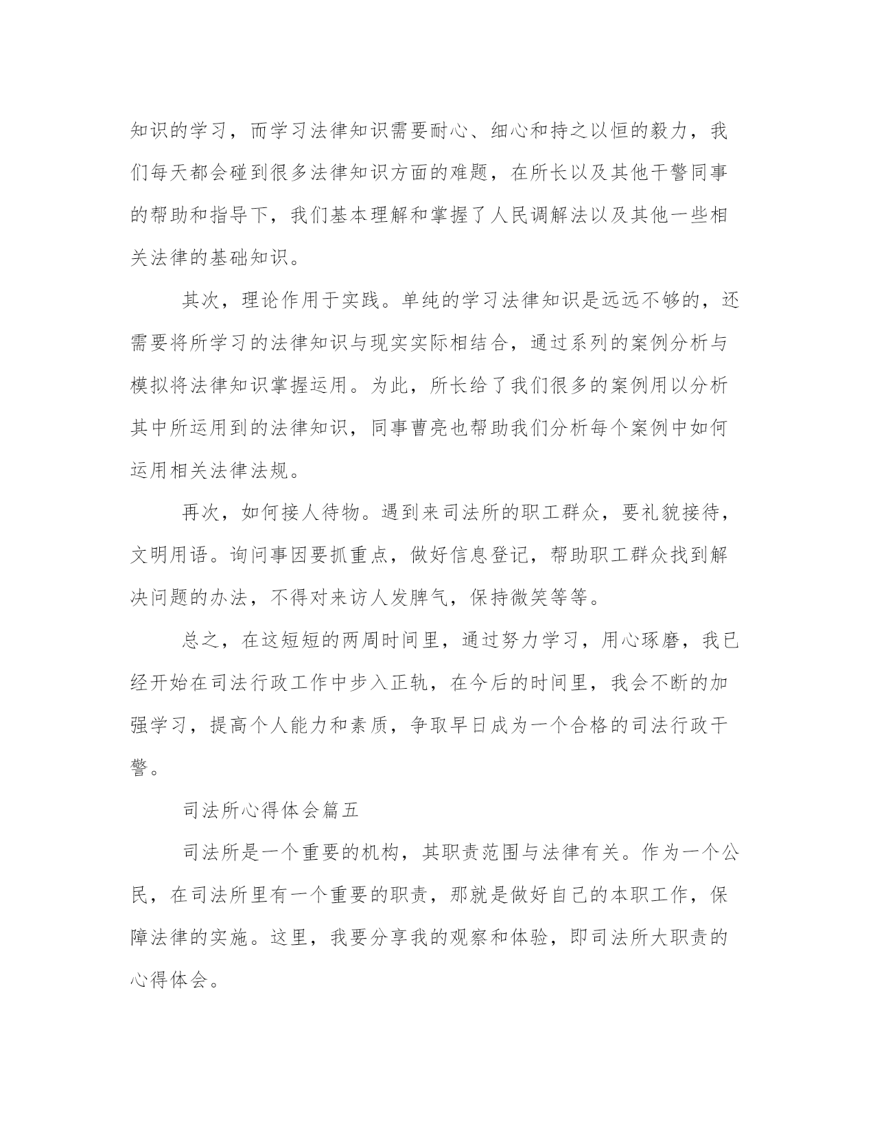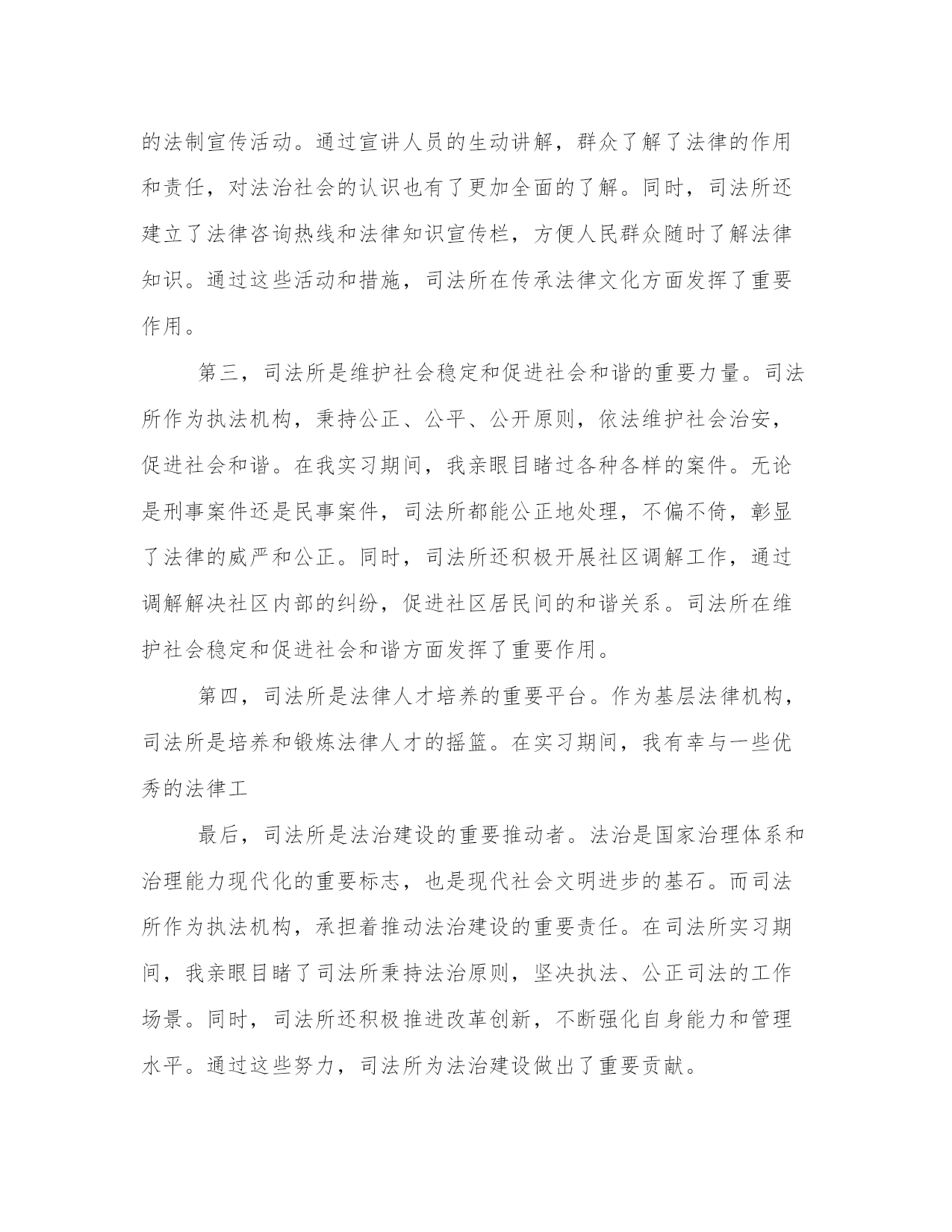 司法所心得体会(精选13篇)心得体会是对一段经历、学习或思考的总结和感悟。那么心得体会该怎么写?想必这让大家都很苦恼吧。下面小编给大家带来关于学习心得体会范文,希望会对大家的工作与学习有所帮助。司法所心得体会篇一司法所,是中国乃至全球法律体系中不可或缺的重要组成部分。不仅仅是一个执法机构,司法所承担着为人民群众提供法律援助、解决纠纷、维护社会稳定的重要职责。近期,我有幸在一所司法所进行实习,通过亲身经历,我深切感受到司法所的重要性,并从中获得了诸多心得体会。首先,司法所是人民群众的坚强后盾。作为基层法律服务机构,司法所承担着为人民群众提供法律援助的重要职责。在实习期间,我亲眼目睹了许多群众在司法所寻求帮助。有的是因为物权纠纷、婚姻矛盾等个人问题,有的是因涉及刑事案件等严重事件。无论大小事,司法所的工作人员总是耐心细致地解答他们的问题,帮助他们寻找解决之道。每当我看到群众因得到司法所的帮助而脸上露出满意的笑容,我深感司法所是人民群众坚实的法治后盾。其次,司法所是法律文化传承的重要场所。作为法律机构,司法所向人民群众普及法律知识,提高国民法制观念,具有重要的法律文化传承功能。在司法所实习期间,我们组织了一次以法律讲座为主题的法制宣传活动。通过宣讲人员的生动讲解,群众了解了法律的作用和责任,对法治社会的认识也有了更加全面的了解。同时,司法所还建立了法律咨询热线和法律知识宣传栏,方便人民群众随时了解法律知识。通过这些活动和措施,司法所在传承法律文化方面发挥了重要作用。第三,司法所是维护社会稳定和促进社会和谐的重要力量。司法所作为执法机构,秉持公正、公平、公开原则,依法维护社会治安,促进社会和谐。在我实习期间,我亲眼目睹过各种各样的案件。无论是刑事案件还是民事案件,司法所都能公正地处理,不偏不倚,彰显了法律的威严和公正。同时,司法所还积极开展社区调解工作,通过调解解决社区内部的纠纷,促进社区居民间的和谐关系。司法所在维护社会稳定和促进社会和谐方面发挥了重要作用。第四,司法所是法律人才培养的重要平台。作为基层法律机构,司法所是培养和锻炼法律人才的摇篮。在实习期间,我有幸与一些优秀的法律工最后,司法所是法治建设的重要推动者。法治是国家治理体系和治理能力现代化的重要标志,也是现代社会文明进步的基石。而司法所作为执法机构,承担着推动法治建设的重要责任。在司法所实习期间,我亲眼目睹了司法所秉持法治原则,坚决执法、公正司法的工作场景。同时,司法所还积极推进改革创新,不断强化自身能力和管理水平。通过这些努力,司法所为法治建设做出了重要贡献。司法所是法律体系中不可或缺的重要组成部分,它承担着保护人民权益、维护社会稳定、促进社会和谐的重要职责。通过实习经历,我深切感受到司法所的重要性,并从中获得了诸多心得体会。执法机构应当以法律为准绳,以公正为宗旨,为人民群众提供优质的法律服务。同时,法律工司法所心得体会篇二xx执法人员综合法律知识培训系列一行政执法,是指在实现国家公共行政管理职能的过程中,法定的国家行政机关和得到法律、法规授权的组织依照法定程序实施行政法律规范,以达到维护公共利益和服务社会的目的的行政行为。一般认为,行政执法行为既包括抽象的行政行为,也包括具体的行政行为。而这里所讲的行政执法,则主要指的是具体的行政行为。由此可见,对于行政执法的概念,我们必须把握它的四点基本内容:4.行政执法的目的,是为了实现国家的公共行政管理职能,从而维护公共利益和社会秩序,为社会和公众提供服务。司法所心得体会篇三司法所是社区中承担基层司法职能的重要机构,是为居民提供法律咨询、调解纠纷、管理矛盾纠纷破坏等服务的综合性法律服务机构。我在司法所工作近两年的时间里感受颇深,下面就我对司法所工作的心得体会进行阐述。首先,司法所是纾解社会矛盾的重要平台。社区是社会的基本单位,各类矛盾纠纷不可避免地会在这里发生。作为党和政府联系群众的重要桥梁,司法所及时、高效地处理社区矛盾纠纷是社会稳定的重要保障。在司法所工作期间,我亲身参与了多起矛盾纠纷的化解工作,通过充分听取当事人的诉求,耐心调解,及时出台解决方案,纠纷得到了圆满解决。司法所在社区中的发挥的调解作用得到了充分体现,为社会稳定做出了贡献。其次,司法所是服务群众的窗口。司法所工作人员以社区居民为中心,将人民群众的利益放在首位,为他们提供热情、细致、周到的法律服务。无论是法律法规的咨询、法律文书的起草,还是居民需要申请的各类证件,司法所工作人员都会耐心解答、协助办理。在司法所工作的这些年里,我深刻感受到,服务群众是我们的天职,只有将利益放在首位,才能真正做到为群众排忧解难。再次,司法所是法治教育的重要场所。社区居民法律意识的普及和提高是法治社会建设的基石。司法所根据社区居民的需求,组织开展各类