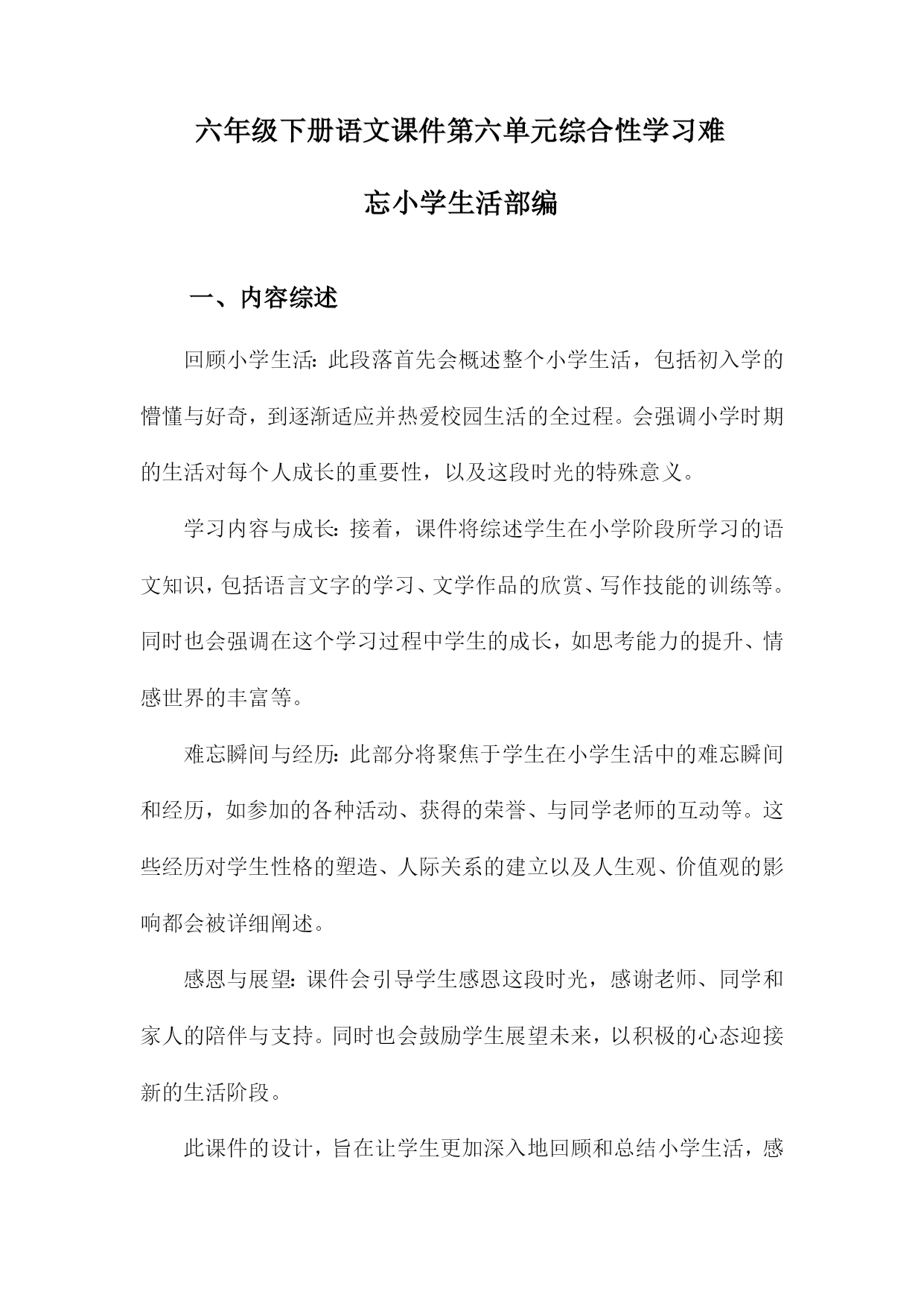 六年级下册语文课件第六单元综合性学习难忘小学生活部编.docx