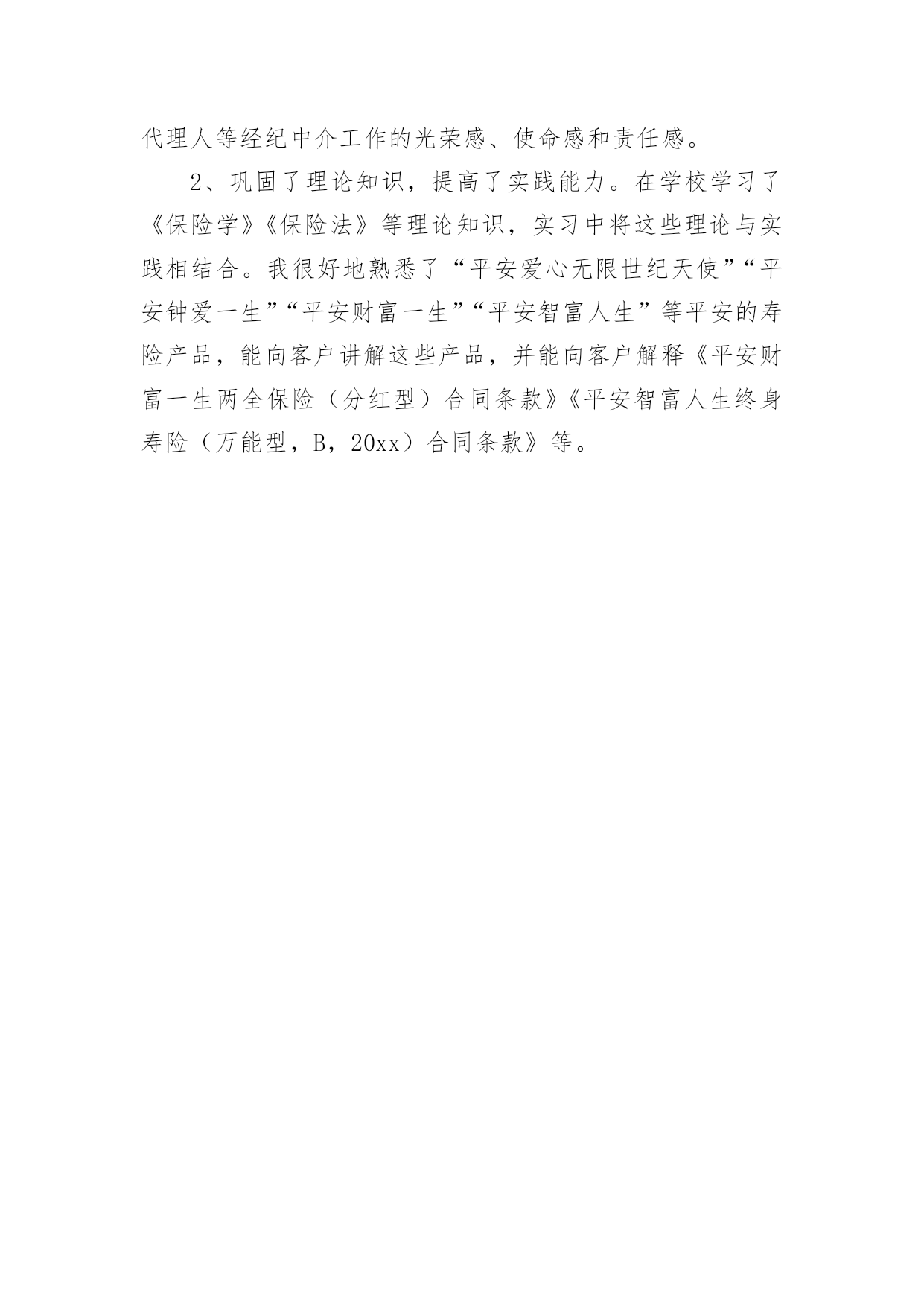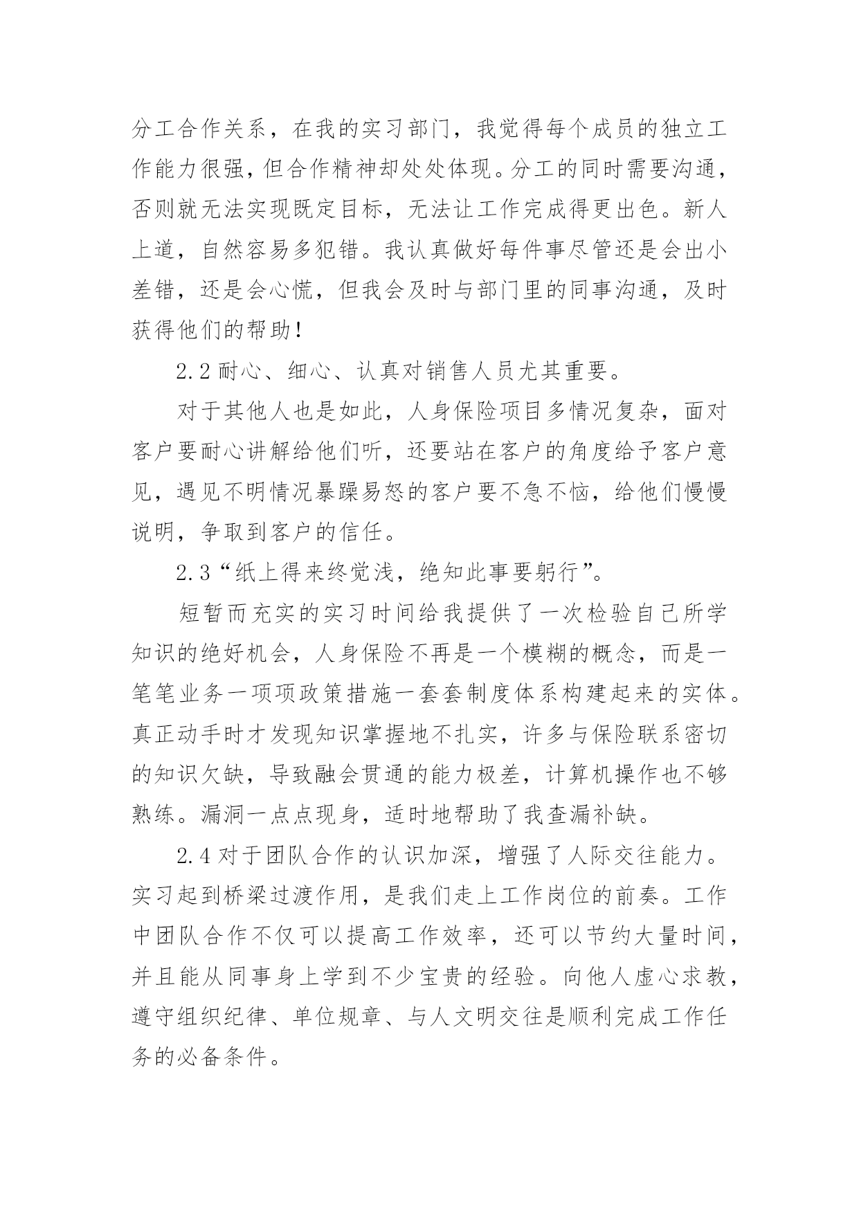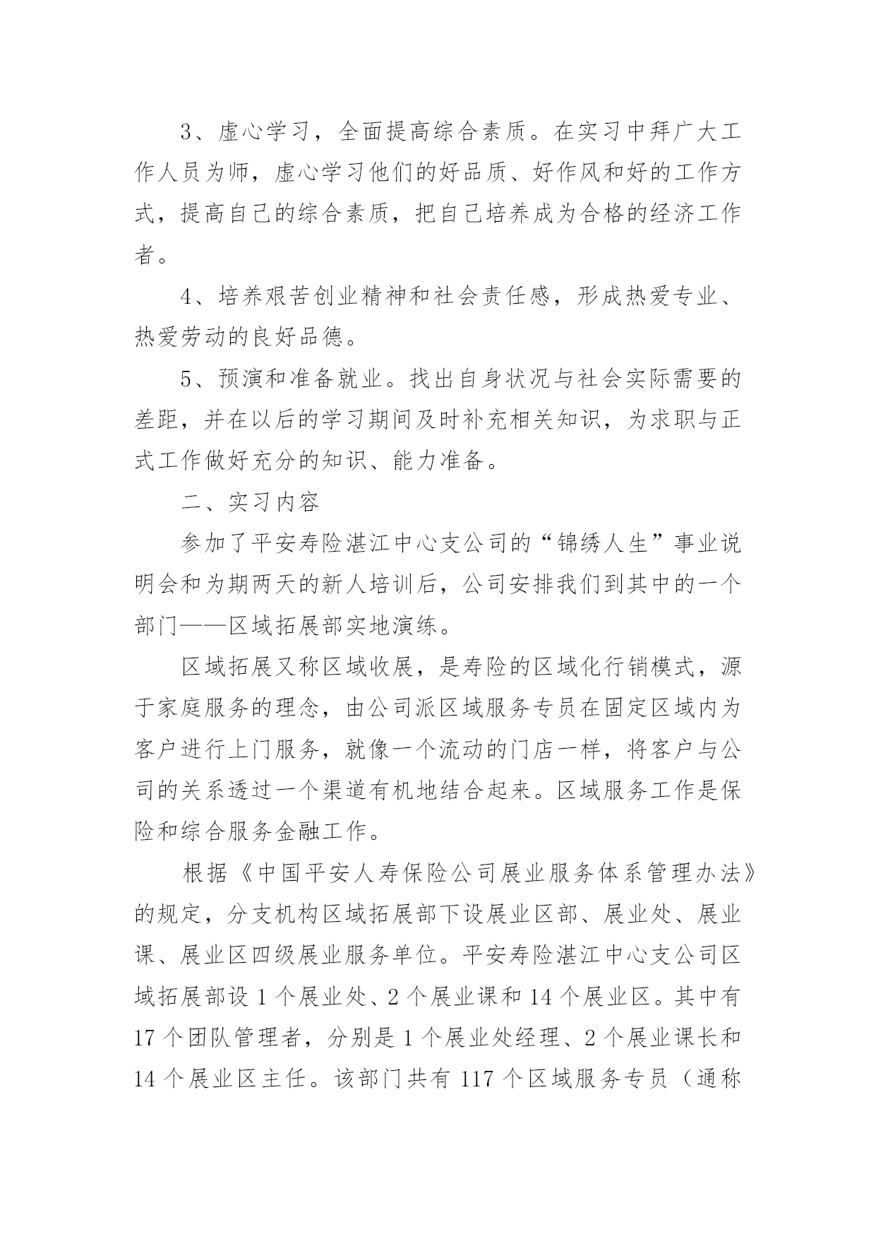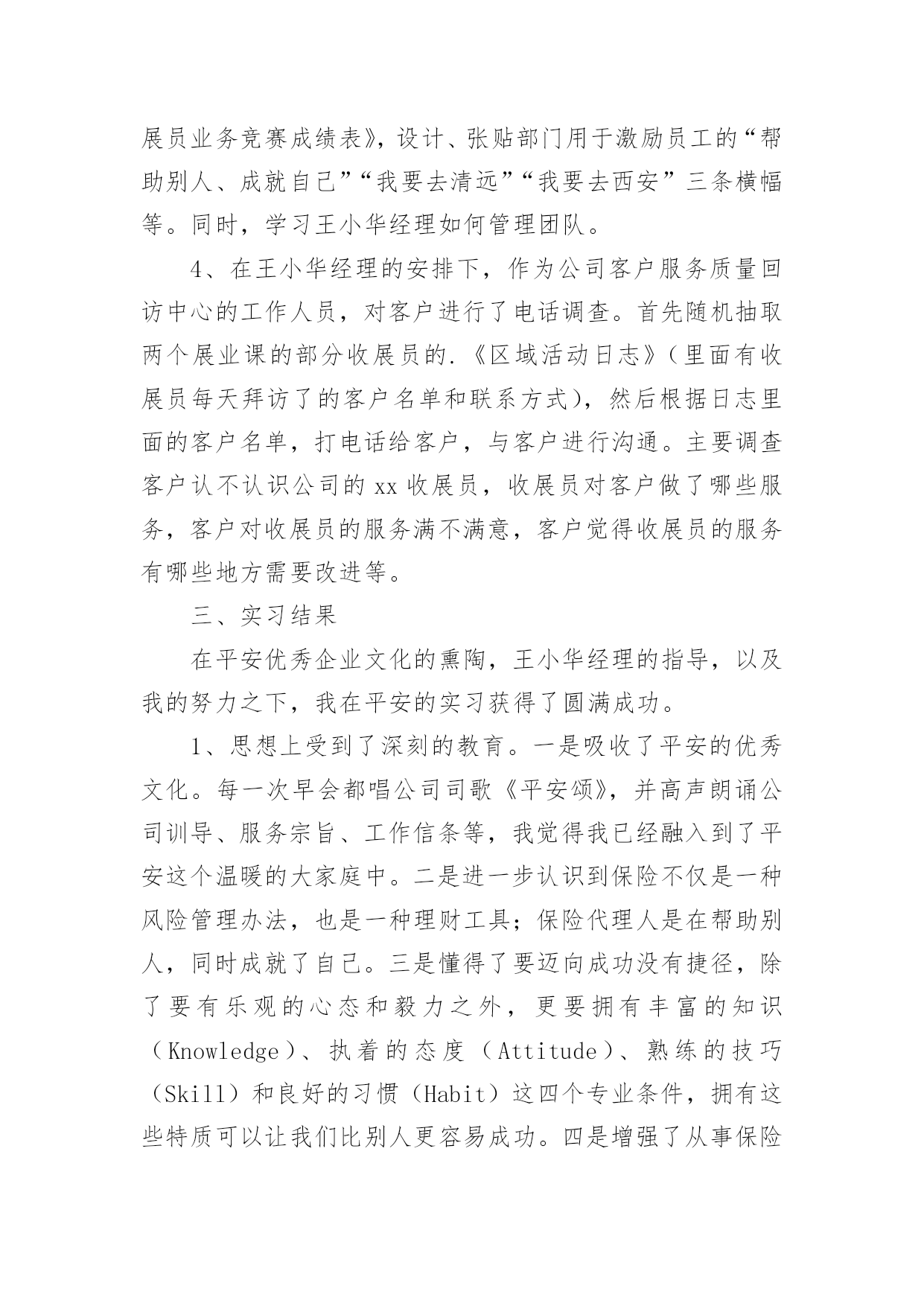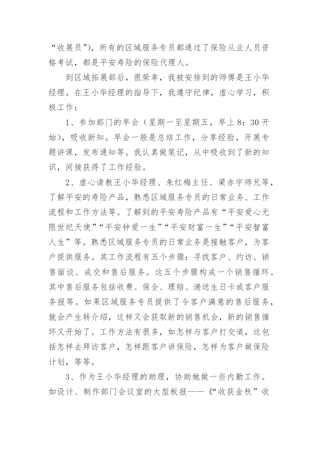 人寿保险实习报告人寿保险实习报告在经济飞速发展的今天,接触并使用报告的人越来越多,我们在写报告的时候要注意语言要准确、简洁。我敢肯定,大部分人都对写报告很是头疼的,下面是小编为大家收集的人寿保险实习报告,欢迎阅读,希望大家能够喜欢。人寿保险实习报告11、岗位描述我在中国平安陕西电销中心的岗位是保险电话销售员,进行人身保险的推销工作。学习公司的企业文化、销售技巧、团队协作精神、礼仪等各方面的知识。凭着对本公司产品的了解和与其它公司产品的对比,突出本公司产品的优点和公司的良好信誉,积极开拓客户源,向顾客推销产品,并尽量推销系列产品,完成公司分配的任务。1.1.1岗位职责人身保险是以人的生命或身体为保险对象的,保险人对被保险人的生命或身体因遭受事故、意外伤害、疾病、衰老等原因导致的死亡、残疾、丧失工作能力或者年老退休责任给付保险金的一种保险方式。因此,以经营人身保险为主的保险公司所提供的产品就具有无形性、同质性、广泛多样性和分散性等特性。而且人身保险所涉及的往往是人的老、死、疾、残等。在中国这样一个儒教的过度里人们大多忌讳谈论这些话题。所以即使人们有巨大的保险需求,也很少有人主动的去购买保险产品。这就需要我们的人身保险推销员来为客户介绍保险产品,引导客户发现需求,激发客户实现需求,推销公司的保险产品,提高公司的业绩,提升公司的形象。所以保险推销工作是保险公司的赖以生存的前提。在进公司做业务之前,我们首先要进行2周的培训工作,以确保我们能更好的适应这个工作,提高和客户的沟通能力,能够更有力的进行销售工作。挖掘客户的潜在需求并加以创造和满足。在培训中,我学习到了销售的主要方法,懂得了如何积极的去面对人生,调整自己的心态。2.1.1岗位知识人身保险的推销工作具有一些特点。第一,推销工作具有服务性。这种服务性表现为:首先是在顾客购买之前,推销人员应根据客户的需要,帮助其设计保险方案,选择适当的险种;其次在顾客购买之后,根据客户保险需求的变化和新险种的出现,帮助顾客调整保险方案,确保其财务稳定;再次当保险事故发生或期限届满时,主动帮助客户索赔或提供这方面的咨询服务。第二,保险工作需要丰富的知识。人身保险本身是一种合同,也是一种家庭经济计划。它不但牵涉到法律、税金、医学、金融投资、社会学方面的知识,还要考虑到客户家庭情况、收入状况及未来的经济计划和投资方向及客户的心理状态和消费习惯。第三,推销工作意义重大。人身保险是帮助他人追求幸福人生的保证。推销员在推销工作中处处为客户着想,提供给客户优质的保单,使客户在遭遇不幸时及时得到经济帮助,渡过难关,自然会受到人们的尊敬。第四,推销工作灵活自由。人身保险推销工作可以由保险员根据自己的情况选择工作时间、对象及地点,按照个人的计划自由调整安排。第五,推销工作还有独特的工作程序和工作要领。所以,任何一家人寿保险公司都相当重视保险推销人员的培训与开发。2、我的职责保险实习,除了收获到一段快乐充实,令人难忘的时光,还学到书本以外的知识,赢得开启通往社会之路大门秘籍这次实习把我们从学校纯理论学习中拉到了在实践中学习的环境。一进入岗位,我们意识到,该把学生时代的野性收敛了。没有规矩无以成方圆,虽然公司没有老套的束缚,它有不可违反的`规定,我们就应该严于律己,这样不仅可以遵守公司的规矩,对我们自己更有好处。与公司员工的相处中,我们也学到了待人、处事的态度、方式,有很多值得我们学习的地方。这次是我们用金钱买不到的机会,无论从工作、学习、做人上,我们都有很大的收获。2.1学会了沟通。在保险公司,部门与部门之间,个人和个人之间应该是分工合作关系,在我的实习部门,我觉得每个成员的独立工作能力很强,但合作精神却处处体现。分工的同时需要沟通,否则就无法实现既定目标,无法让工作完成得更出色。新人上道,自然容易多犯错。我认真做好每件事尽管还是会出小差错,还是会心慌,但我会及时与部门里的同事沟通,及时获得他们的帮助!2.2耐心、细心、认真对销售人员尤其重要。对于其他人也是如此,人身保险项目多情况复杂,面对客户要耐心讲解给他们听,还要站在客户的角度给予客户意见,遇见不明情况暴躁易怒的客户要不急不恼,给他们慢慢说明,争取到客户的信任。2.3“纸上得来终觉浅,绝知此事要躬行”。短暂而充实的实习时间给我提供了一次检验自己所学知识的绝好机会,人身保险不再是一个模糊的概念,而是一笔笔业务一项项政策措施一套套制度体系构建起来的实体。真正动手时才发现知识掌握地不扎实,许多与保险联系密切的知识欠缺,导致融会贯通的能力极差,计算机操作也不够熟练。漏洞一点点现身,适时地帮助了我查漏补缺。2.4对于团队合作的认识加深,增强了人际交往能力。实习起到桥梁过渡作用,是我们走上工作岗位的前奏。工作中团队合作不仅可以提高工作效率,还可以节约大量时间,并且能从同事身