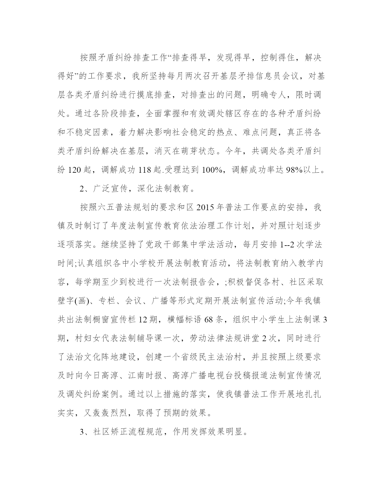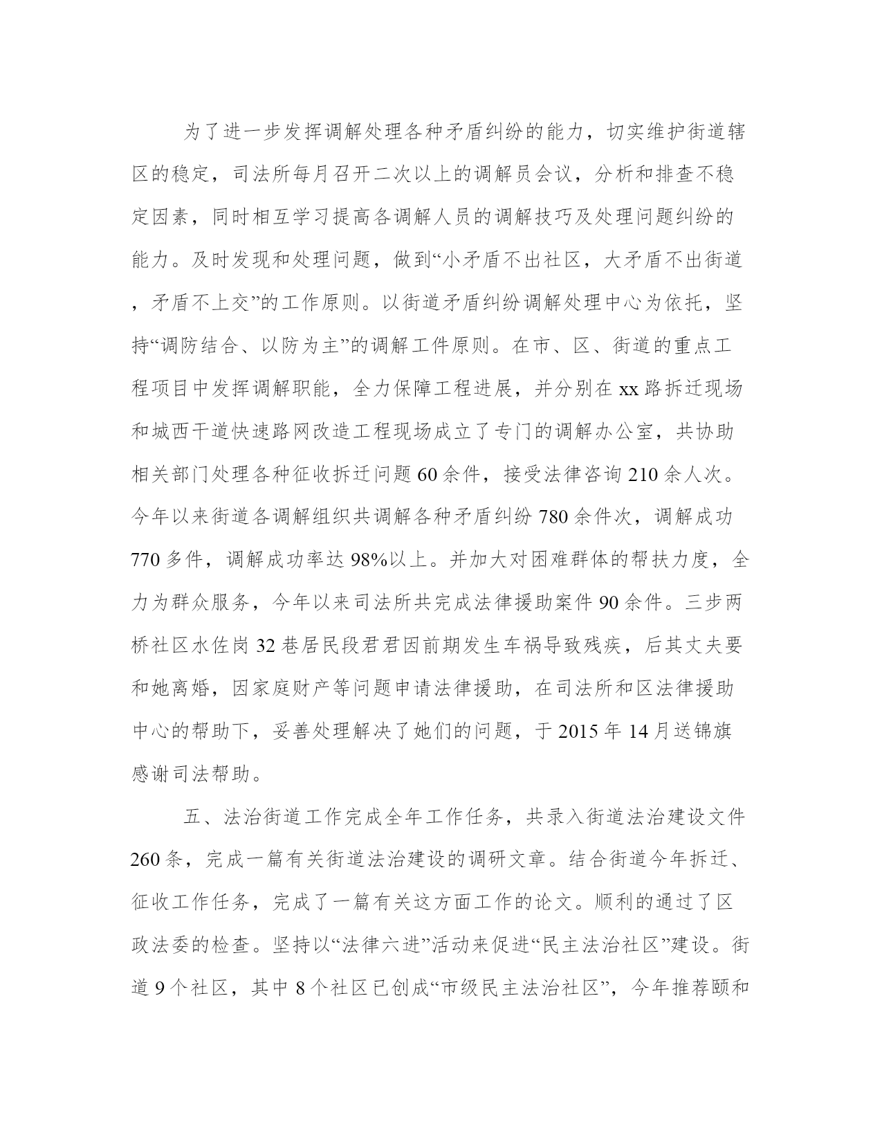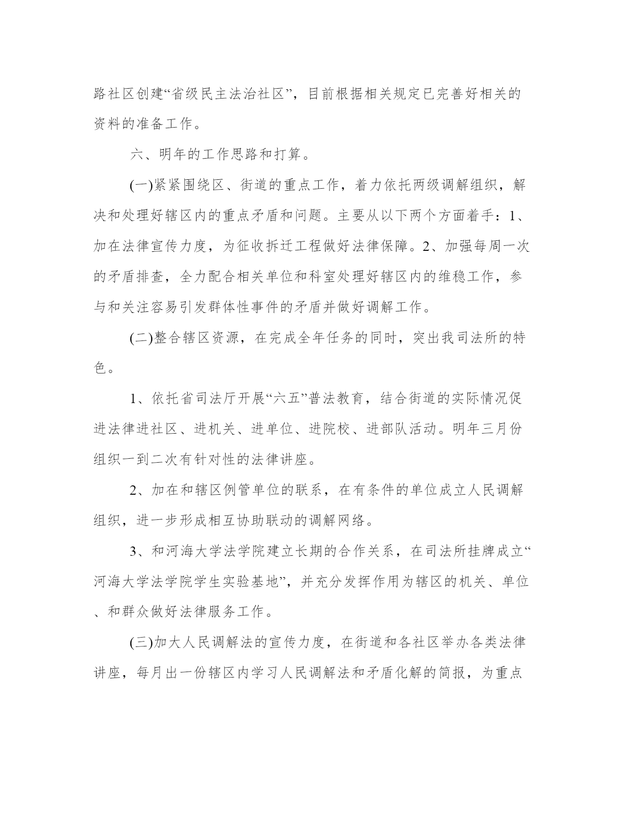2023年司法所工作总结(优质12篇)总结是对过去一定时期的工作、学习或思想情况进行回顾、分析,并做出客观评价的书面材料,它有助于我们寻找工作和事物发展的规律,从而掌握并运用这些规律,是时候写一份总结了。怎样写总结才更能起到其作用呢?总结应该怎么写呢?下面是小编带来的优秀总结范文,希望大家能够喜欢!司法所工作总结篇一3月7日市司法局召开全市司法行政工作暨提高群众满意度动员大会后,我镇高度重视,按照上级有关精神,分工负责,合理部署,精心组织人员尽全力开展进村入户走访和电话模拟调查活动,切实做好我镇第一季度测评工作。成立了由分管领导为组长,全体综治办、司法所工作人员为成员的领导小组,召开了全镇22个村(居)委会的书记主任会议,全面铺开进村入户走访活动。联合法庭、派出所在开展了一次法制宣传活动,并要求各村委会张贴一条宣传标语,提高全镇知晓率,提高工作透明度。由各农村工作片片长带队分五个工作组,综治办、司法所、派出所、法庭工作人员为指导员,下派到村组进行进村入户走访,发放宣传单、宣传袋、联系卡、问卷调查表等5000余份。针对我镇3000余部固定电话,全体综治办、司法所工作人员轮流排班,分时段、分区域对电话用户进行模拟采访调查活动。对于调查反馈回来的问题,进行分析分析,归纳总结,最后提出整改方案。通过近一个月来的努力工作,我镇的群众满意度测评工作取得了明显效果,群众满意度有所提高。司法所工作总结篇二xx镇今年上半年以来,在镇党委、政府的领导下,在上级业务部门的指导下,认真学习贯彻党的“十六”大和十六届四中全会精神,按照上级的综合治理工作会议安排部署,解放思想,干事创业,加快发展,认真落实维护稳定责任制,矛盾纠纷排查机制,加强基层组织建设,维护我镇稳定,着力打造“平安泊头”。回顾全年来的工作,特总结如下。1、司法所、法律服务所工作人员共3人,其中大专1人,并专人专职。司法所各项规章制度健全,制订了司法所的职责及规章制度;2、司法调解中心成员15人,其中大专15人。今年上半年以来,调解纠纷4起,调处率达100%。处结率成功率达98%,减少了矛盾纠纷和集体上访、越级上访等事件发生。3、安置帮教工作。xx年和xx年刑满释放人员9人,我们对他们进行摸底排查,规范档案。1、我所制订了xx镇二oxx年普法工作计划,并以党委文件发至各村、各单位,对全镇全年普法依法治理工作起到了指导作用,并组织开展了形式多样的普法宣传活动,印发普法宣传资料300余份,充分利用在校学生带回家庭,带给邻居的形式,发至各户,教育面达80%,制作普法宣传版面150余块;利用通俗、顺口的语言向群众宣传各种法律。2、“民主法治示范村”创建活动。据县民政局、县司法局联合下发的棣司发[xx]1号文件精神,制定了泊发[xx]22号文件“关于xx镇开展‘民主法治示范村’创建活动的实施方案”和泊发[xx]21号文件“关于成立xx镇‘民主法治示范村’创建活动领导小组的通知”。本着九个标准,对全镇52个村一一核查,凡基本符合标准的,向领导汇报后,民政所、司法所联合一一自查,本着缺什么补什么的原则,觉得符合标准的,写成汇报材料,上报司法局。1、“6427148”法律服务专线工作在不断完善办公设施和提高值班人员素质的基础上,开展了各项业务工作。一年来,共接到咨询电话52个,当场解答52个。“6427148”受到了群众的欢迎,大大避免和减少了集体上访和越级上访事件的发生。2、基层调委会工作。我镇共有52各行政村,村村建立了调委会组织,并办理了调解员证,并达到“四落实”,坚持纠纷排查制度,对派查出来的矛盾和问题建立了台帐,并限期在一个月内解决。上半年共调处民间纠纷32起,调处率达100%,处结率达98%以上。3、发挥公正工作在经济建设忠的“服务、沟通、公正、监督”的作用。我所上半年共办理公证业务8件。在上半年的工作中,还存在着许多的不足,我们将严格按上级要求干好一切工作,不断树立好自己的形象。司法所工作总结篇三2015年,xx路司法所在区司法局、及街道党工委、办事处的正确领导下,在科学发展观的指引下,坚持以人为本,认真实践依法治国的方略,开展人民调解、法律宣传、社区矫正、安置帮教工作,各项工作稳步推进。具体如下:一、加强人员管理进行合理分工。由于工作人员的调整xx路司法所对司法所工作人员进行了重新分工,责任落实到人,重新组建了xx路街道人民调解委员会。并对9个社区调解委员会调解人员重新确定,在辖区内7家企事业单位成立了人民矛盾处理调解中心,完成了全年的目标任务。分别成立了矫正帮教、法律宣传、法治街道工作领导小组。在街道形成了上下联动、点面结合的司法体制。二、加强社区矫正、帮教工作减少重新犯罪。按照相关的法律和规章制度,司法所加强了对矫正对象的管理,对每个矫