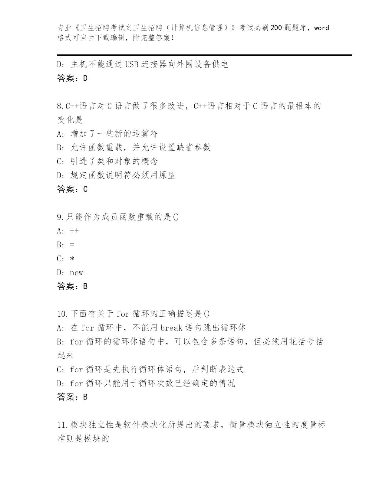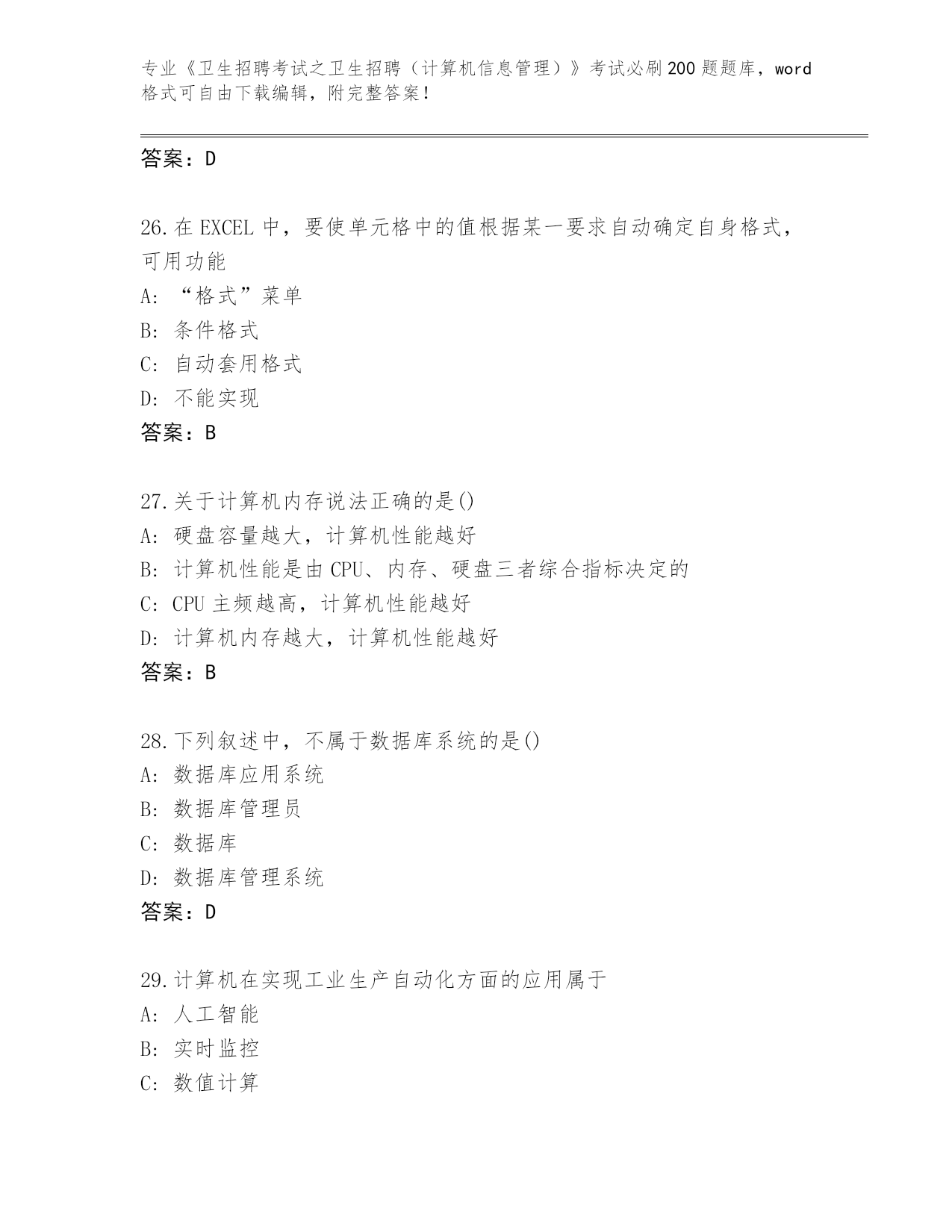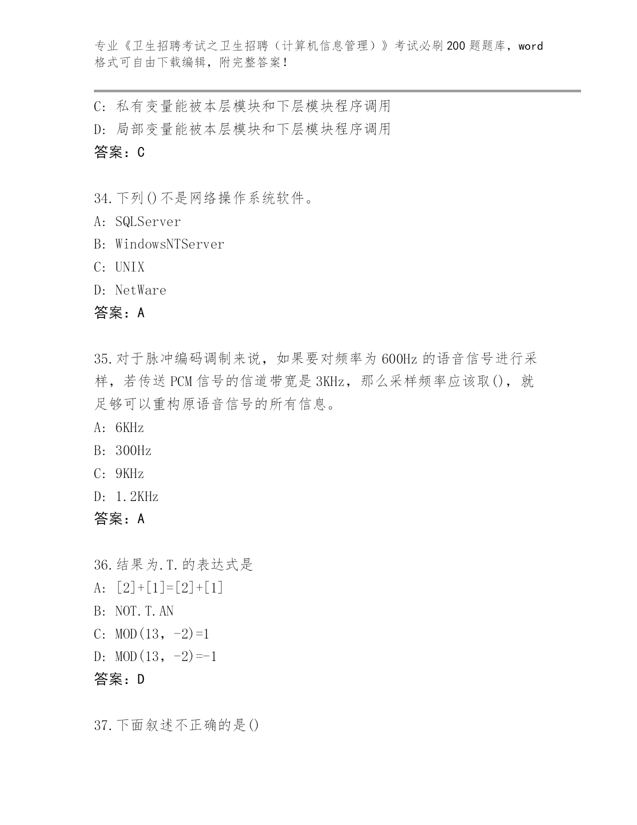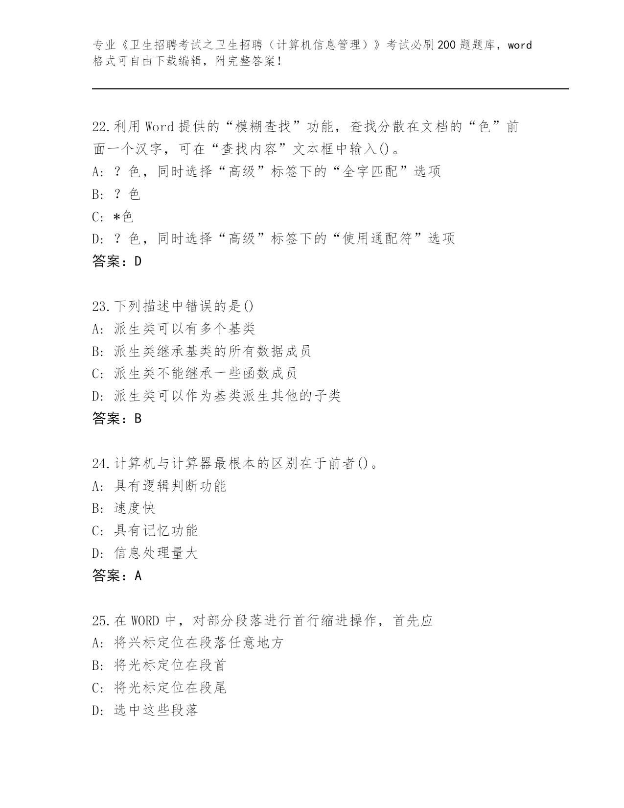 山东省2024《卫生招聘考试之卫生招聘(计算机信息管理)》考试必刷200题真题及答案(最新)