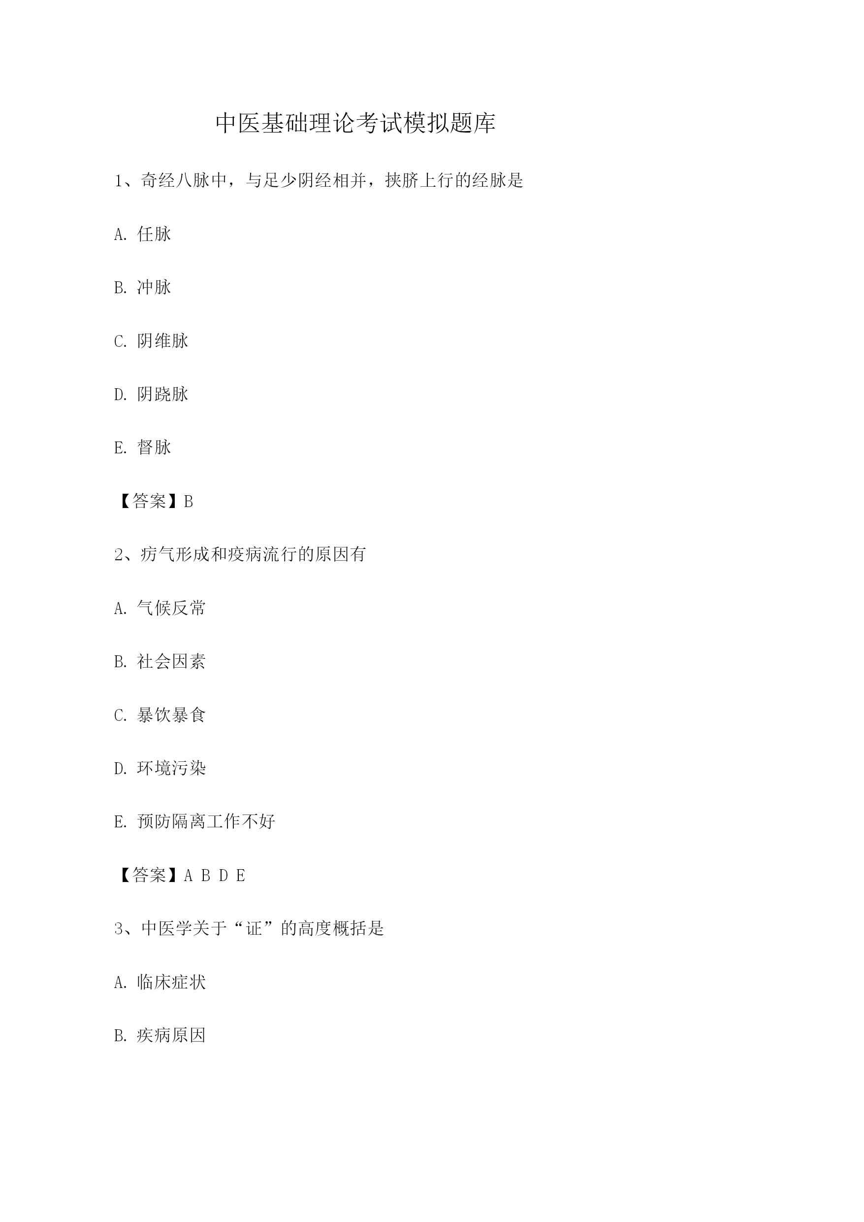 【选择题】中医基础理论考试模拟试卷(2).docx