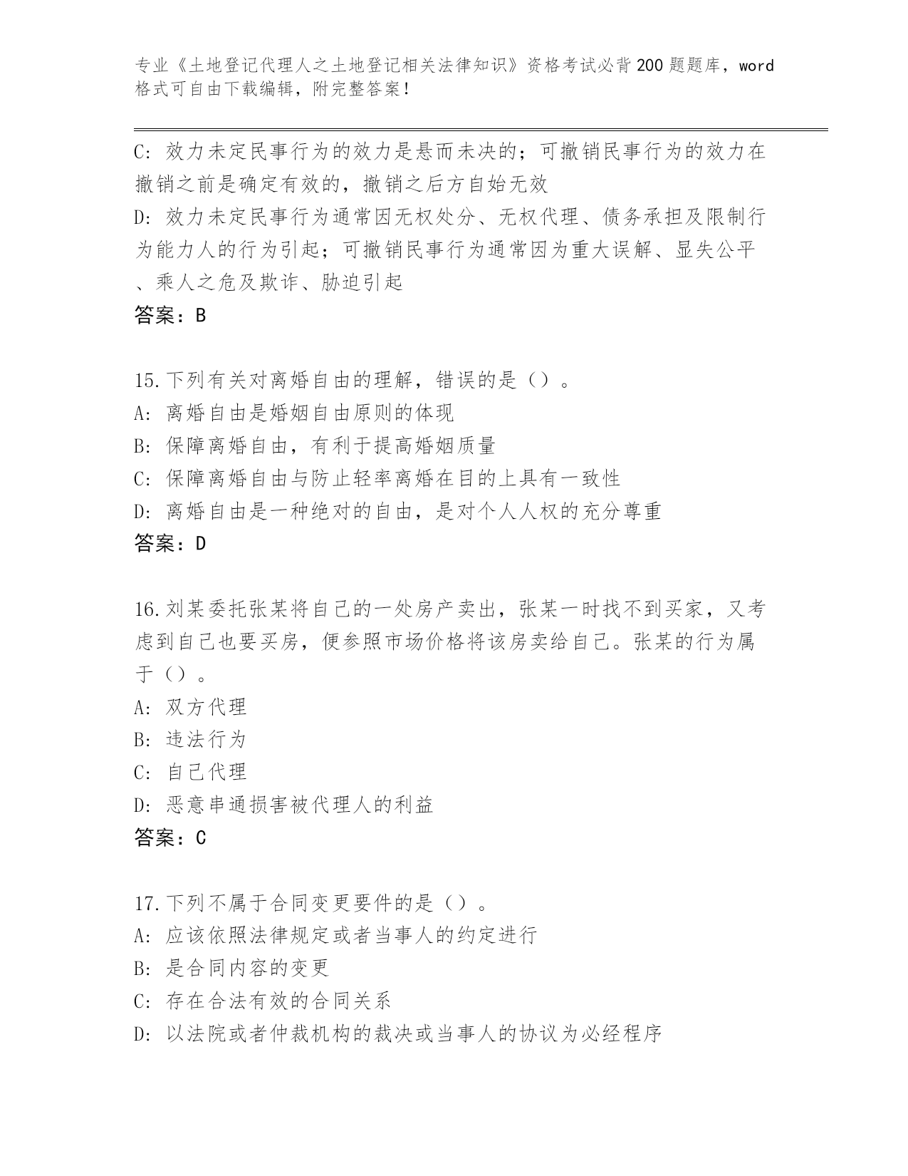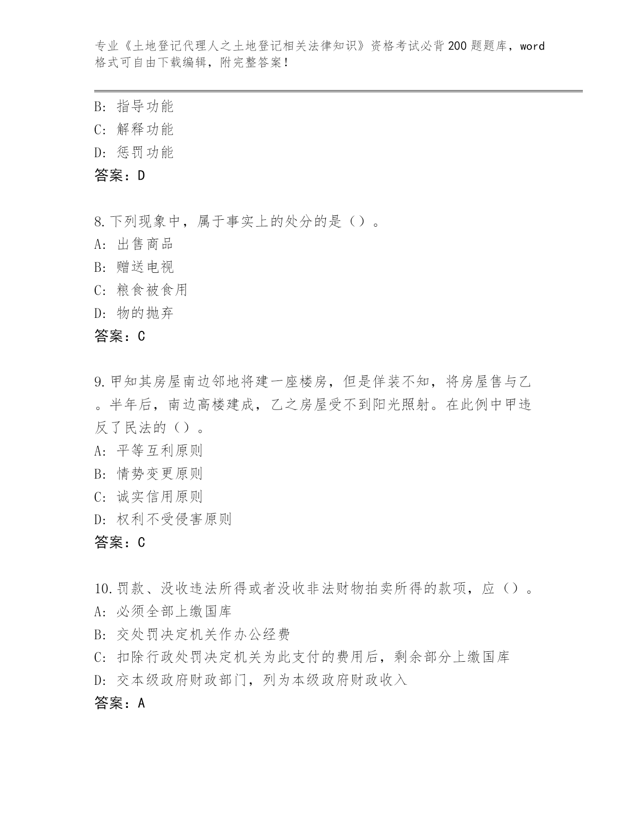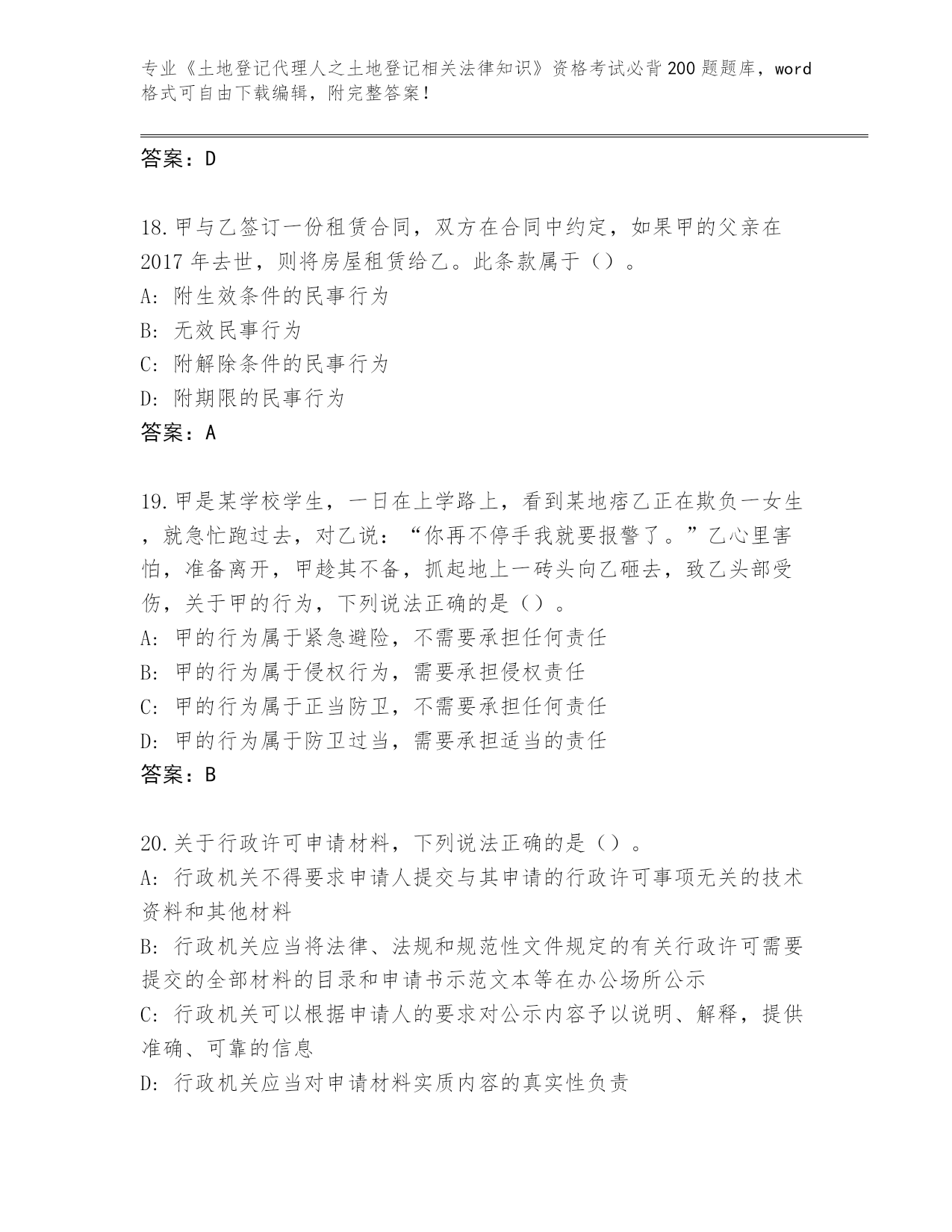 陕西省商州区2024年《土地登记代理人之土地登记相关法律知识》考试必背200题题库及答案(真题汇编)