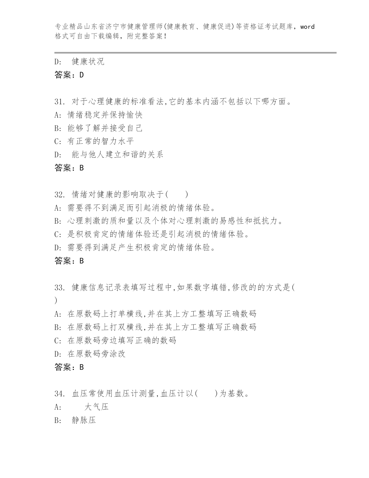 精编山东省济宁市健康管理师(健康教育、健康促进)等资格证考试大全(达标题).docx