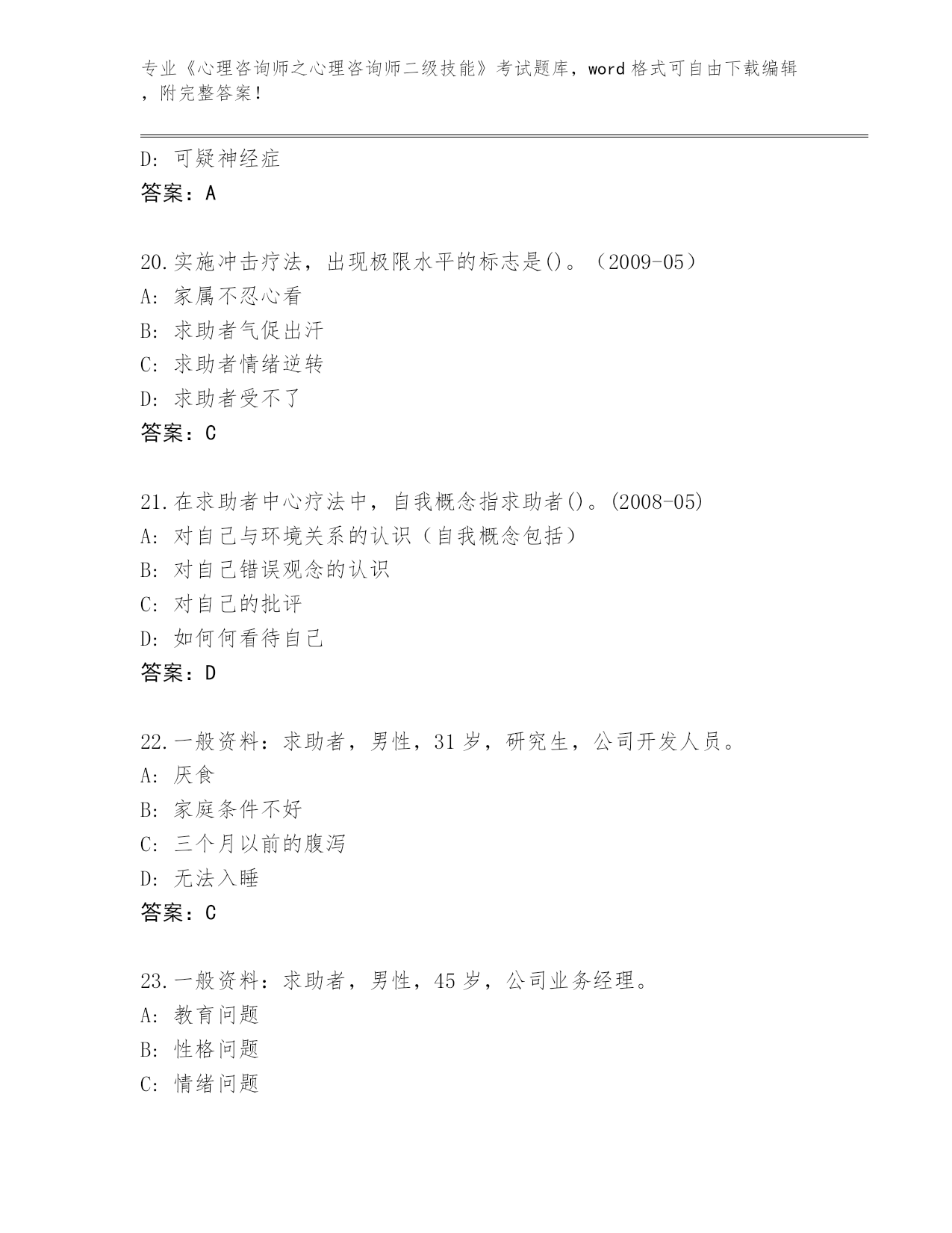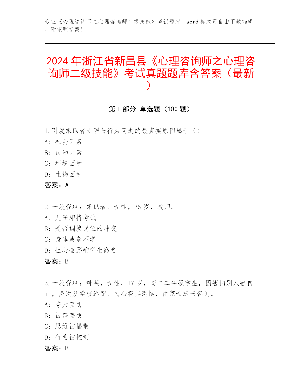 2024年浙江省新昌县《心理咨询师之心理咨询师二级技能》考试真题题库含答案(最新)