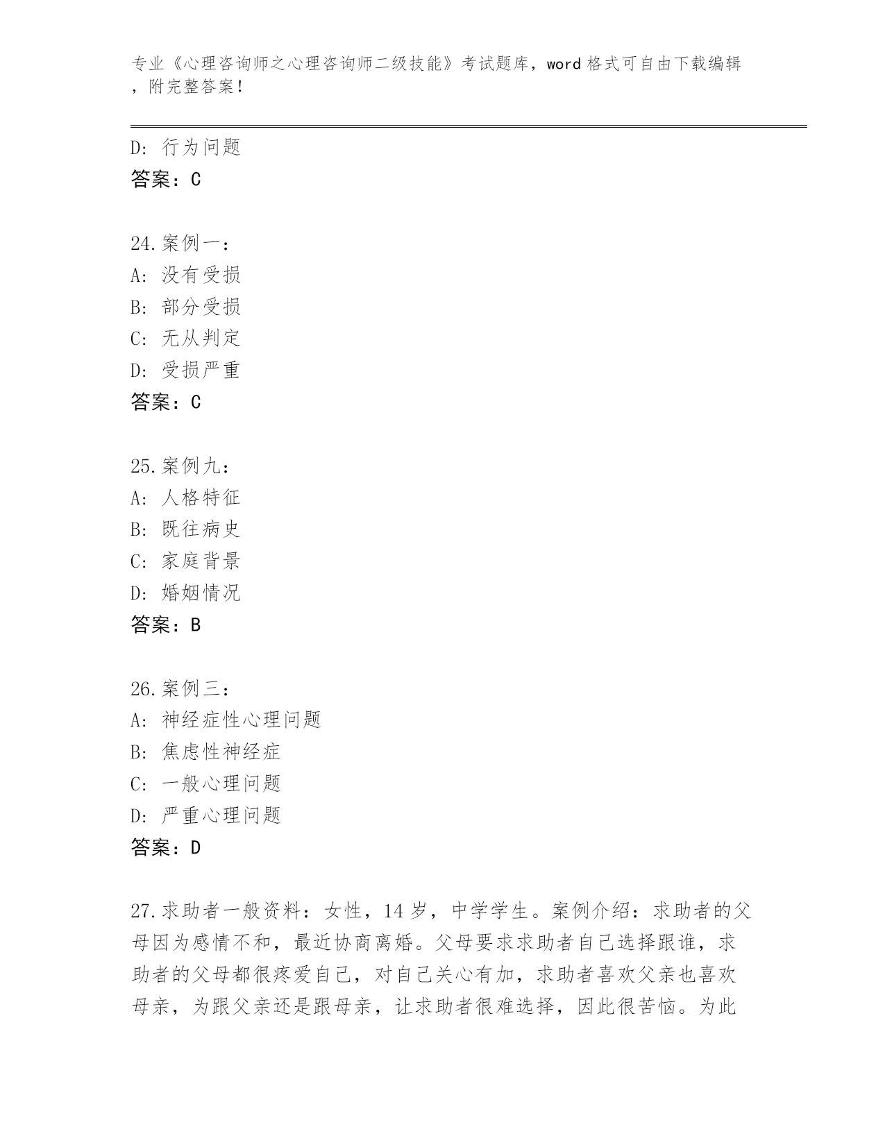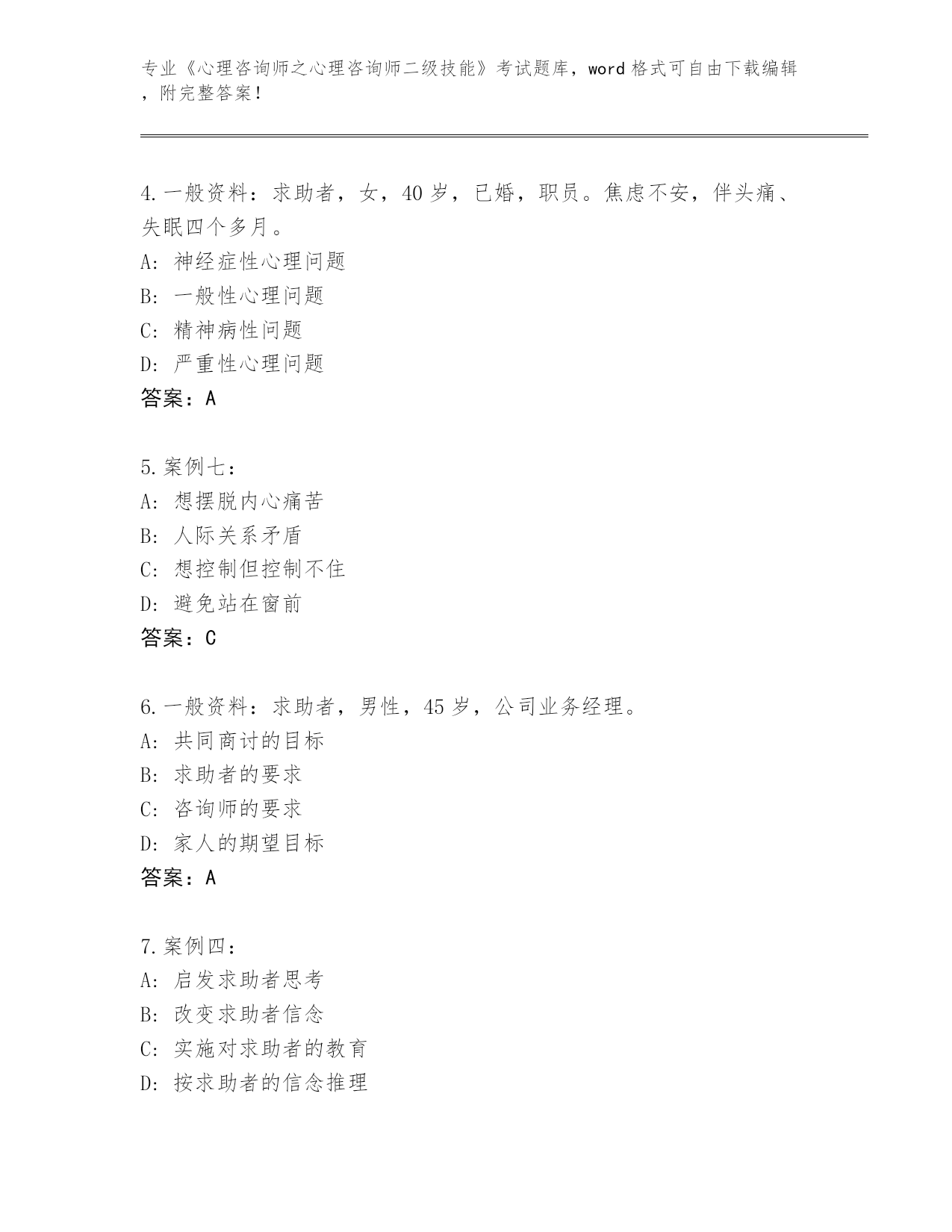 2024浙江省《心理咨询师之心理咨询师二级技能》考试真题题库带解析答案