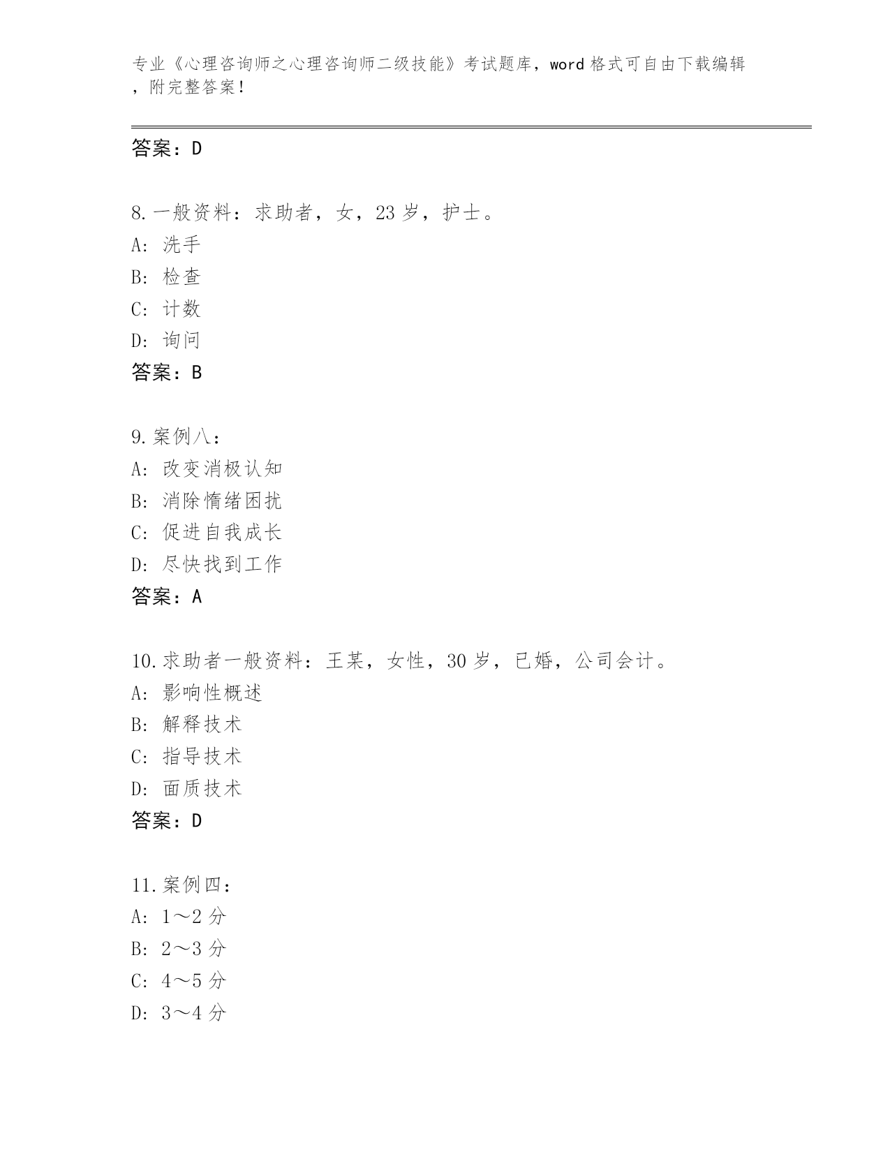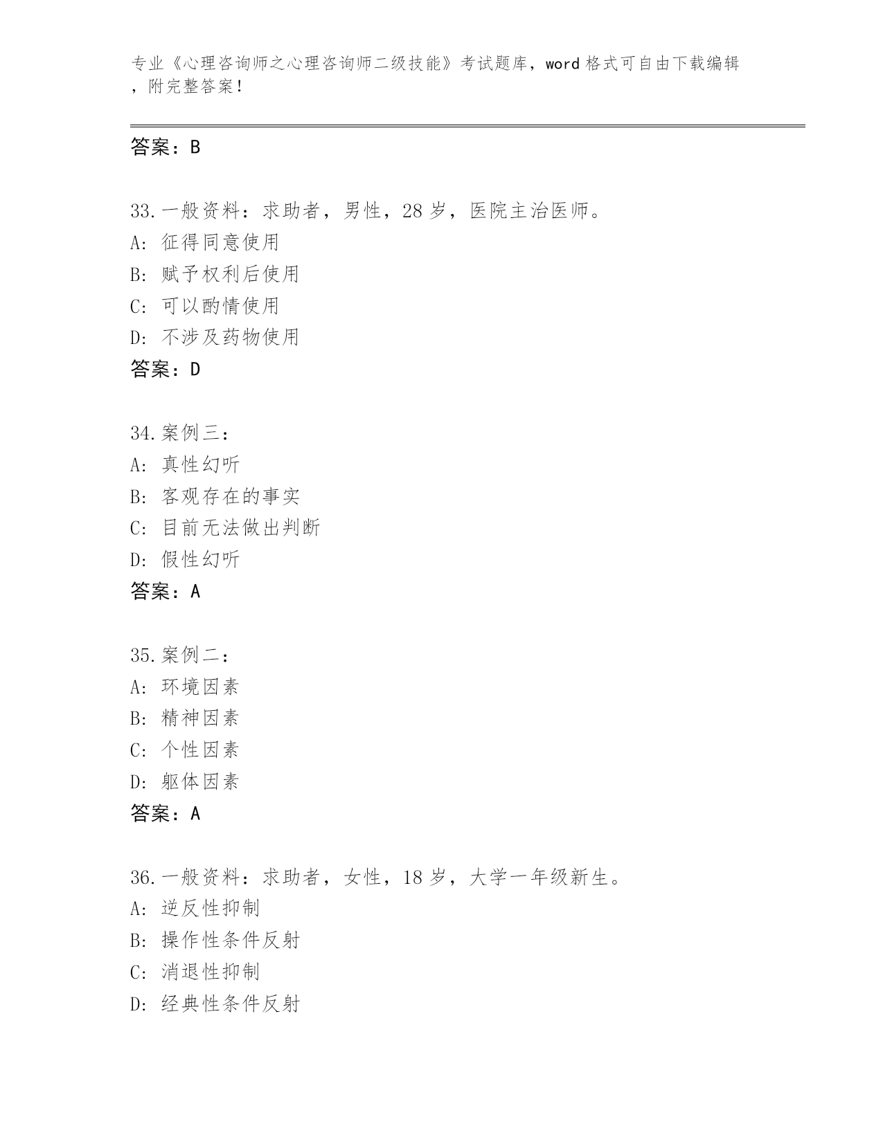 浙江省滨江区《心理咨询师之心理咨询师二级技能》考试真题题库【原创题】