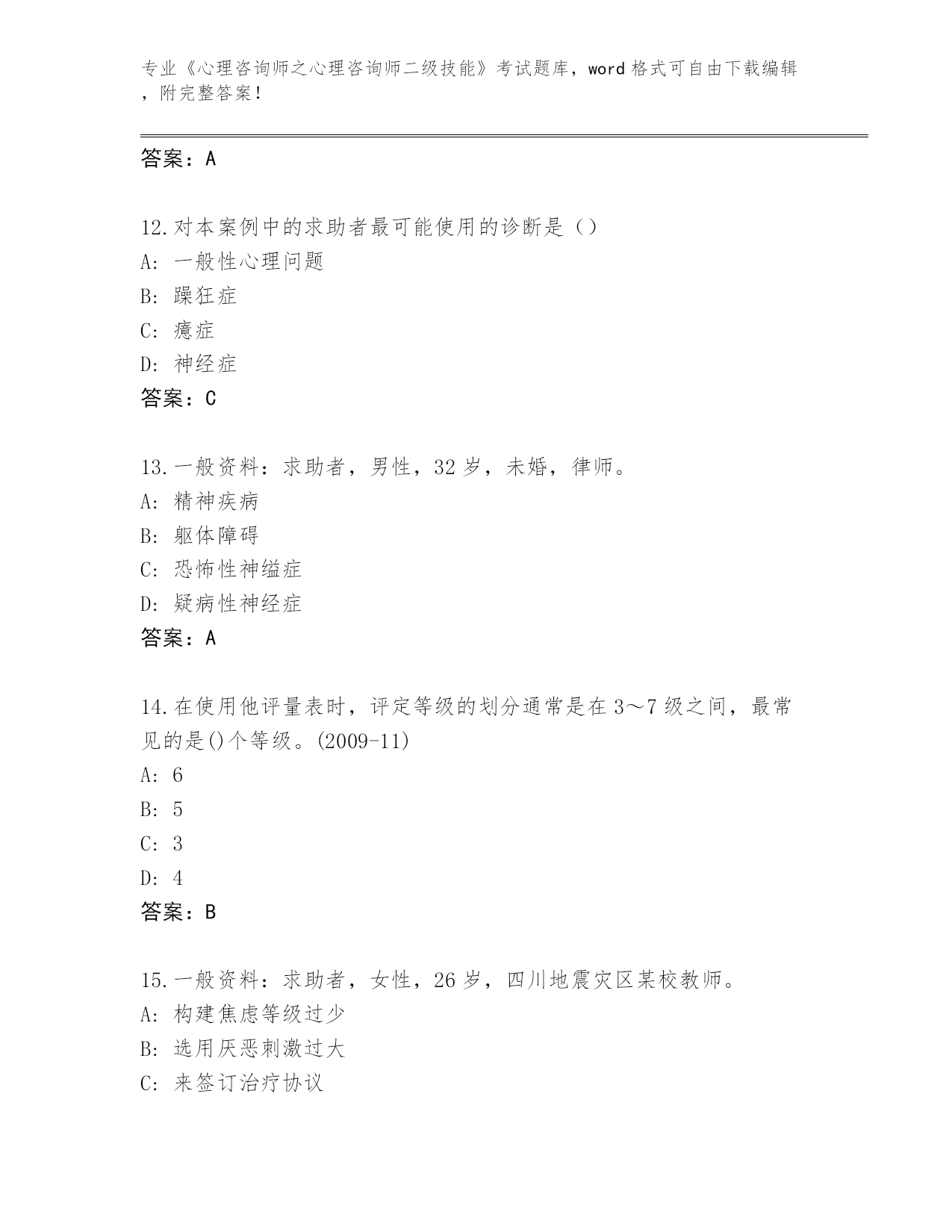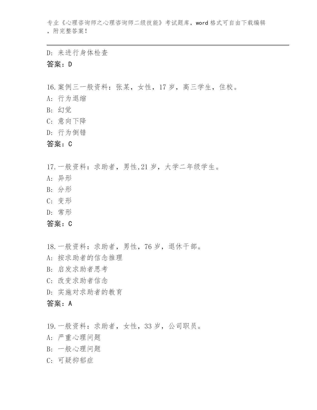 浙江省《心理咨询师之心理咨询师二级技能》考试必考200题真题题库【能力提升】