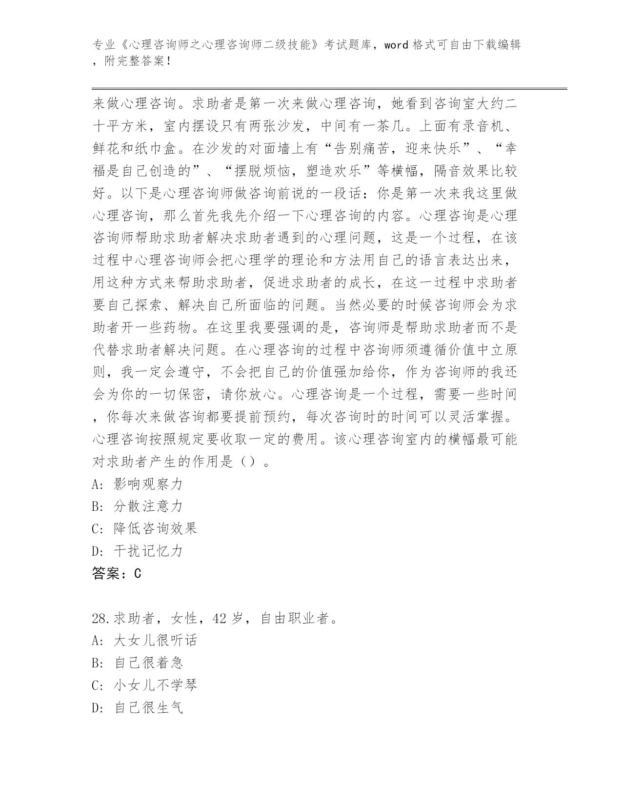 浙江省新昌县2024《心理咨询师之心理咨询师二级技能》资格考试完整