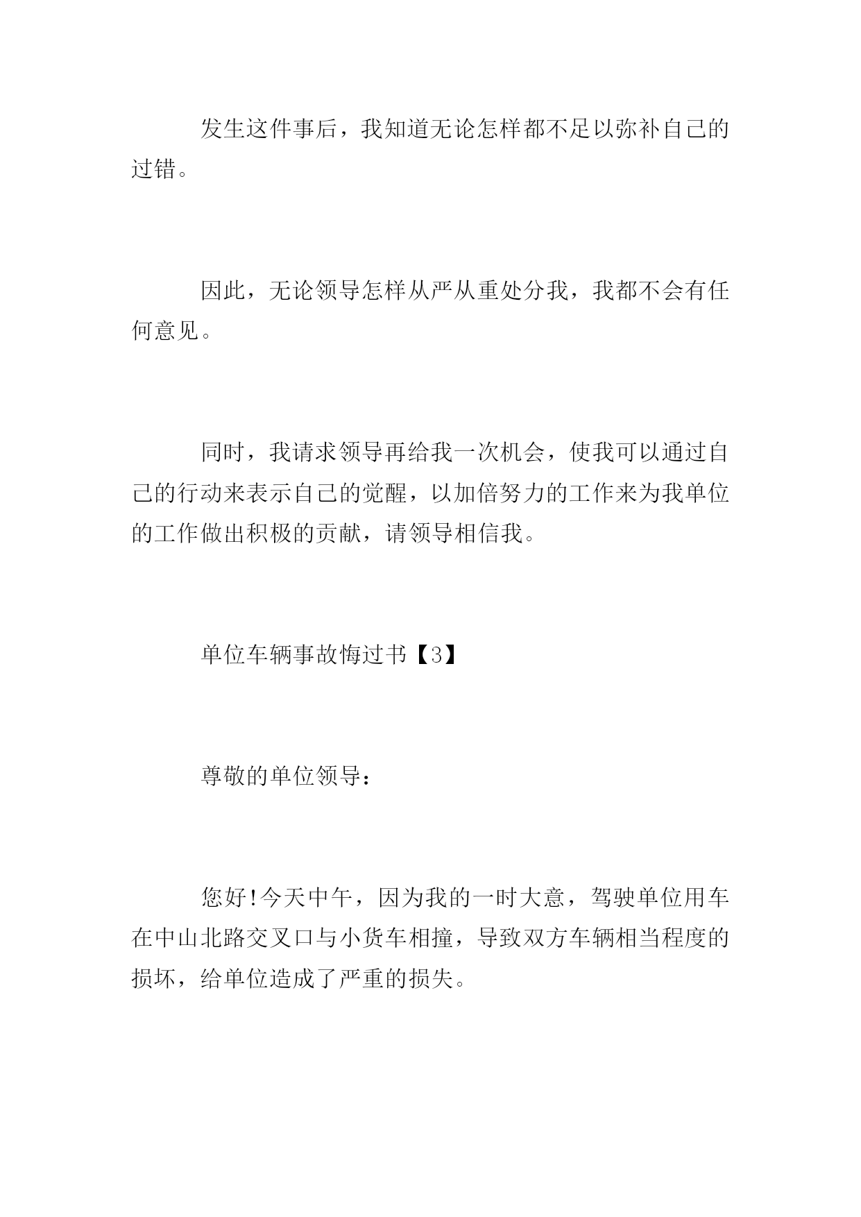 交通事故悔过书自觉遵守交通法则,是每位司机的义务和责任,安全第一。交通事故悔过书你会写了吗?针对这个问题小编为大家整理的关于交通事故悔过书范文,供大家参考!交通事故悔过书【1】事由:本人在10月16日下午1:45,在房交会现场,局机关同事叫车外出去办事,在路上与电动车发生碰撞,造成交通事故。爱思范文14由于在这时候车辆属于单位测量专用车,此行为违反了公司的有关规定,在此特做个人反省和检讨。首先,我要向单位领导和同志们道一声:“对不起!”是我辜负了领导和同志们对我的信任,没有将安全工作放在第一位,给单位和个人都造成了损失和伤害,在此,我必须向单位领导和同志们作出深刻检讨,必须永远牢记这次教训。我诚恳接受领导对我的处罚。对这次事故,我进行了深刻的反思,导致这次事故主要有以下几个方面的原因:一是公车乱用,擅自行动。我没有时刻牢记公司的车辆管理制度,自己把握不住自己的行为,不向领导报告,擅自动车,做出了违规举动。二是思想麻痹,安全意识差。这种认识使自己产生了麻痹思想,安全制度规定流于形式,停留在口头上,并没有真正在心中留下深刻的烙印,为自己发生交通事故埋下了祸根。三是思想懈怠。这次事故事,对前方电动车出现的左拐现象,没有及时、准确地作出判断,没有采取妥善、有效的措施,一时疏忽大意终于酿成了大祸。今后,我将认真吸取这次深刻教训,务必做到以下:1、自觉学习和遵守交通安全管理法律、法规和政策规定,严格执行单位的车辆管理规章制度,牢固树立安全第一的思想,将所有隐患都消灭在萌芽状态,尽最大努力杜绝交通事故的发生。2、认真学习和钻研业务知识,努力提高自身业务水平,踏踏实实工作,努力做好本职工作,尽可能弥补自己给单位带来的不良影响和损失。3、严格要求自己,改掉对自己要求不严格的坏习惯,不在犯类似的错误。短短的1篇检查,虽然不能表述我对自己的谴责。但是,我希望领导能给我重新改过的机会。检讨人:XXX20xx年xx月xx日经典交通事故悔过书范文【2】尊敬的领导:7月19日,在工作中,由于我的工作态度不认真,导致发生一起交通事故。几天来,我认真反思,深刻自剖,为自己的行为感到了深深地愧疚和不安,在此,我谨向各位领导做出深刻检讨,并将我几天来的思想反思结果向领导汇报如下:通过这件事,我感到这虽然是一件偶然发生的事情,但同时也是长期以来对自己放松要求,工作作风涣散的必然结果。经过几天的反思,我对自己这几个月的工作经历进行了详细回忆和分析。记得刚上班的时候,我对自己的要求还是比较高的,时时处处也都能遵守相关规章制度,从而努力完成工作。但近几个星期来,由于工作逐渐走上了轨道,尤其是领导对我的关怀和帮助使我感到温暖的同时,也慢慢开始放松了对自己的要求,反而认为自己已经做得很好了。因此,这次发生的事使我不仅感到是自己的耻辱,更为重要的是我感到对不起领导对我的信任,愧对领导的关心。同时,在这件事中,我还感到,自己在工作责任心上仍就非常欠缺。这充分说明,我从思想上没有把工作重视起来,这也说明,我对自己的工作没有足够的责任心,也没有把自己的工作做得更好,也没给自己注入走上新台阶的思想动力。在自己的思想中,仍就存在得过且过,混日子的应付思想。现在,我深深感到,这是一个非常危险的倾向,也是一个极其不好的苗头,要是我继续这么放纵和发展,那么,后果是极其严重的,甚至都无法想象会发生怎样的工作失误。因此,通过这件事,在深感痛心的同时,我也感到了幸运,感到了自己觉醒的及时,这在我今后的人生成长道路上,无疑是一次关键的转折。所以,在此,我在向领导做出深刻的检讨。此外,我也看到了这件事的恶劣影响,如果在工作中,大家都像我一样自由散漫,漫不经心,那怎么能及时把工作落实好.做好呢。同时,如果在我们这个集体中形成了这种目无组织纪律观念,不良风气不文明表现,我们工作的提高将无从谈起。因此,这件事的后果是严重的,影响是恶劣的。发生这件事后,我知道无论怎样都不足以弥补自己的过错。因此,无论领导怎样从严从重处分我,我都不会有任何意见。同时,我请求领导再给我一次机会,使我可以通过自己的行动来表示自己的觉醒,以加倍努力的工作来为我单位的工作做出积极的贡献,请领导相信