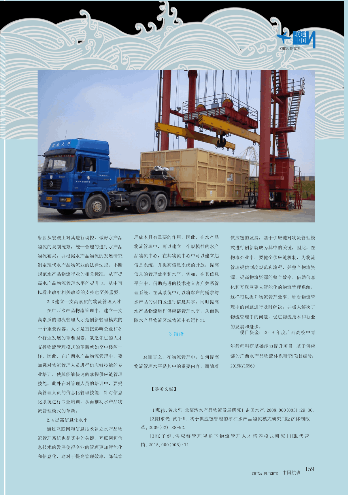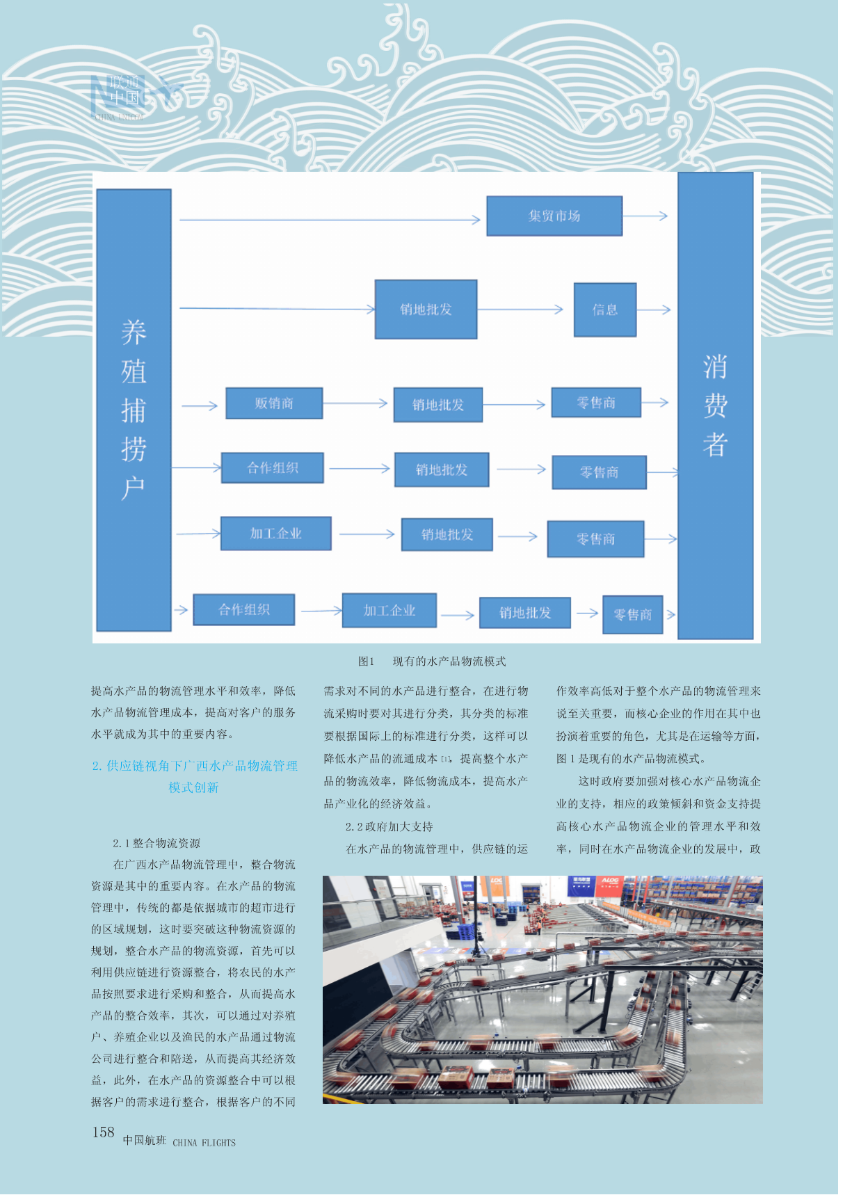 联通中国CHINAUNICOM供应链视角下广西水产品物流管理模式分析*唐凤范1李兴华2(1.北海职业学院;2.广西博联信息通讯技术有限责任公司)摘要:在我国的经济行业中,物流作为其中之一,对经济各行业的发展都具有重要的意义,而随着我国互联网经济以及物流产业的发展,对物流管理也需要创新和提升,这时如何加强对水产品的物流管理就成为其中的问题,通过对水产品物流的认识,并针对水产品物流管理中的问题进行解决,通过供应链对广西水产品物流管理模式进行革新,从而促进水产品物流管理模式的现代化和信息化建设,对提升整个水产品的质量和竞争力具有重要的意义和作用。关键词:供应链;广西水产品;物流管理1.水产品物流概述在我国的物流行业中,水产品的物流本高达百分之六十以上,其中在水产品的管理是其中的一个重要问题,加上水产品物理管理中,生产、运输和储存等环节的在运输的过程中对运输要求较高,如何提在物流行业中,水产品的物流主要是损失率在百分之二十五到百分之三十,从高物流质量和水平就成为水产品物流管理通过现代物流手段对水产品进行相关的服中可以看出一方面由于水产品在供应的过的关键,而广西临海,其中水产品的物流务,这个服务从供应源头到消费者,从而程中较为分散,其供应技术没有随着技术占据了很大部分,在进行水产品的物流管满足客户的需求,这就是所谓的水产品物的提升而得到改善,另一方面水产品物流理中可以借助供应链管理技术对物流管理流,根据市场统计,在我国的物流产业中对储存和运输等各个方面要求较高,加之模式进行创新,从而促进广西水产品经济农产品的物流成本占整个成本的百分之水产品在客户服务中无法做到尽善尽美,的发展。三十到百分之四十,其中水产品所占的成从而导致水产品物流成本较高,这时如何157CHINAFLIGHTS中国航班联通中国CHINAUNICOM图1现有的水产品物流模式提高水产品的物流管理水平和效率,降低需求对不同的水产品进行整合,在进行物作效率高低对于整个水产品的物流管理来水产品物流管理成本,提高对客户的服务流采购时要对其进行分类,其分类的标准说至关重要,而核心企业的作用在其中也水平就成为其中的重要内容。要根据国际上的标准进行分类,这样可以扮演着重要的角色,尤其是在运输等方面,降低水产品的流通成本[1],提高整个水产图1是现有的水产品物流模式。2.供应链视角下广西水产品物流管理模式创新品的物流效率,降低物流成本,提高水产这时政府要加强对核心水产品物流企品产业化的经济效益。业的支持,相应的政策倾斜和资金支持提2.2政府加大支持高核心水产品物流企业的管理水平和效2.1整合物流资源在水产品的物流管理中,供应链的运率,同时在水产品物流企业的发展中,政在广西水产品物流管理中,整合物流资源是其中的重要内容。在水产品的物流管理中,传统的都是依据城市的超市进行的区域规划,这时要突破这种物流资源的规划,整合水产品的物流资源,首先可以利用供应链进行资源整合,将农民的水产品按照要求进行采购和整合,从而提高水产品的整合效率,其次,可以通过对养殖户、养殖企业以及渔民的水产品通过物流公司进行整合和陪送,从而提高其经济效益,此外,在水产品的资源整合中可以根据客户的需求进行整合,根据客户的不同158中国航班CHINAFLIGHTS联通中国CHINAUNICOM府要从宏观上对其进行调控,做好水产品理成本具有重要的作用,因此,在水产品供应链的发展,基于供应链对物流管理模物流的规划统筹,统一合理的进行水产品物流管理中,可以建立一个规模性的水产式进行创新就成为其中的关键,因此,在物流布局,并根据水产品物流的发展研究品物流中心,在其物流中心中可以建立起物流企业中,要健全供应链机制,为物流制定现代水产品物流业的法律法规,不断信息系统,并提高信息系统的开放,提高管理提供制度规范和流程,并整合物流资规范水产品物流行业的相关标准,从而提信息的管理效率和水平,例如,在其信息源,提高物流资源的整合效率,借助信息高水产品物流管理水平的提升[2],从中可平台中,借助先进的技术建立客户关系管化和互联网建立智能化的物流管理系统,以看出政府相关政策的支持也至关重要。理系统,在其系统中可以将客户的需求与这样可以提升物流管理效率,针对物流管2.3建立一支高素质的物流管理人才水产品的供销区进行信息共享,同时提高理中的问题进行及时解决,并极大解决了在广西水产品物流管理中,建立一支水产品物流运作供应链管理水平,从而保物流管理中的问题,促进物流技术和行业高素质的物流管理人才是创新管理模式的障水产品物流区域物流中心运作[3]。一个重要内容。人才是直接影响企业和各的