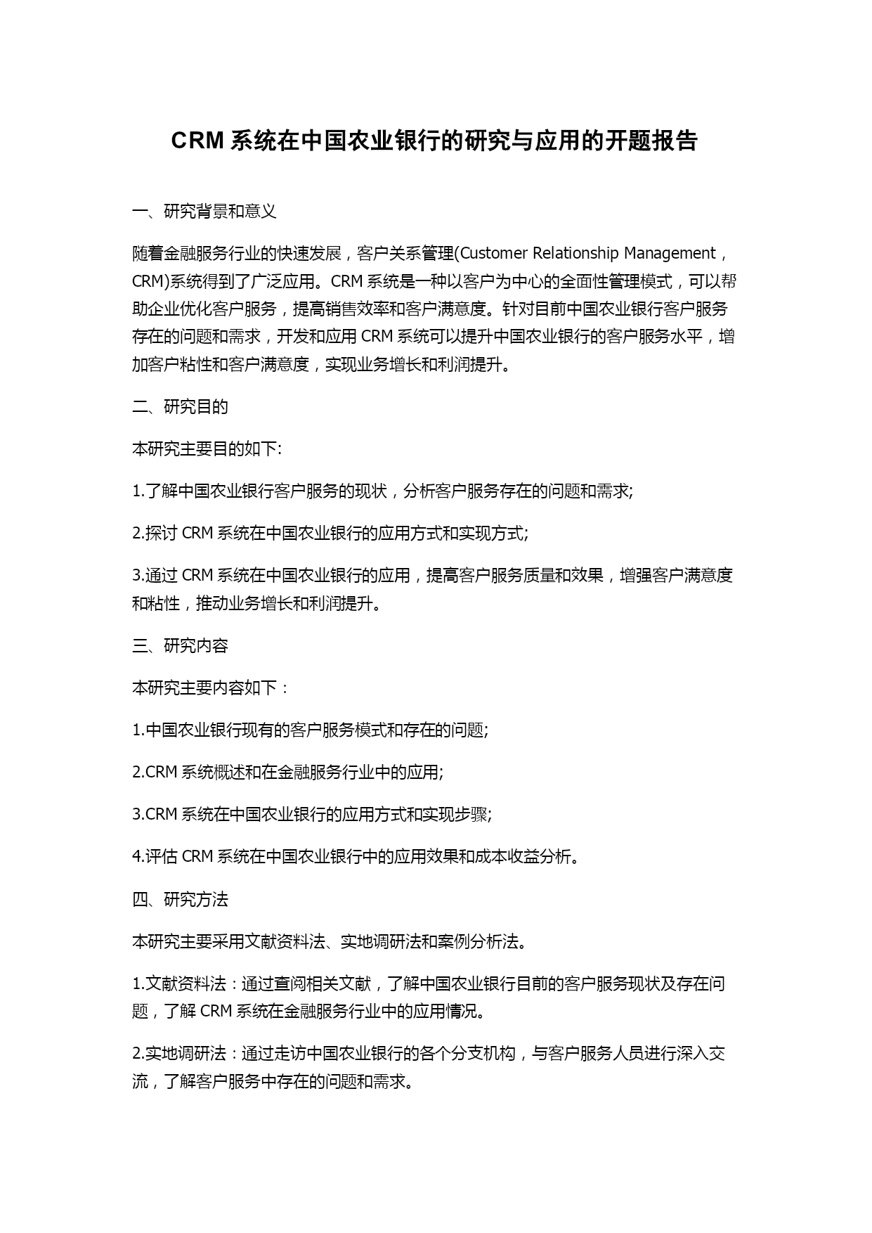 CRM系统在中国农业银行的研究与应用的开题报告.docx