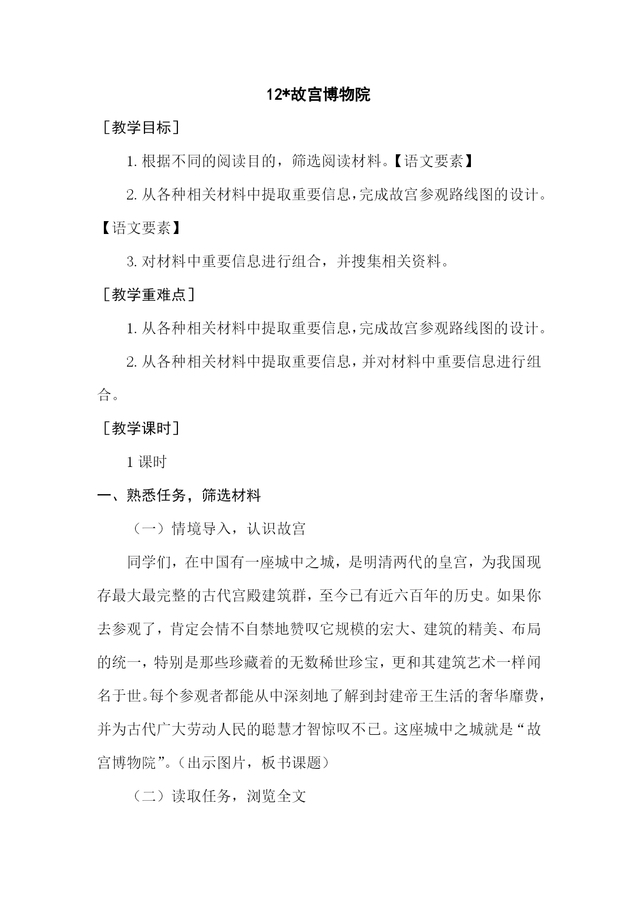 12 故宫博物院(教案+反思)-最新经典通用教辅资料.docx