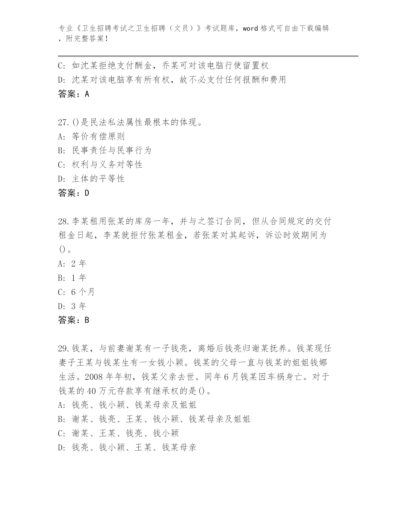 整理辽宁省细河区《卫生招聘考试之卫生招聘(文员)》资格考试完整版及答案解析