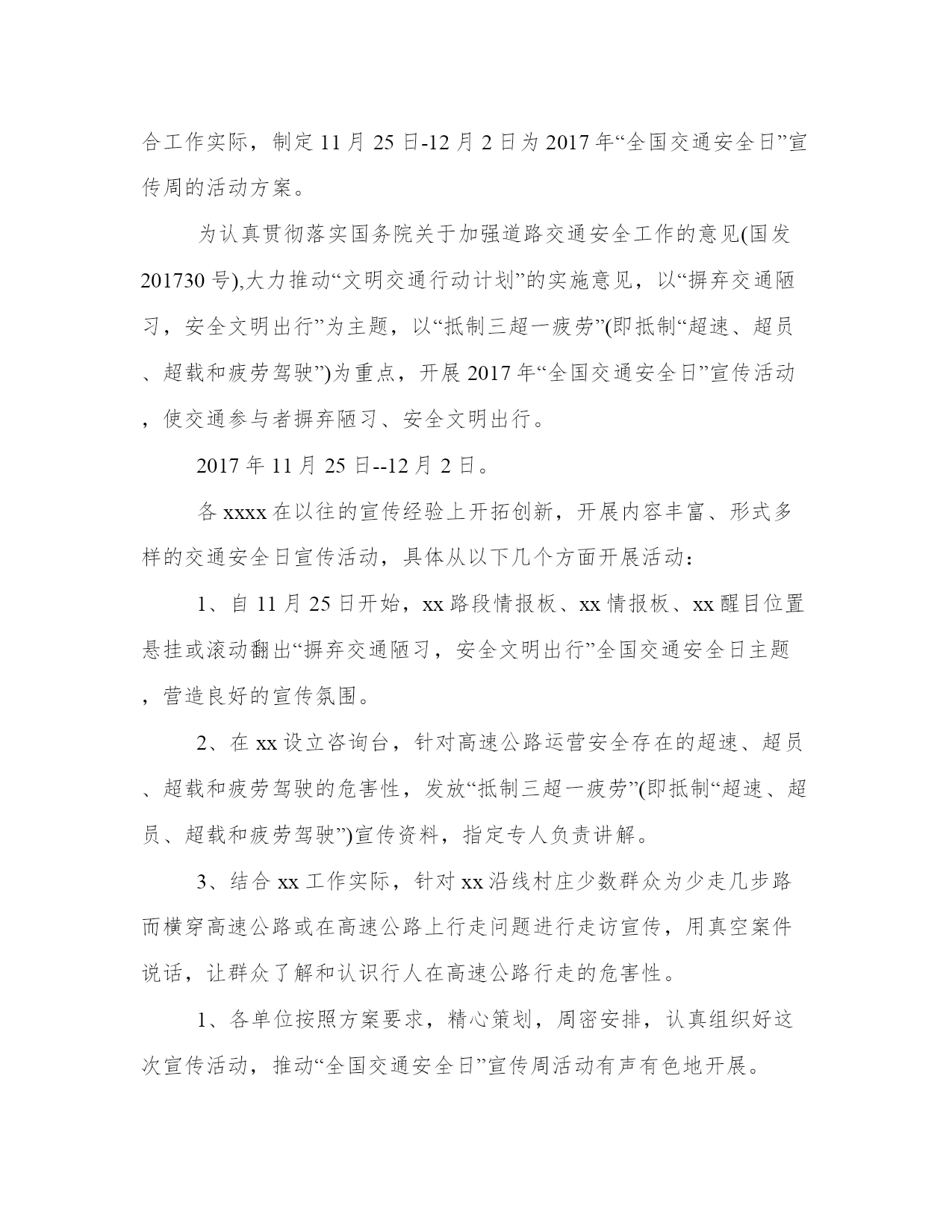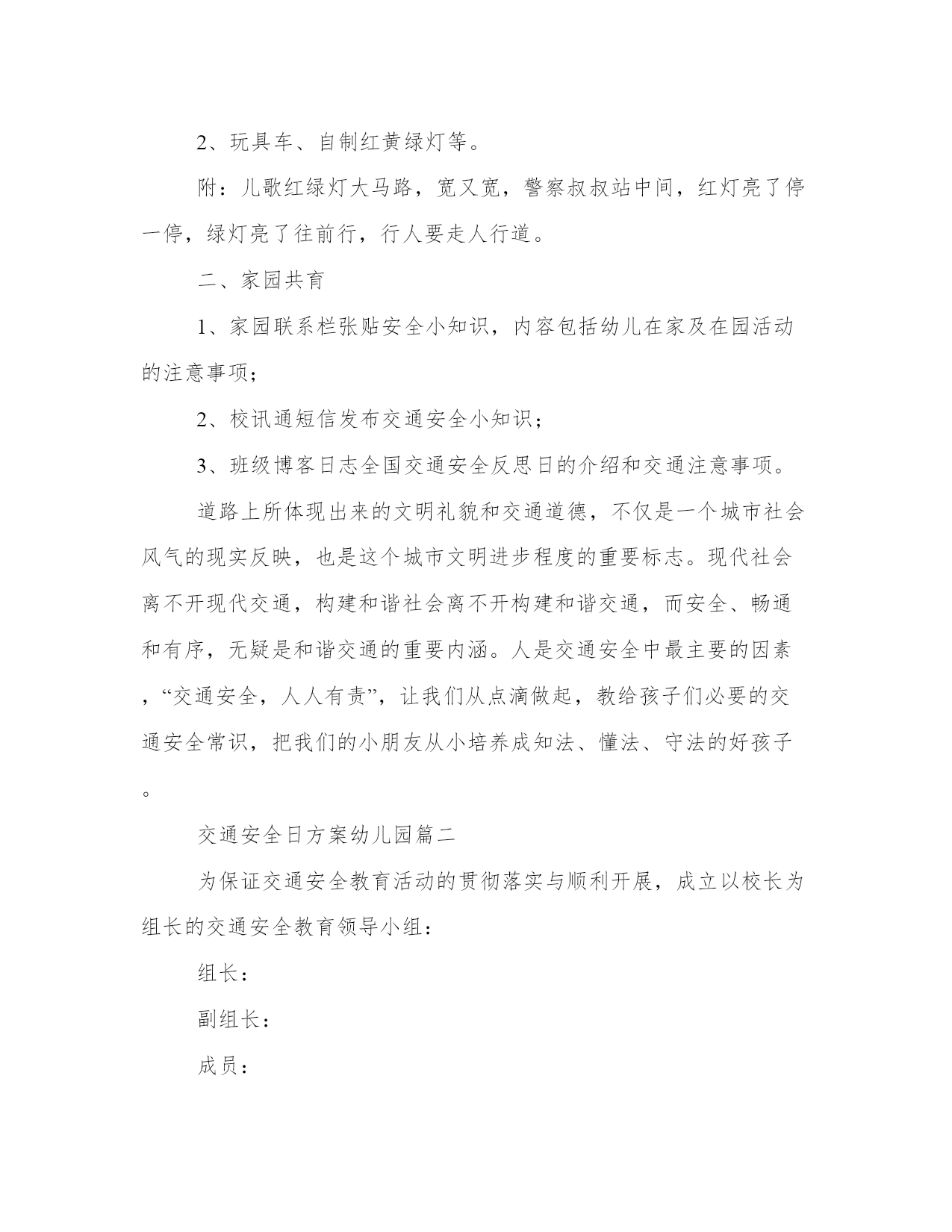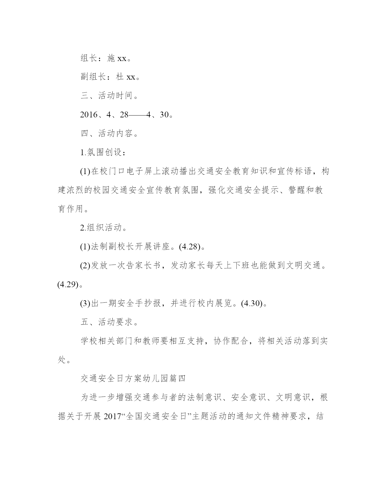 最新交通安全日方案幼儿园交通安全日活动方案(大全14篇).docx