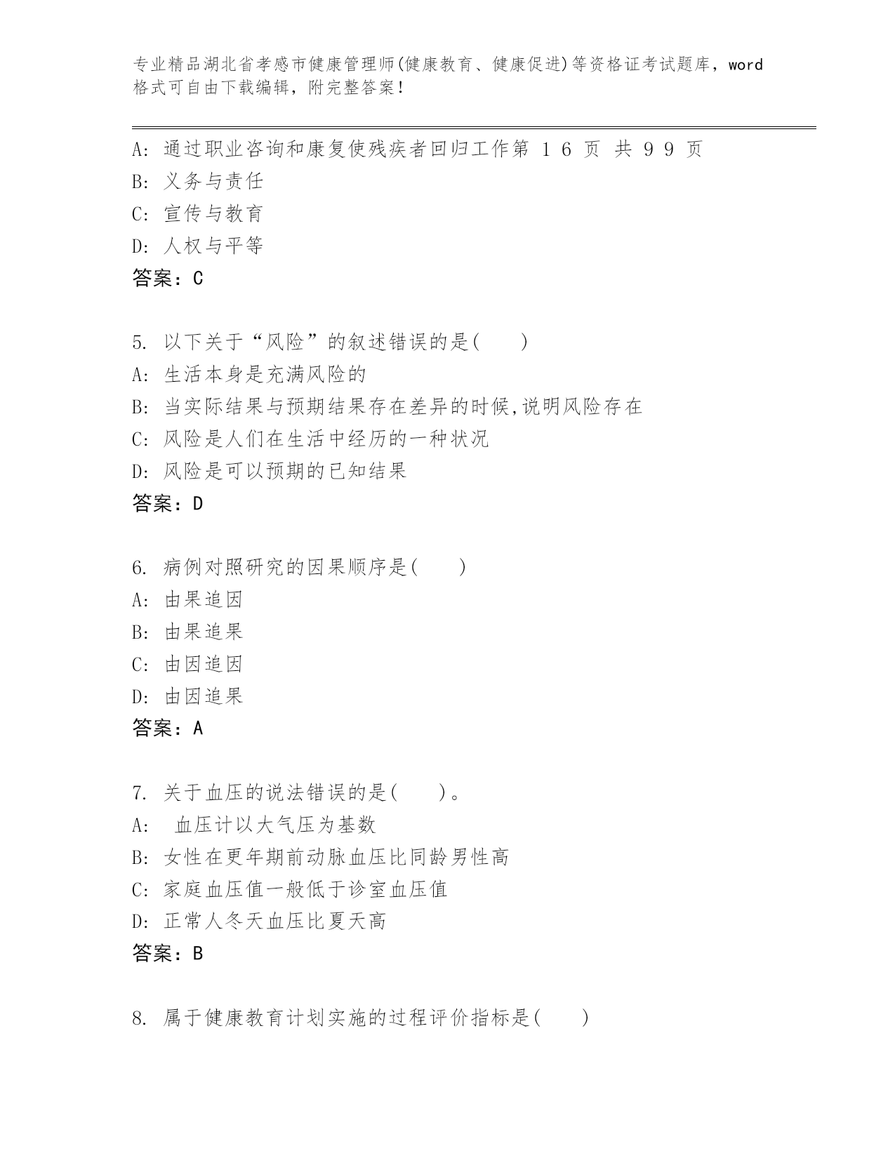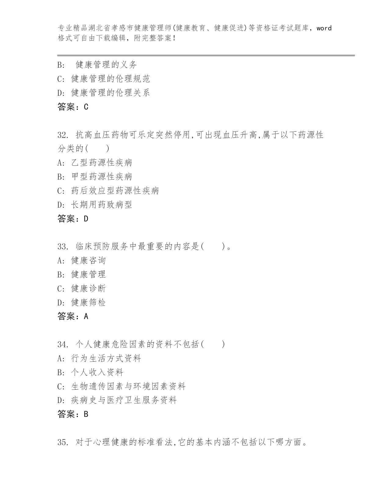 精品湖北省孝感市健康管理师(健康教育、健康促进)等资格证考试精选题库及免费答案