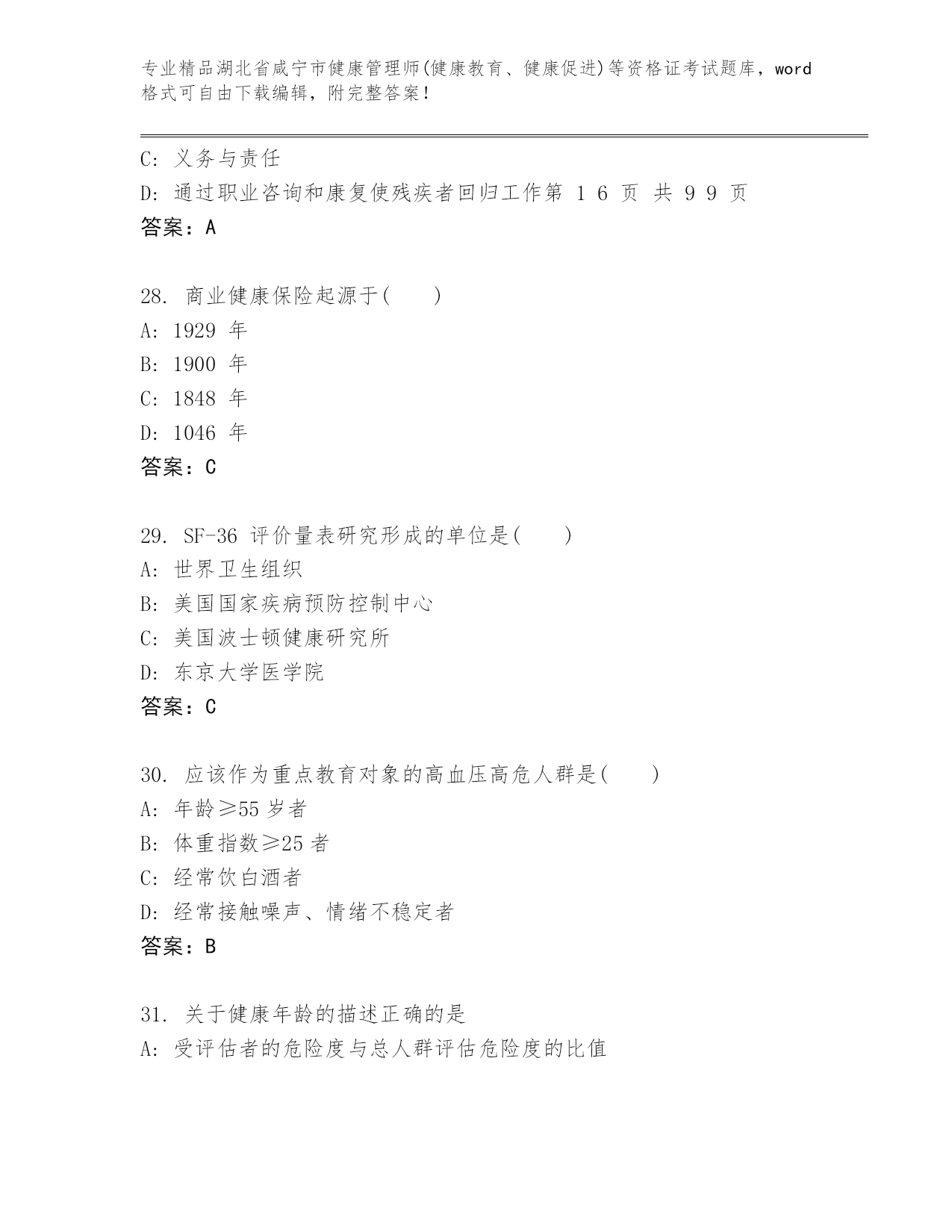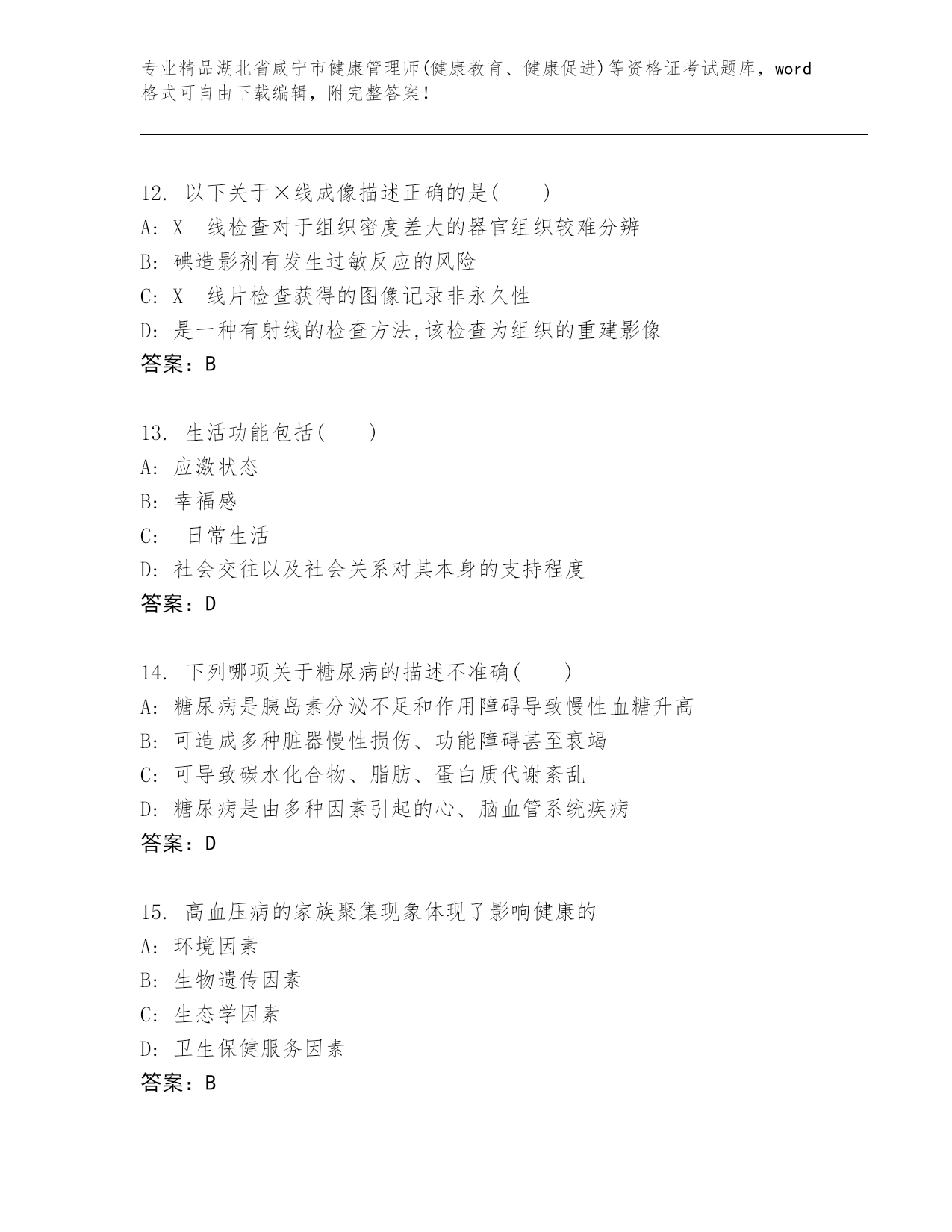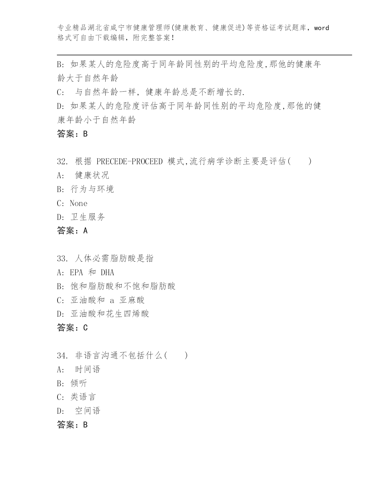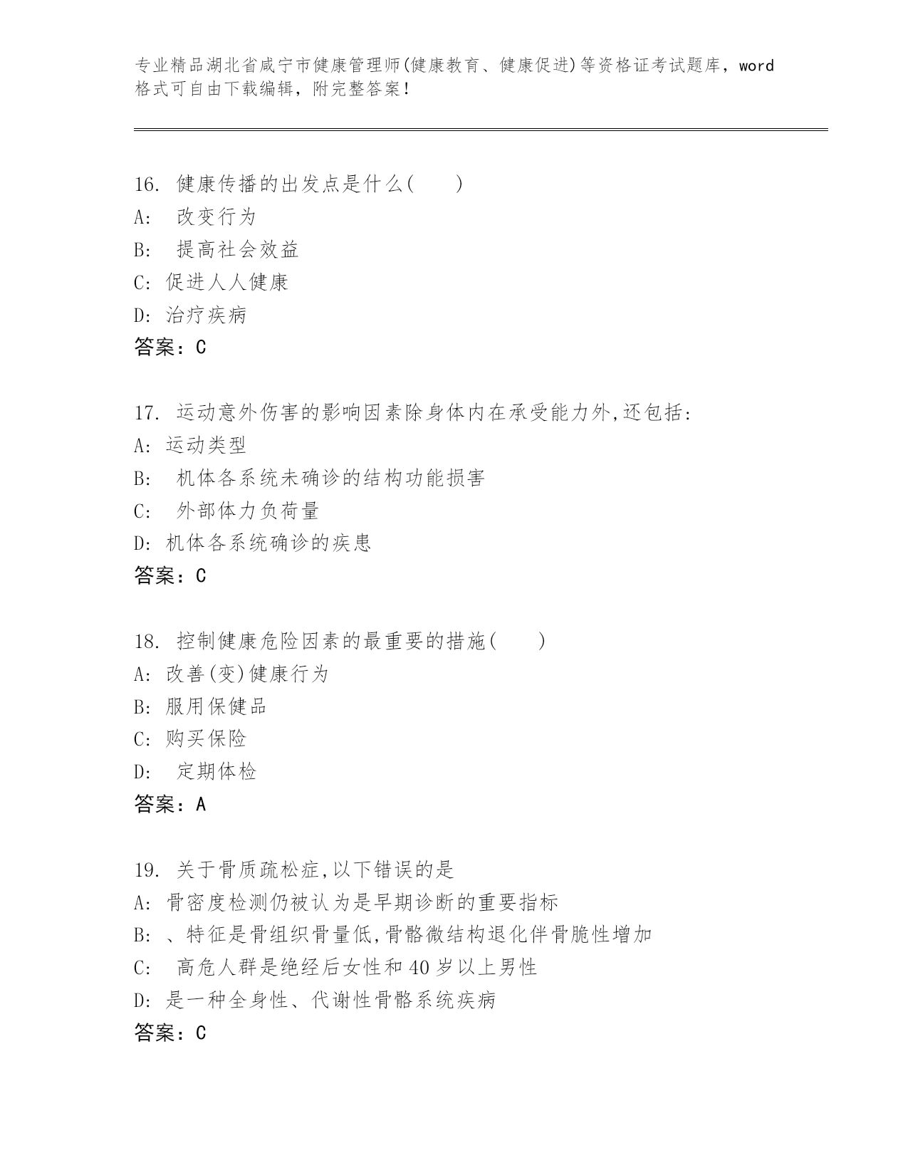 湖北省咸宁市健康管理师(健康教育、健康促进)等资格证考试及答案【真题汇编】.docx