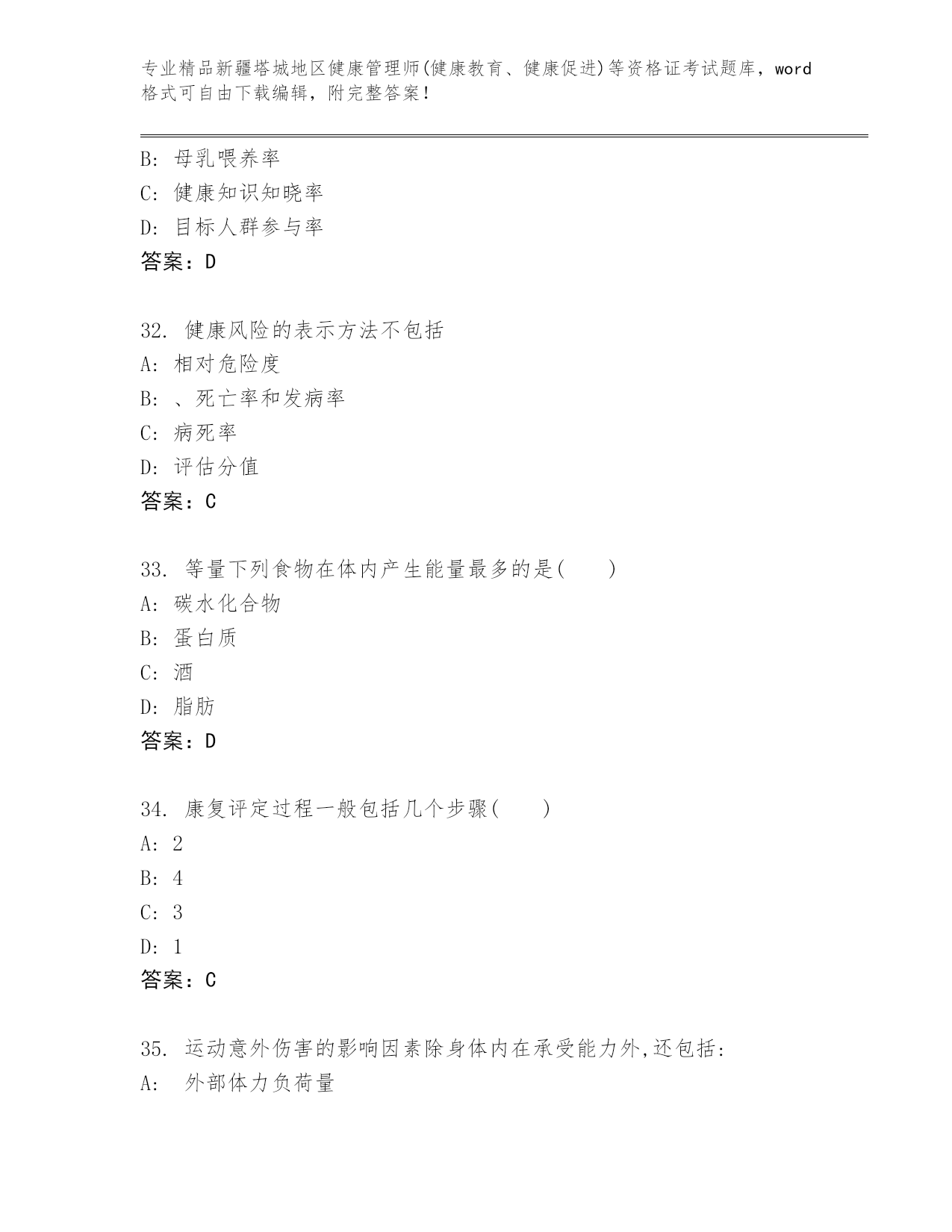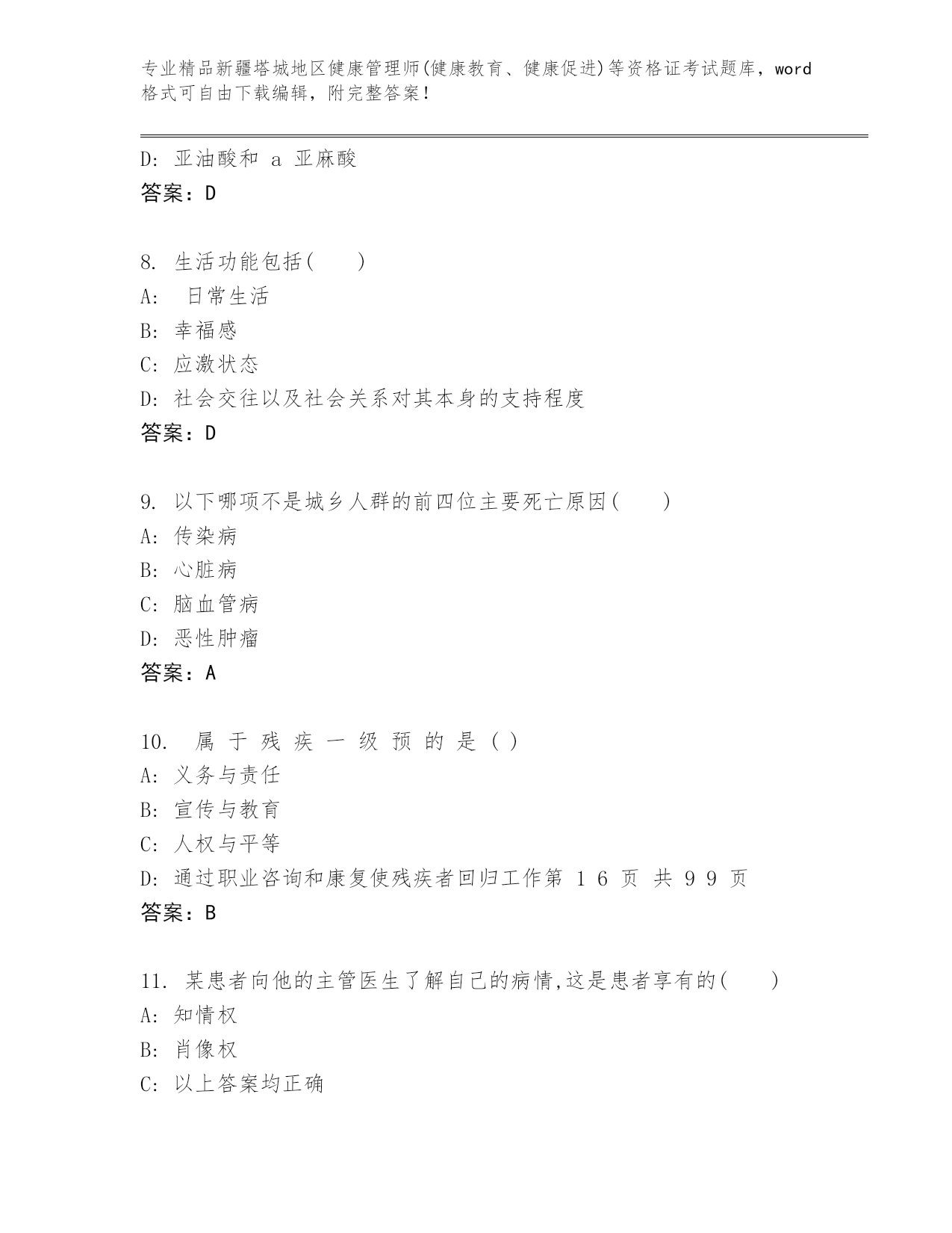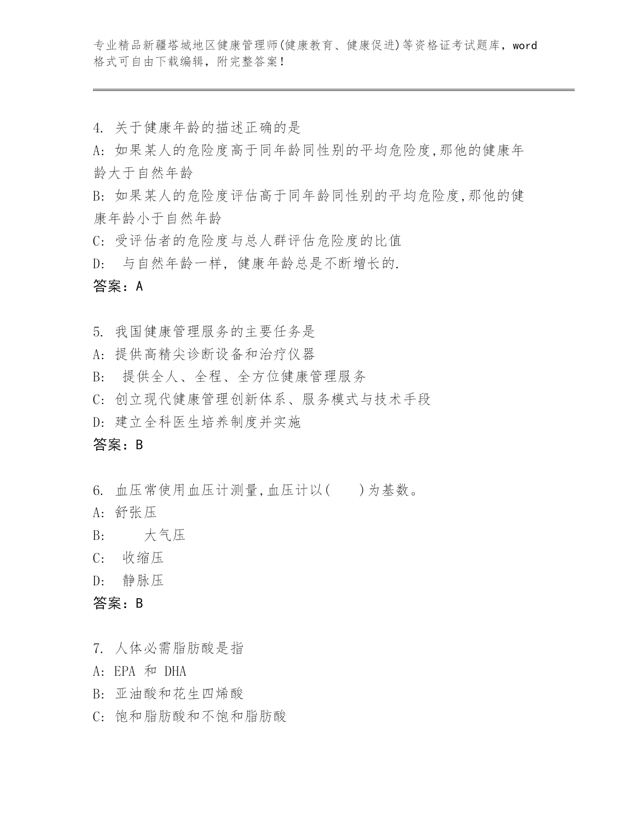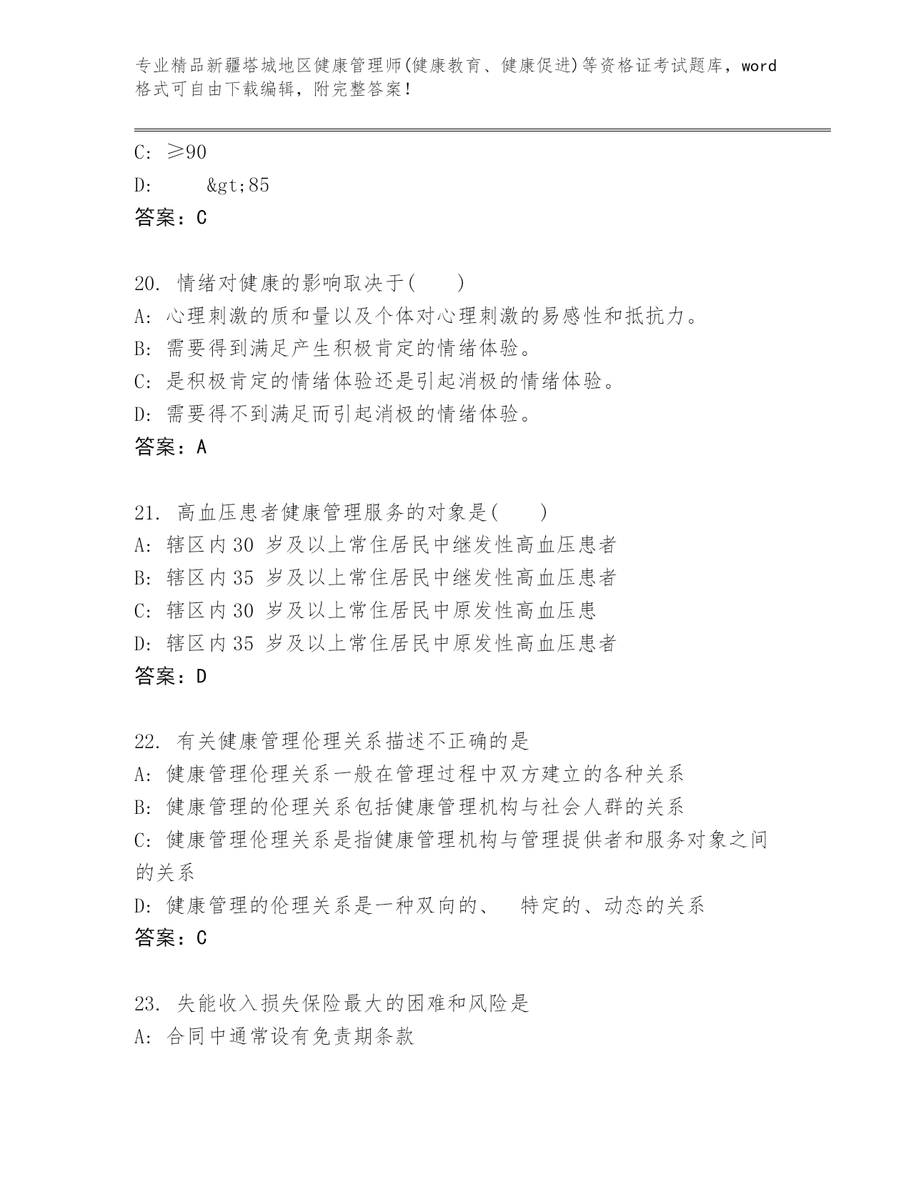 精编新疆塔城地区健康管理师(健康教育、健康促进)等资格证考试完整题库(精练).docx