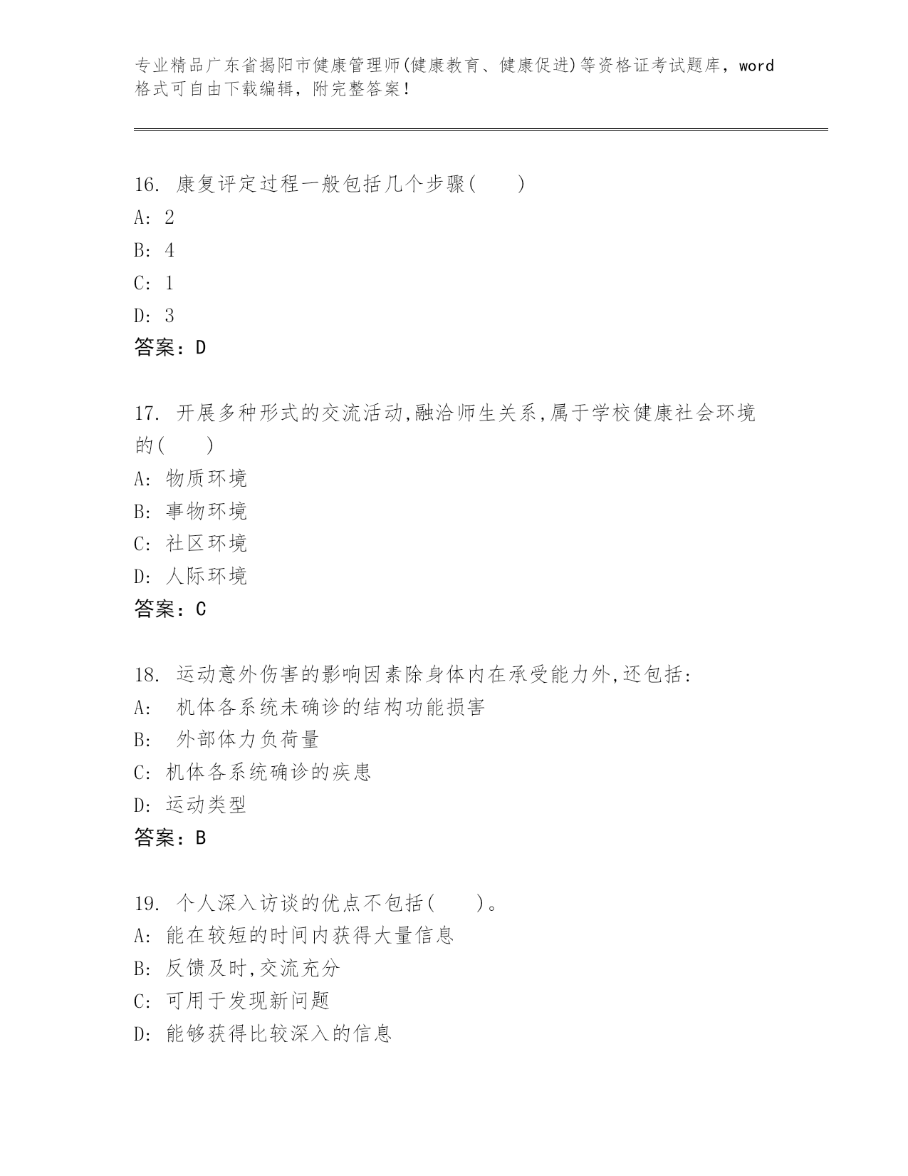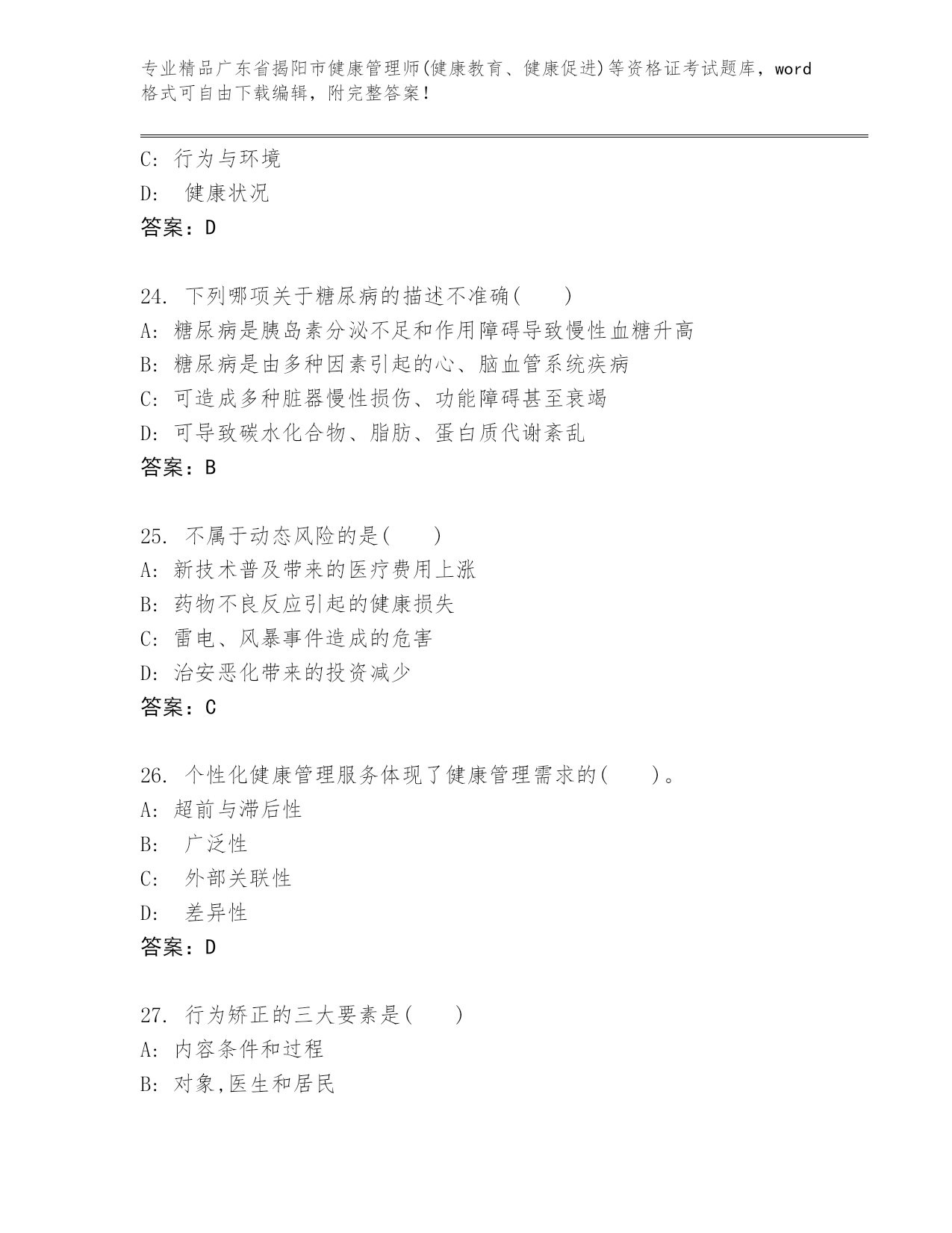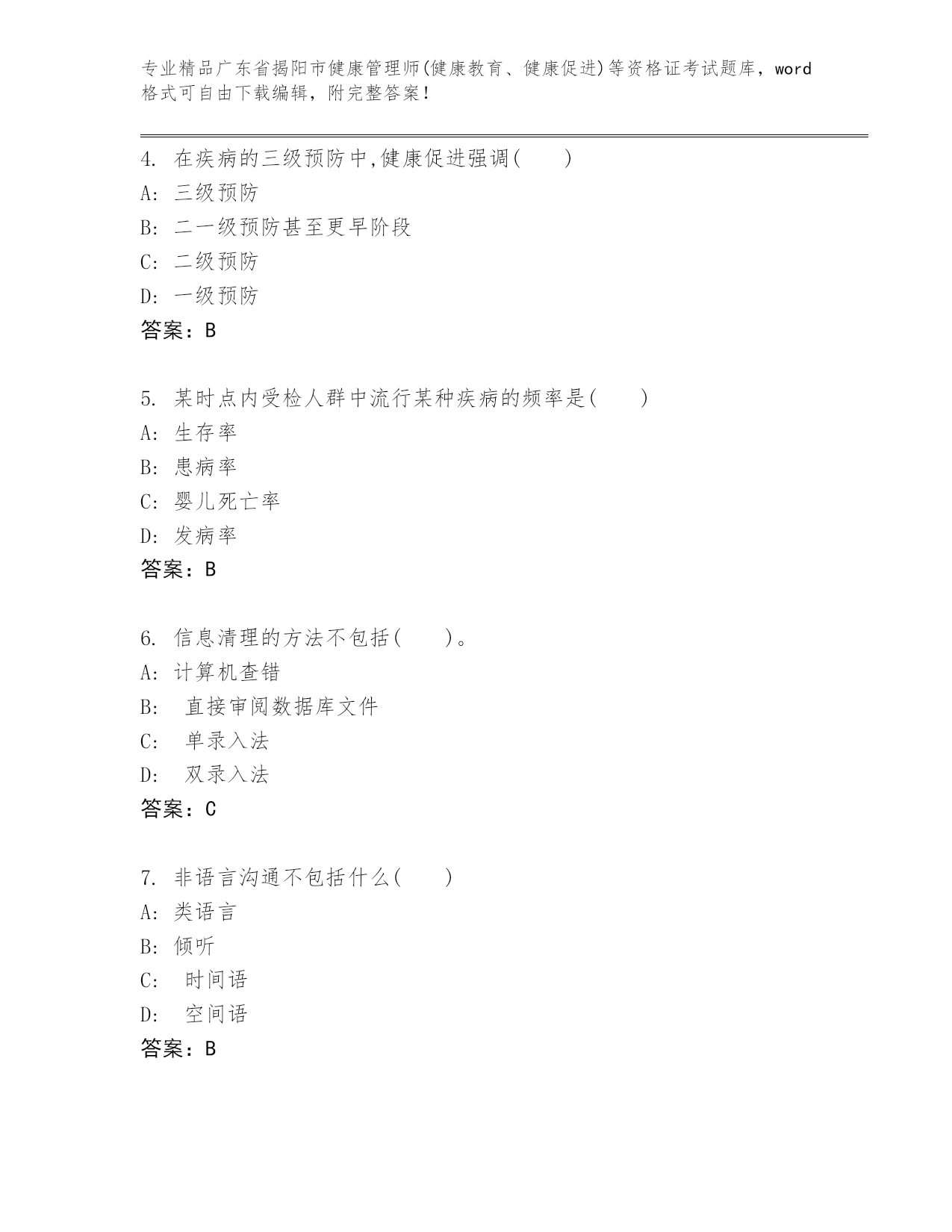 历年广东省揭阳市健康管理师(健康教育、健康促进)等资格证考试通用题库(突破训练)
