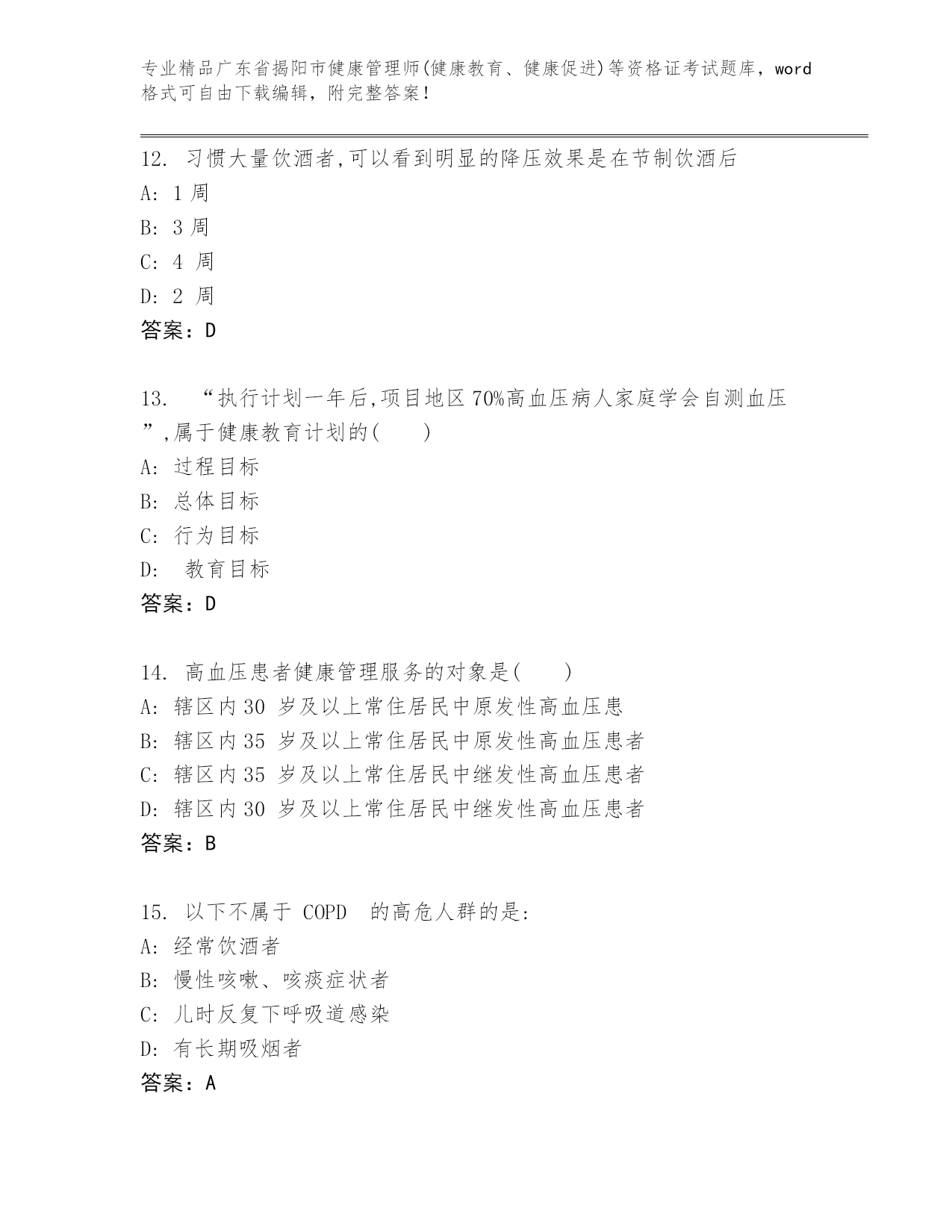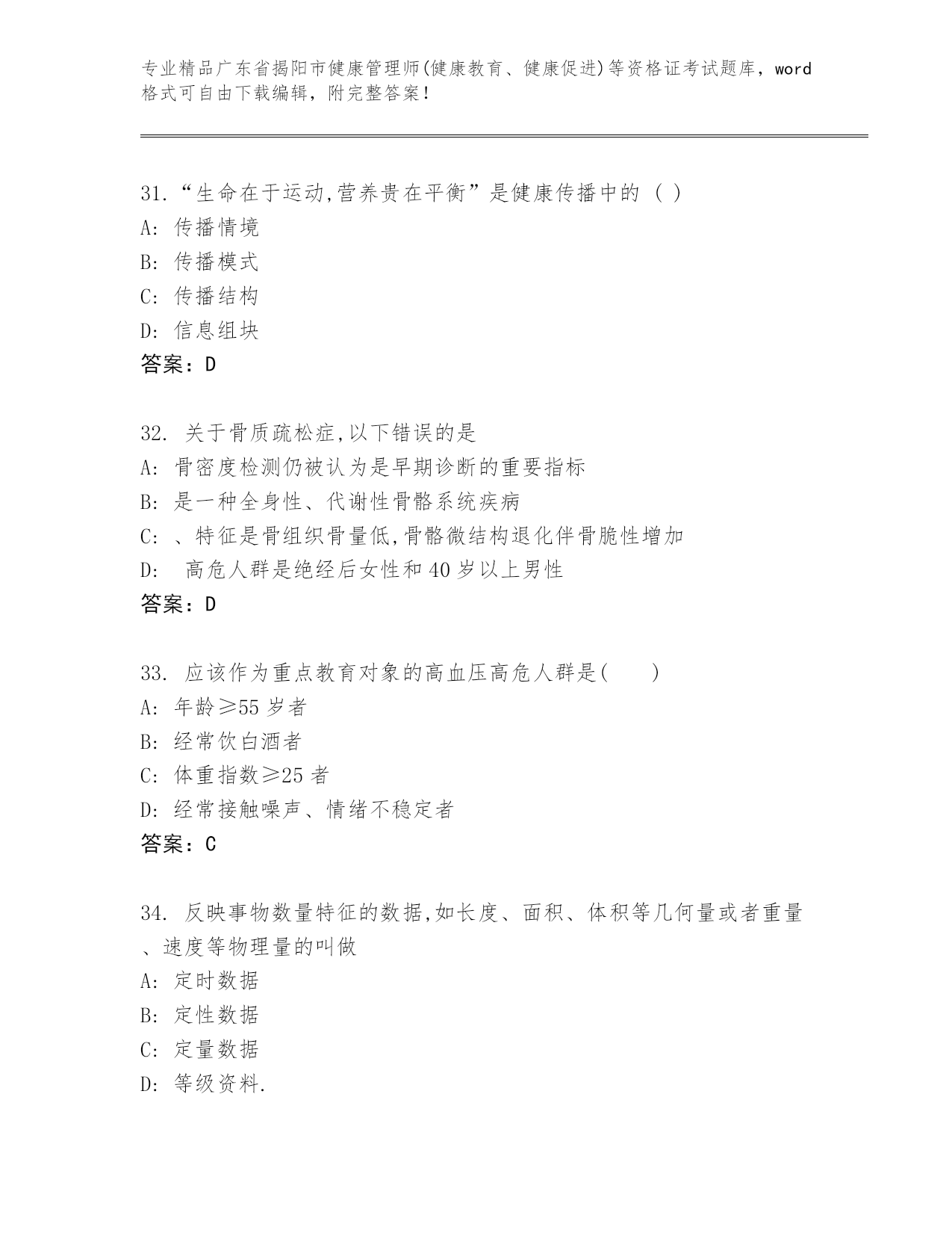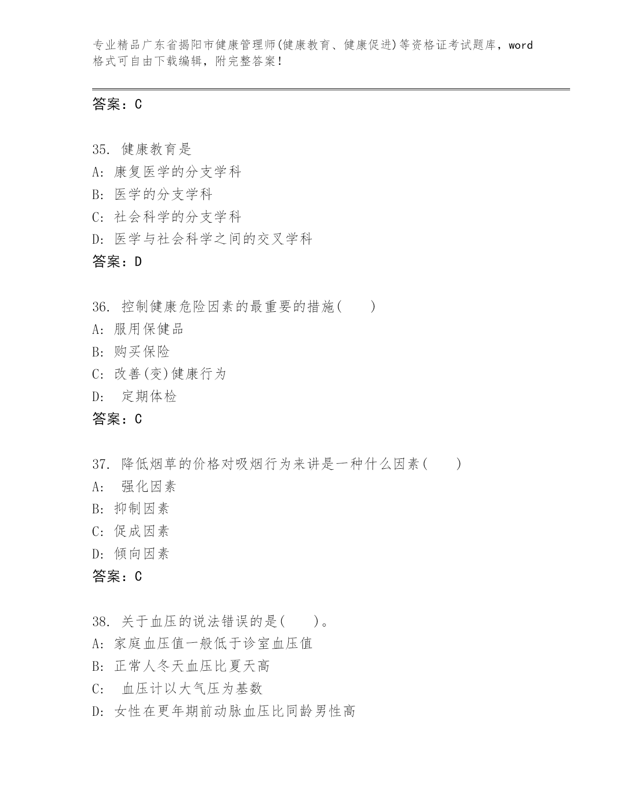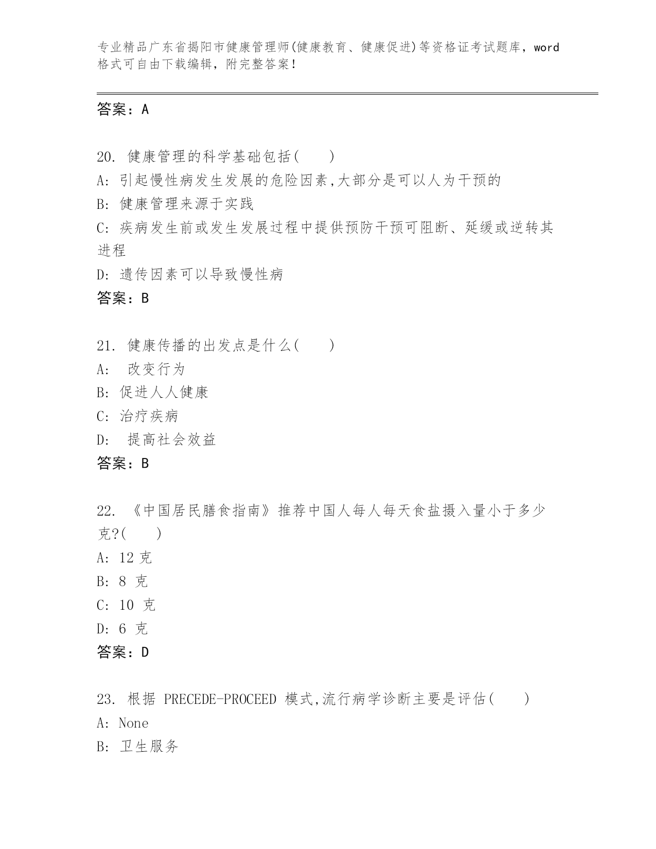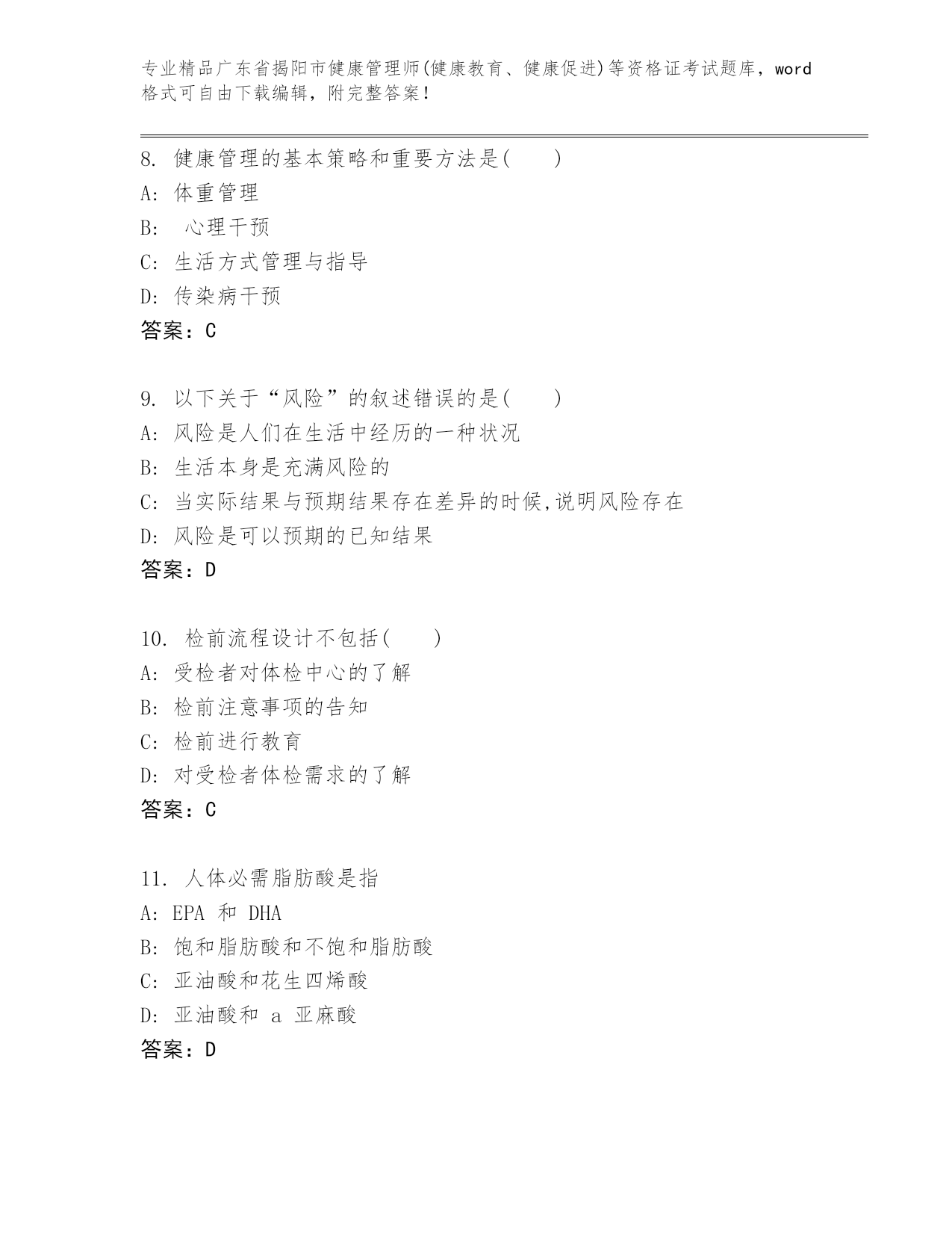 历年广东省揭阳市健康管理师(健康教育、健康促进)等资格证考试通用题库(突破训练).docx