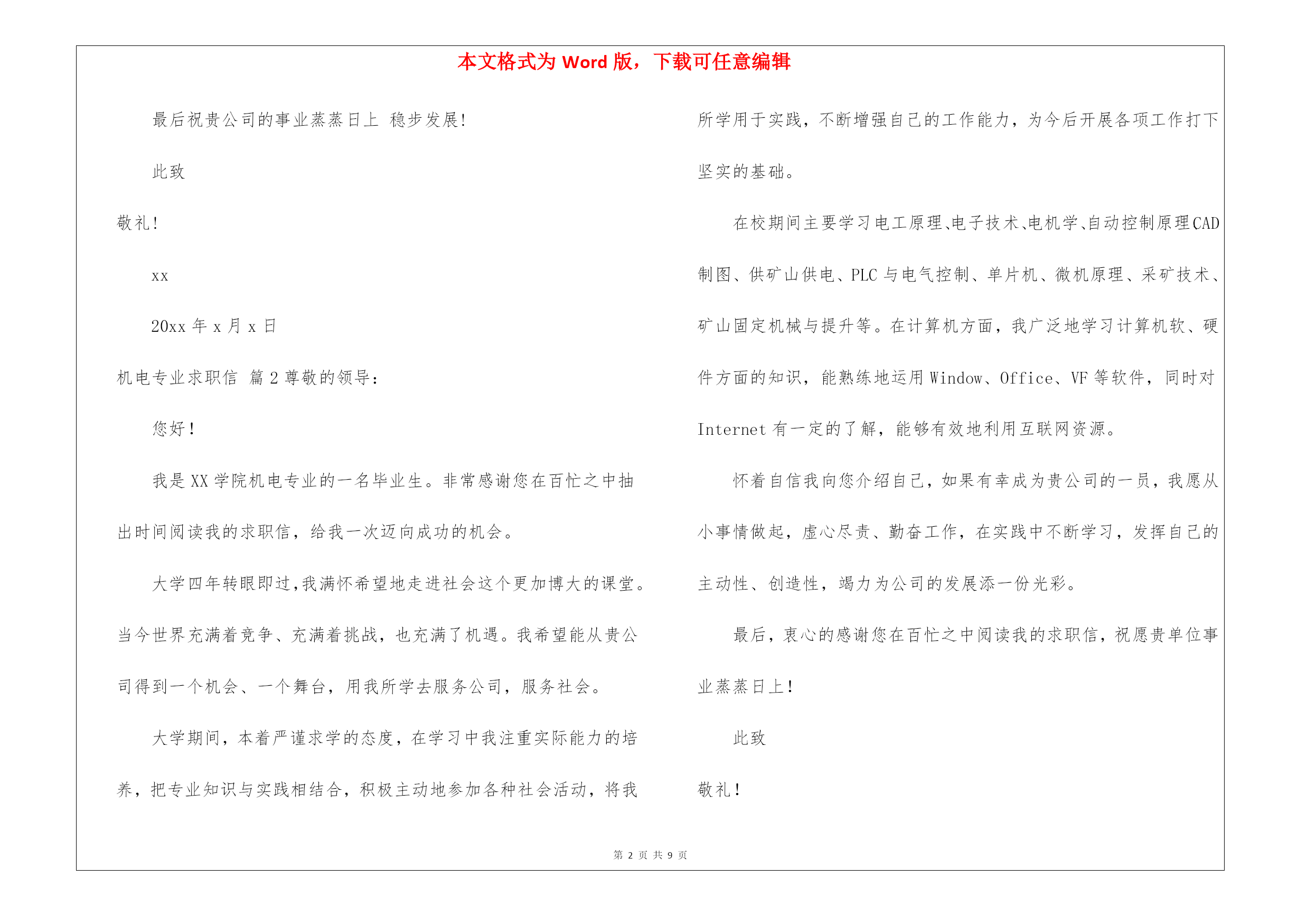 本文格式为Word版,下载可任意编辑第PAGE\*MERGEFORMAT9页共NUMPAGES\*MERGEFORMAT9页有关机电专业求职信八篇有关机电专业求职信范文八篇时间过得真快,总在不经意间流逝,新一轮的招聘又在朝我们招手,感觉我们很有必要写求职信了。为了让您不再为写求职信头疼,以下是我编写整理的机电专业求职信8篇,仅供参考,希望能够帮助到大家。机电专业求职信篇1尊敬的领导:您好!我叫xx,一名往届毕业生,所学专业为机电一体化,我仰慕贵公司尊重知识、重视人才之名,希望能成为贵公司的一员,为贵公司发展贡献自己的一份薄力。我深知,"机遇只垂青于有准备的头脑"。在校期间,我抓住一切机会学习各方面知识,锻炼自己各方面的能力。自入校以来,我还积极参加学生会和学生社团组织,是校棋协成员,校学生会纪检部干事,所做工作获得领导的好评。在XX~XX年间担任系学生会社团部负责人,并成功举办全系棋艺大赛数次,并承办全校的棋艺比赛。这些工作使我具有了一定的组织领导能力和社交公关能力。在学校,刻苦学习,勤奋钻研,使自己的专业知识和技能更上一个台阶。做到"干一门精一门",曾多次获得荣誉证书,简历能很好的得到老师的评价。尊敬的领导,您作为现代社会的英明管理者,物色一名精干得力的助手,一定是您早有的夙愿。对于完成学业的我,既有专业知识,又有较强的工作经验。有奋斗信心前进动力。怀着自信的我向您推荐自己。希望能在贵单位,一个文明团结进步的集体中竭尽绵薄。虚心尽责,勤奋工作在实践中不断学习。发挥自己的主动性,创造性。竭力为公司的发展添一份光彩。给我一个机会,我将还您一份惊喜。期待您的回复,谢谢!最后祝贵公司的事业蒸蒸日上稳步发展!此致敬礼!xx20xx年x月x日机电专业求职信篇2尊敬的领导:您好!我是XX学院机电专业的一名毕业生。非常感谢您在百忙之中抽出时间阅读我的求职信,给我一次迈向成功的机会。大学四年转眼即过,我满怀希望地走进社会这个更加博大的课堂。当今世界充满着竞争、充满着挑战,也充满了机遇。我希望能从贵公司得到一个机会、一个舞台,用我所学去服务公司,服务社会。大学期间,本着严谨求学的态度,在学习中我注重实际能力的培养,把专业知识与实践相结合,积极主动地参加各种社会活动,将我所学用于实践,不断增强自己的工作能力,为今后开展各项工作打下坚实的基础。在校期间主要学习电工原理、电子技术、电机学、自动控制原理、CAD制图、供矿山供电、PLC与电气控制、单片机、微机原理、采矿技术、矿山固定机械与提升等。在计算机方面,我广泛地学习计算机软、硬件方面的知识,能熟练地运用Window、Office、VF等软件,同时对Internet有一定的了解,能够有效地利用互联网资源。怀着自信我向您介绍自己,如果有幸成为贵公司的一员,我愿从小事情做起,虚心尽责、勤奋工作,在实践中不断学习,发挥自己的主动性、创造性,竭力为公司的发展添一份光彩。最后,衷心的感谢您在百忙之中阅读我的求职信,祝愿贵单位事业蒸蒸日上!此致敬礼!求职人:XXXXXXX年XX月XX日机电专业求职信篇3尊敬的领导:您好,感谢您浏览我的求职信。我叫XX,毕业于XX航空职业技术学院机电设备维修专业,普通的院校,普通的我却拥有一颗不甘于平凡的心。我自信、乐观、敢于迎接一切挑战,虽然只是一名普通的应届毕业生,但是年轻是我的本钱,拼搏是我的天性,努力是我的责任,我坚信成功定会成为必然。经过大学的锤炼,在面对未来事业的选择时,我对自己有了更清醒的认识,在学校学习期间,我通过自己的努力,通过所有学科的考试,并且还通过了英语A级的考试和计算机三级的考试。在实训中,我也练就了较好的专业实际操作技能,并取得发动机钳工证。在课余时间我经常参加一些有益的社会活动,加强了自己与他人的沟通能力,懂得了如何与他人更好的相处,我虽然只是一个普通的专科毕业生,但大学三年教会了我什么叫“学无止境”,我相信,在我不断努力刻苦的学习中,我一定能够胜任这份职业,坚信“天道酬勤”的我一定会努力工作。一个人惟有把所擅长的投入到社会中才能使自我价值得以实现,别人不愿做的,我会义不容辞的做好,别人能做到的,我会尽最大努力做到更好发挥自身优势,我愿与贵单位同事携手共进,共创辉煌。我相信,我虽然是应届毕业生,但是我有着初生牛犊不怕虎的精神,我可以没有任何压力的投入到工作中去,我也可以没有那些已婚人员的浮躁心理,我所做的就是要做好工作,没有任何的杂念。感谢您在百忙之中读完我的求职信,诚祝贵单位事业蒸蒸日上!此致敬礼!机电专业求职信篇4尊敬的领导:你好!感谢你在百忙之中抽空审阅我的材料,希望给我一个机会!物识一个掌握扎实专业知识并具有一定工作能力和组织能力的部下,是你的愿望。谋求一个充分发挥自己专业特长的工作单位,并能得到你的关照,是我的期盼;得力